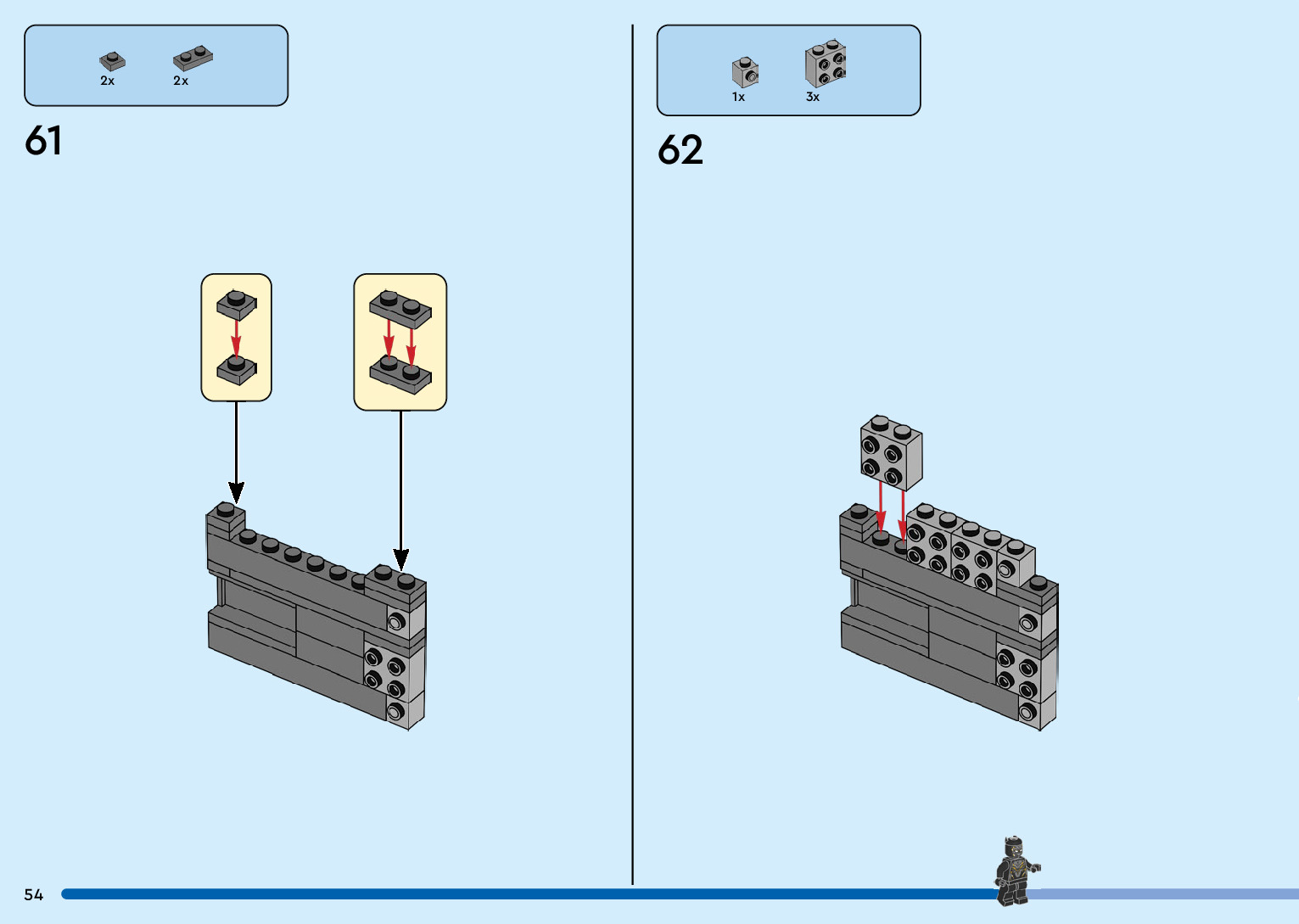 The assembly guide is prepared in a very understandable way for children and adult LEGO enthusiasts. A total of 128 picture galleries are shown, explaining the step-by-step construction stages for 1 different structures.