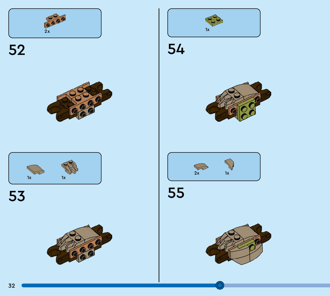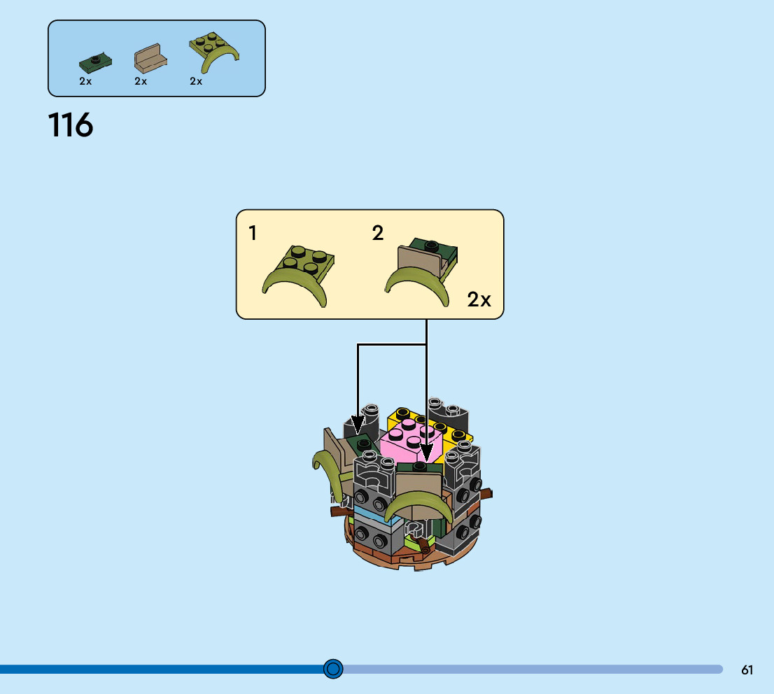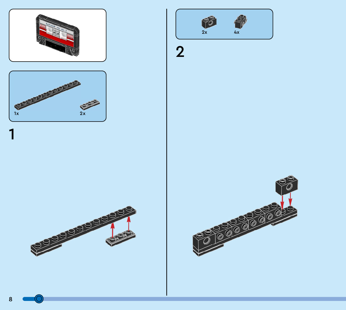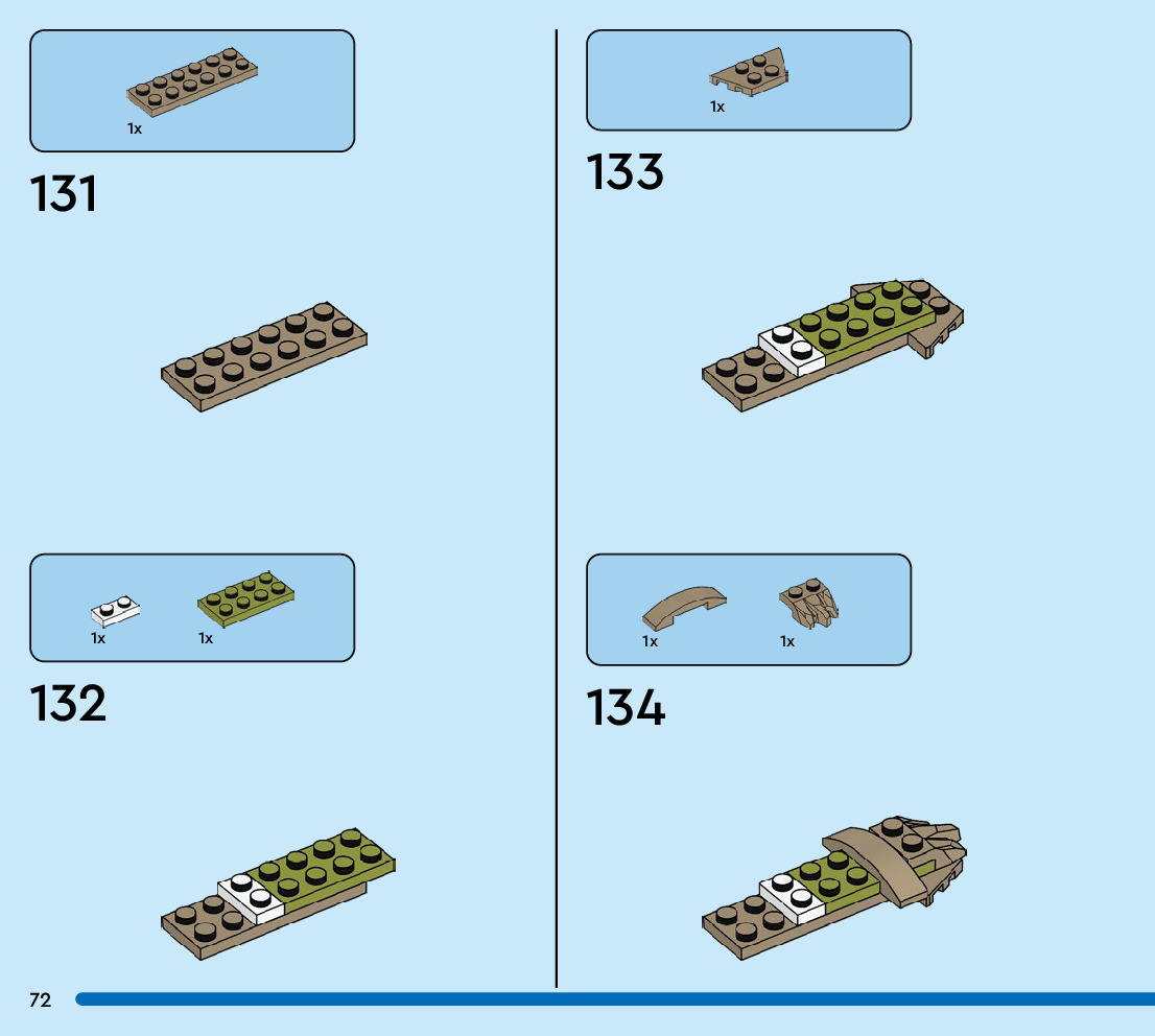 The assembly guide is prepared in a very understandable way for children and adult LEGO enthusiasts. A total of 88 picture galleries are shown, explaining the step-by-step construction stages for 1 different structures.