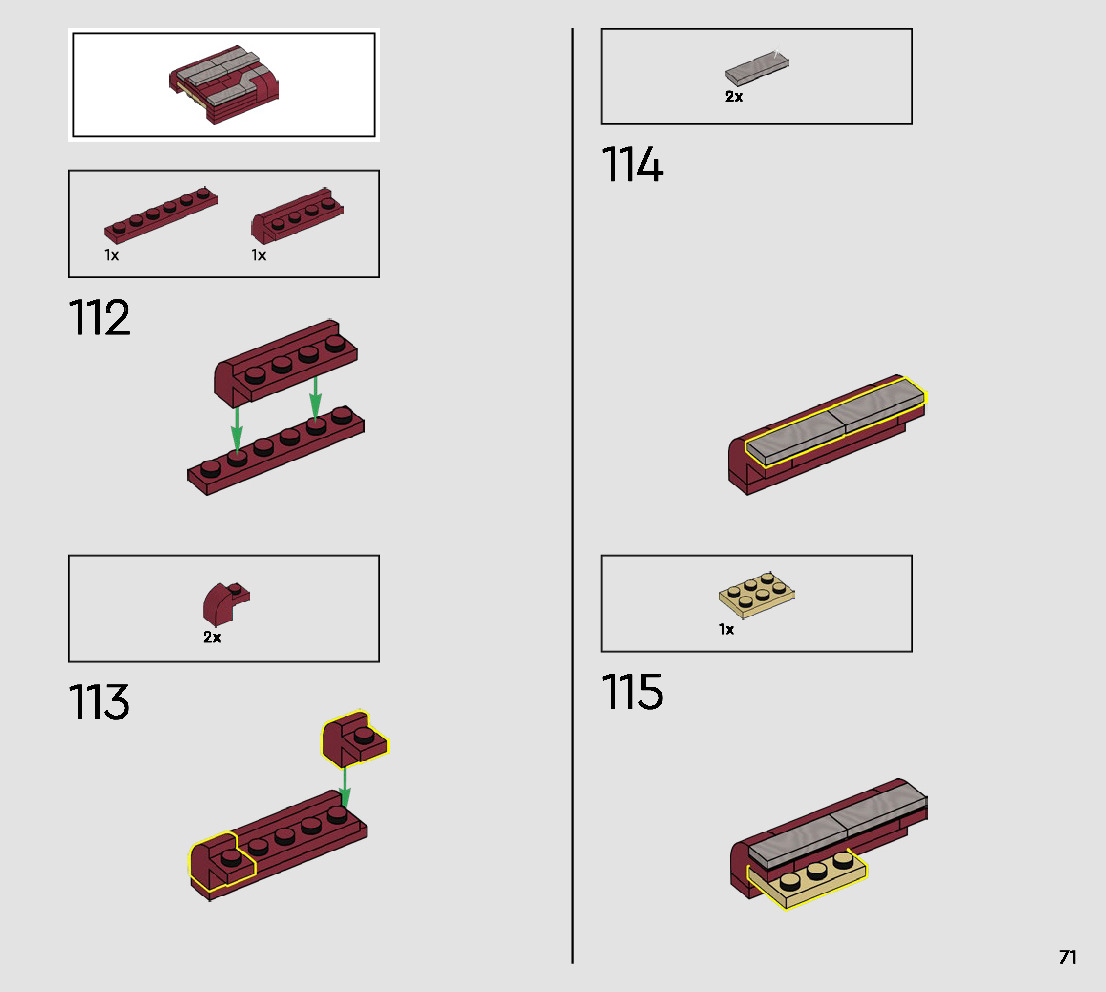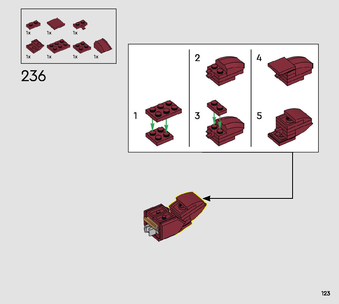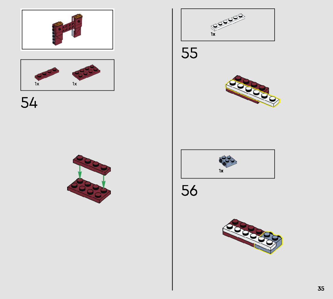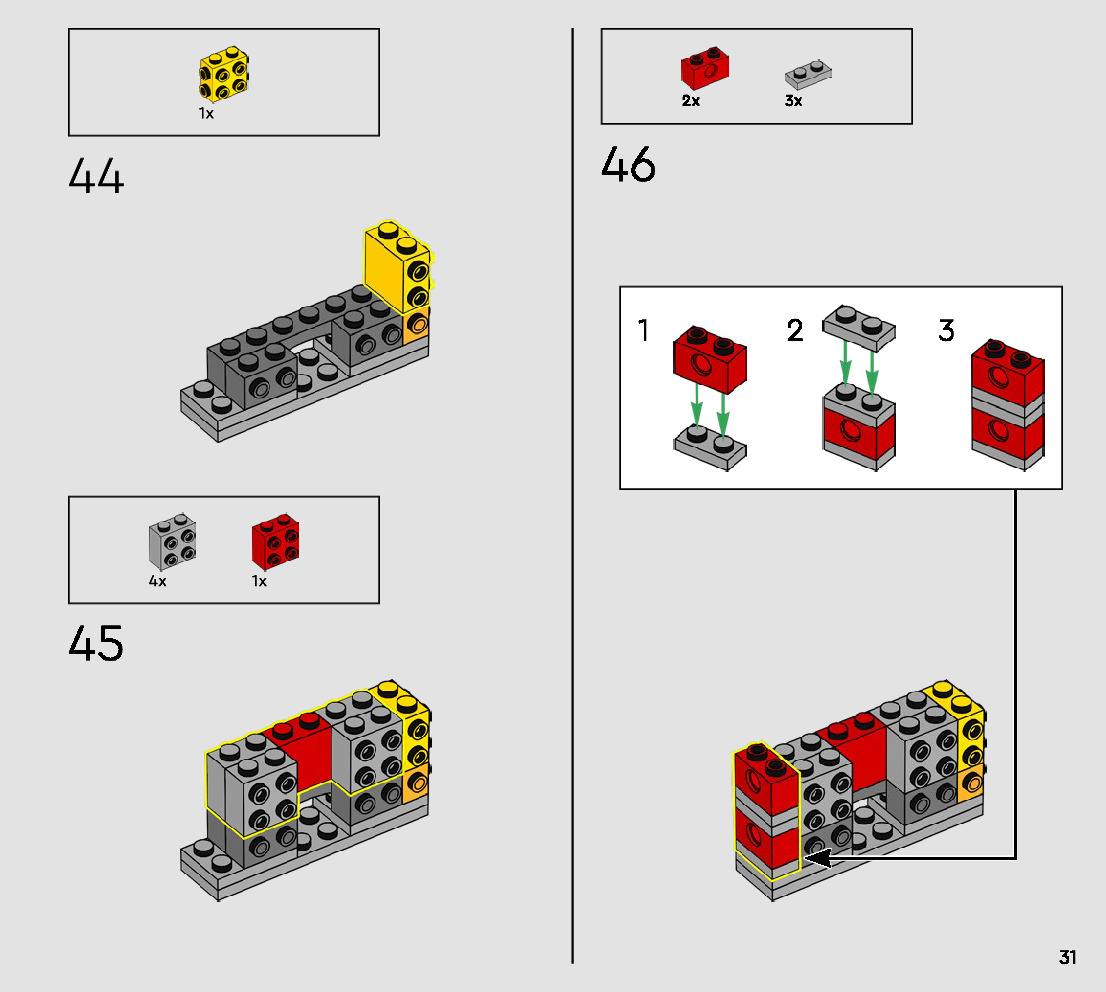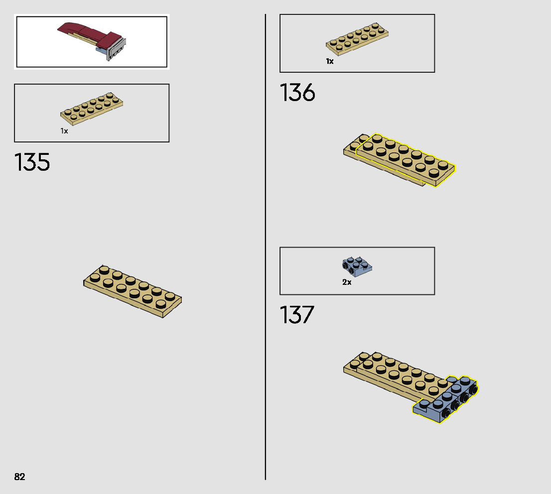 The assembly guide is prepared in a very understandable way for children and adult LEGO enthusiasts. A total of 136 picture galleries are shown, explaining the step-by-step construction stages for 1 different structures.