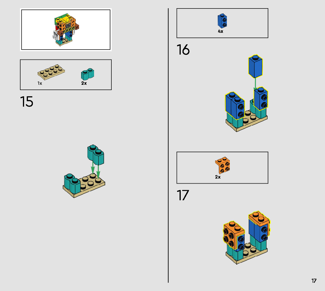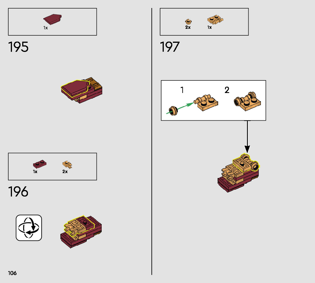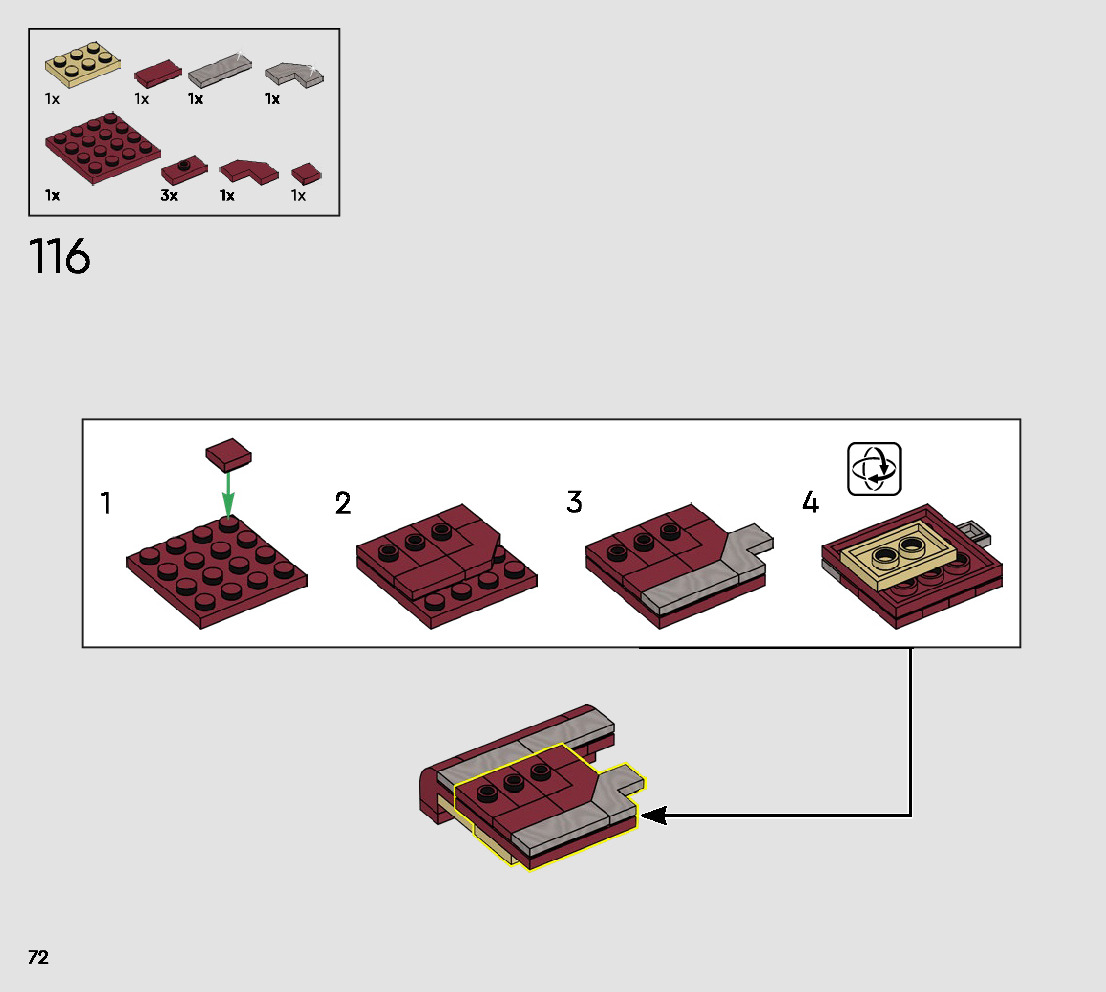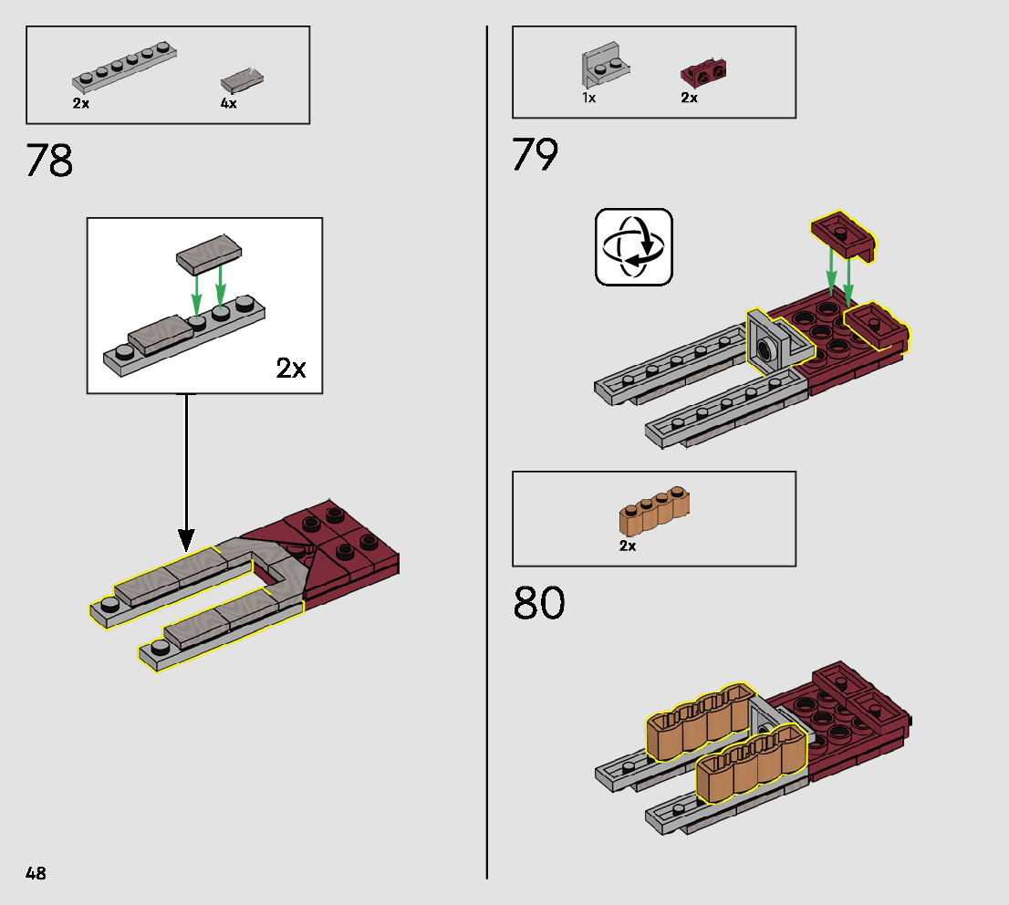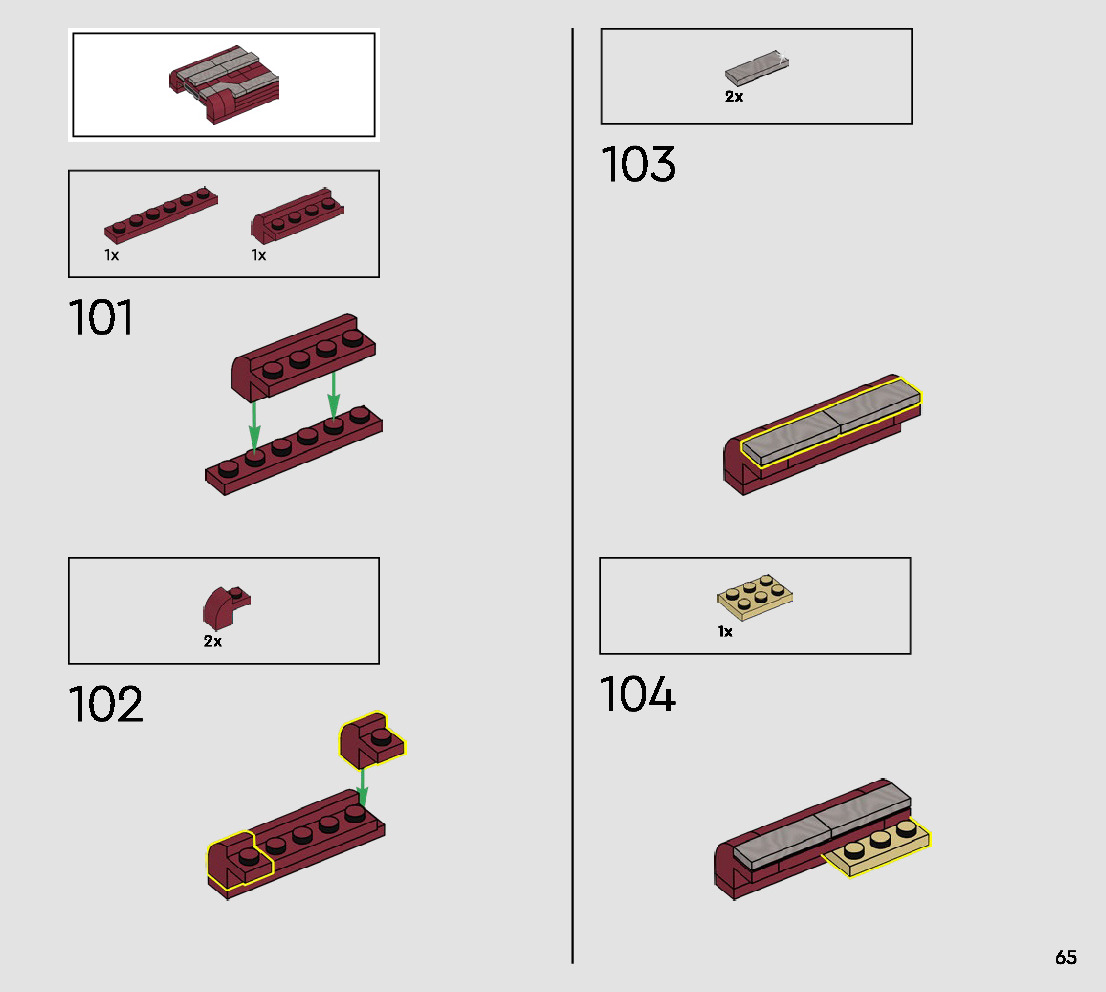 The assembly guide is prepared in a very understandable way for children and adult LEGO enthusiasts. A total of 136 picture galleries are shown, explaining the step-by-step construction stages for 1 different structures.