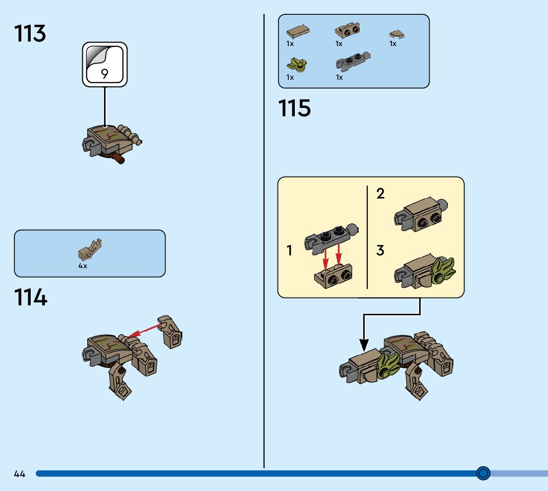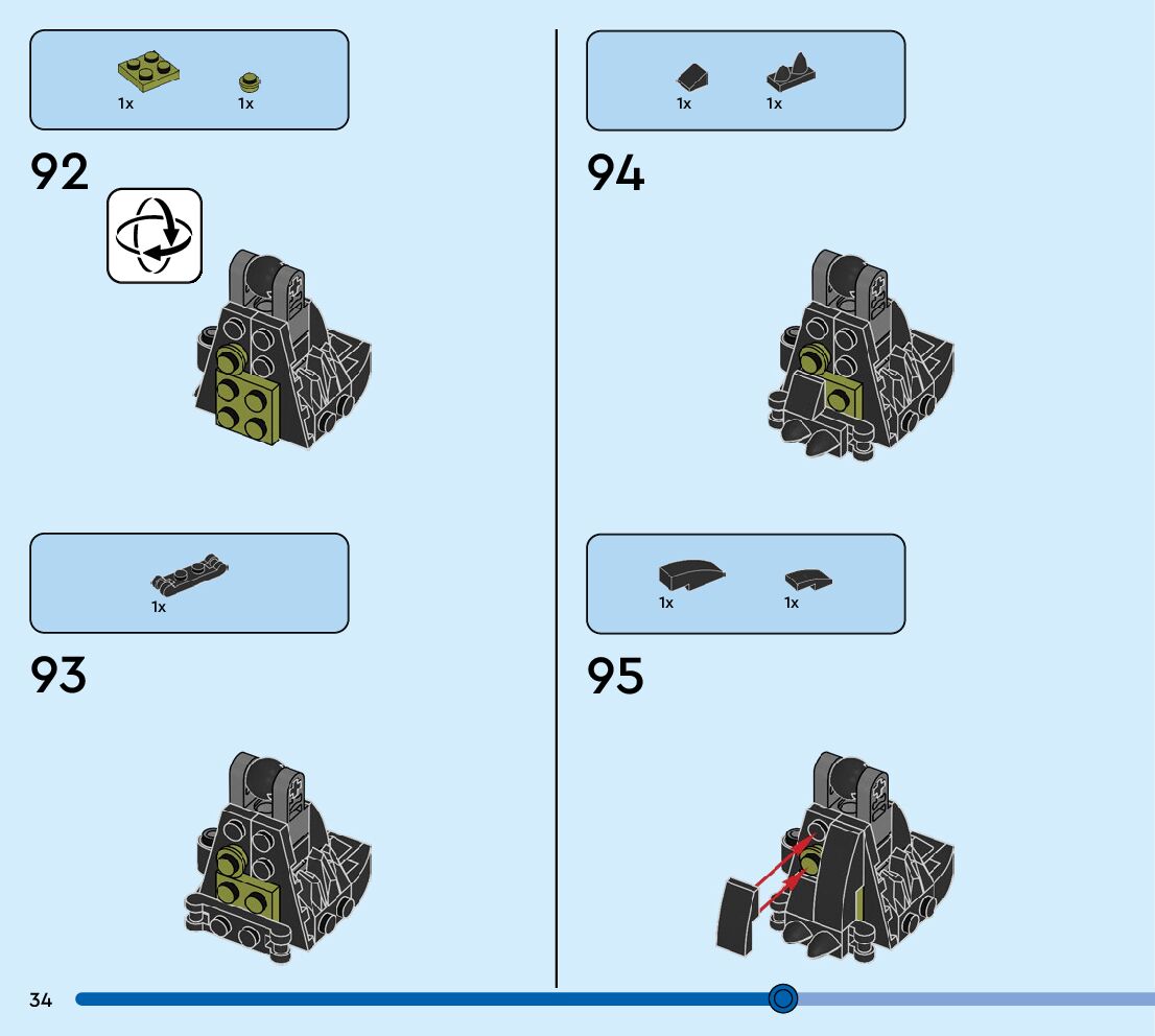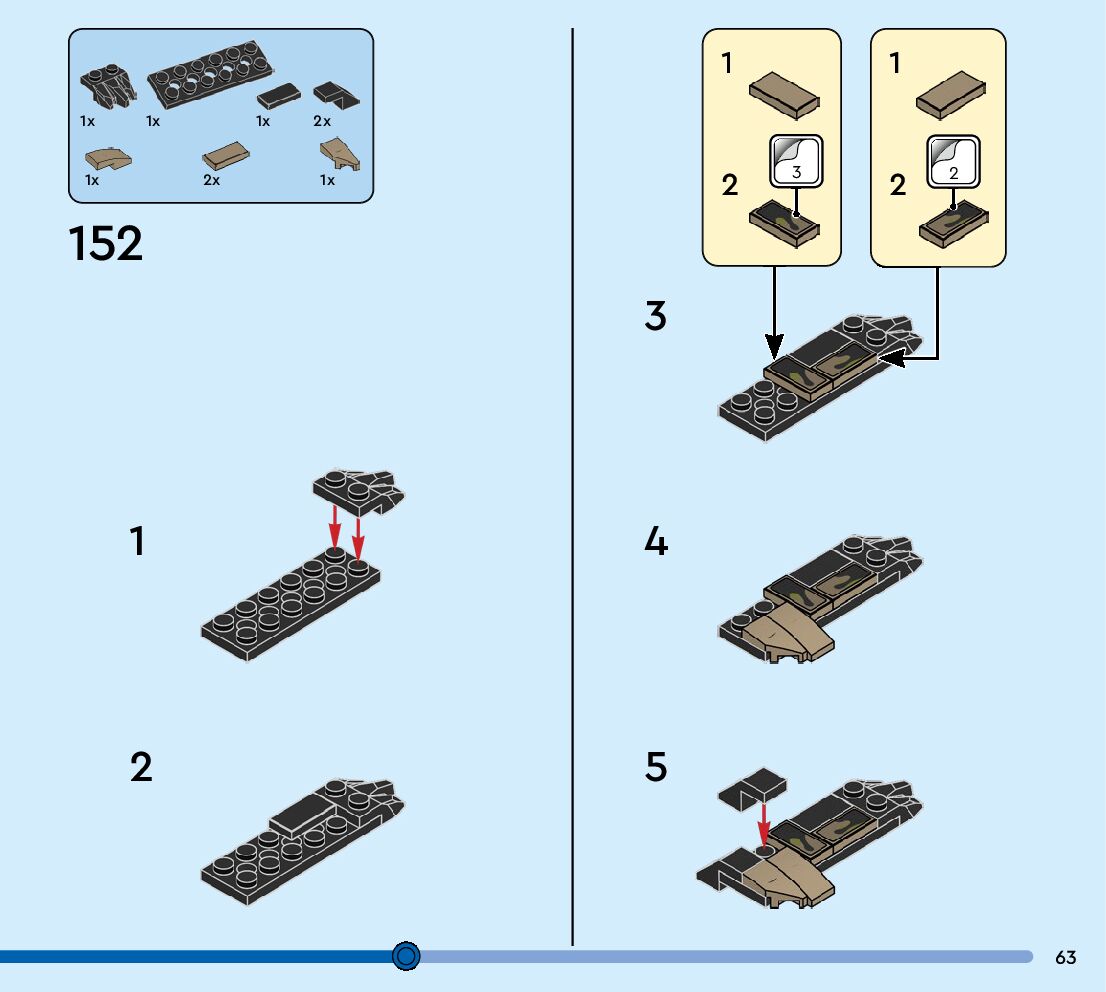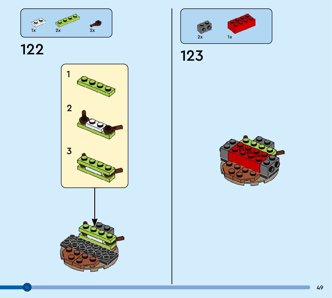 The assembly guide is prepared in a very understandable way for children and adult LEGO enthusiasts. A total of 96 picture galleries are shown, explaining the step-by-step construction stages for 1 different structures.