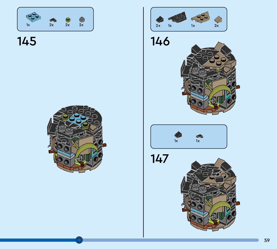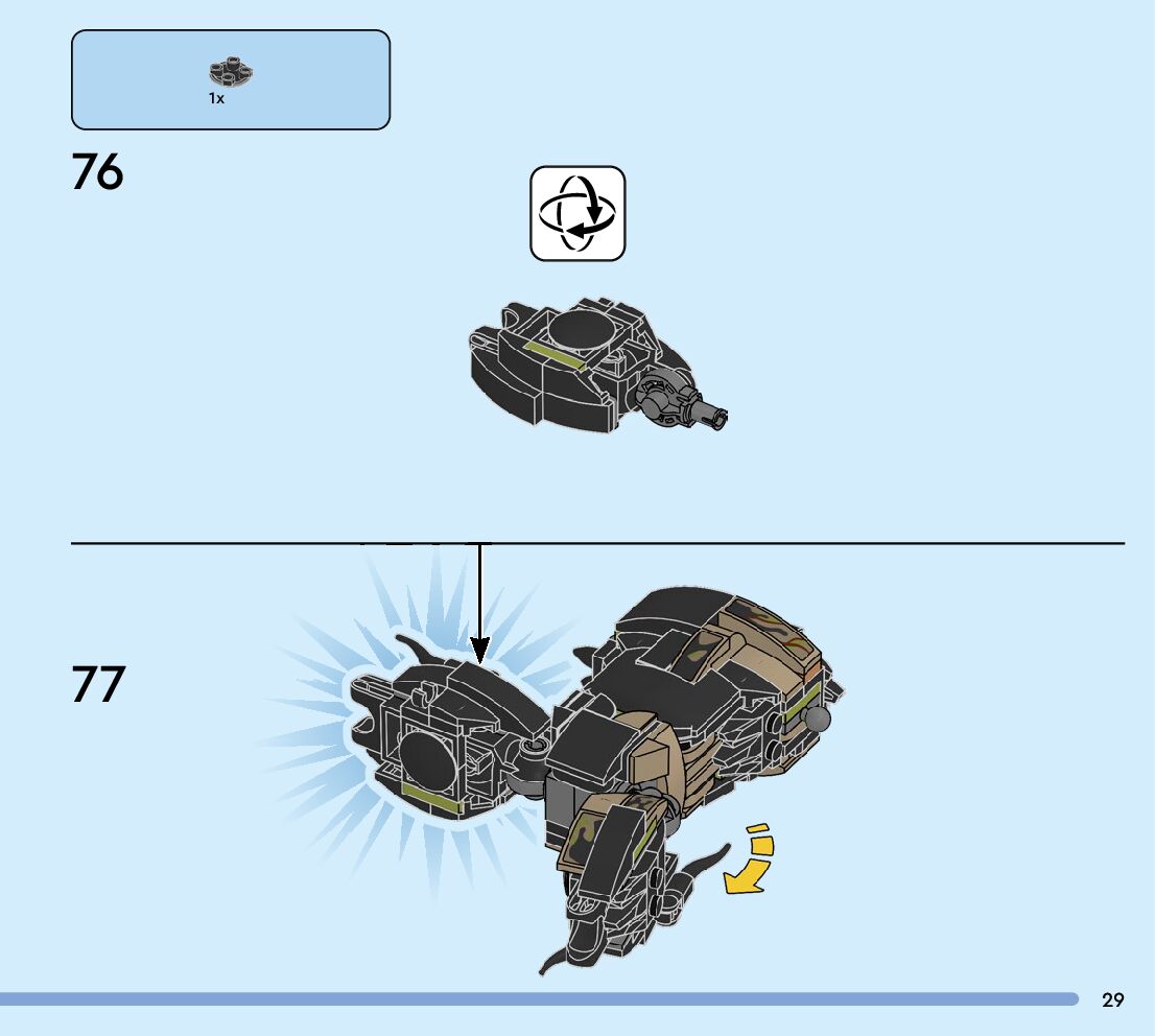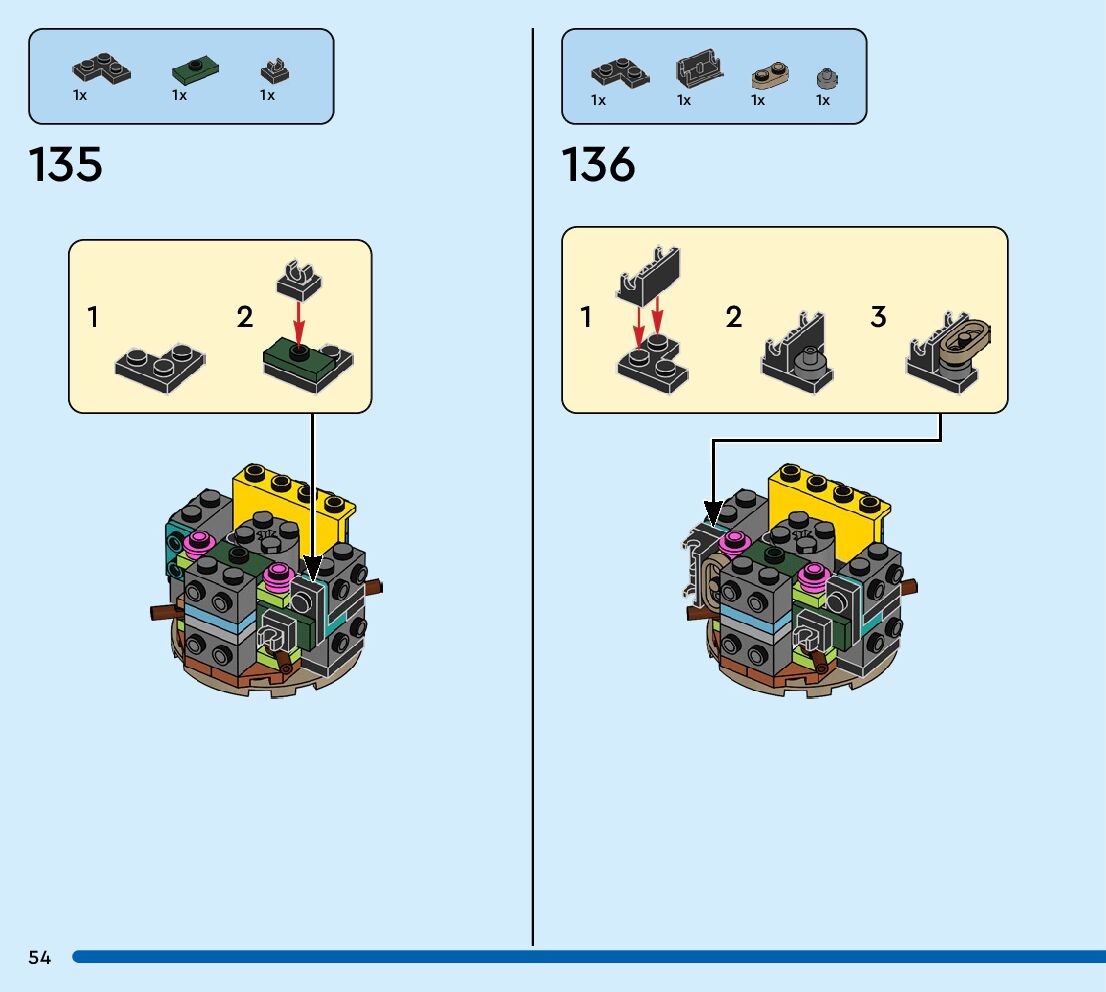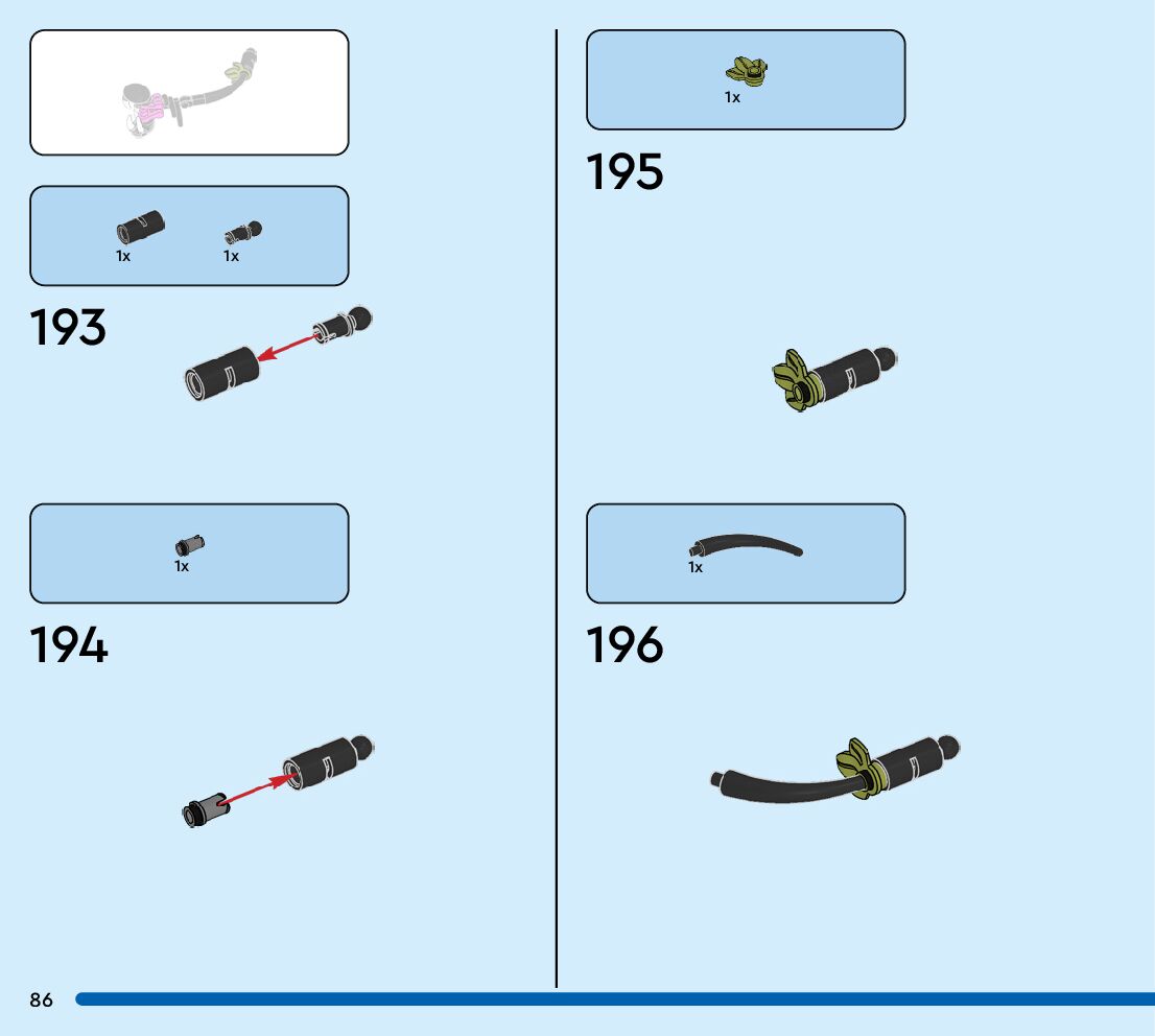 The assembly guide is prepared in a very understandable way for children and adult LEGO enthusiasts. A total of 96 picture galleries are shown, explaining the step-by-step construction stages for 1 different structures.