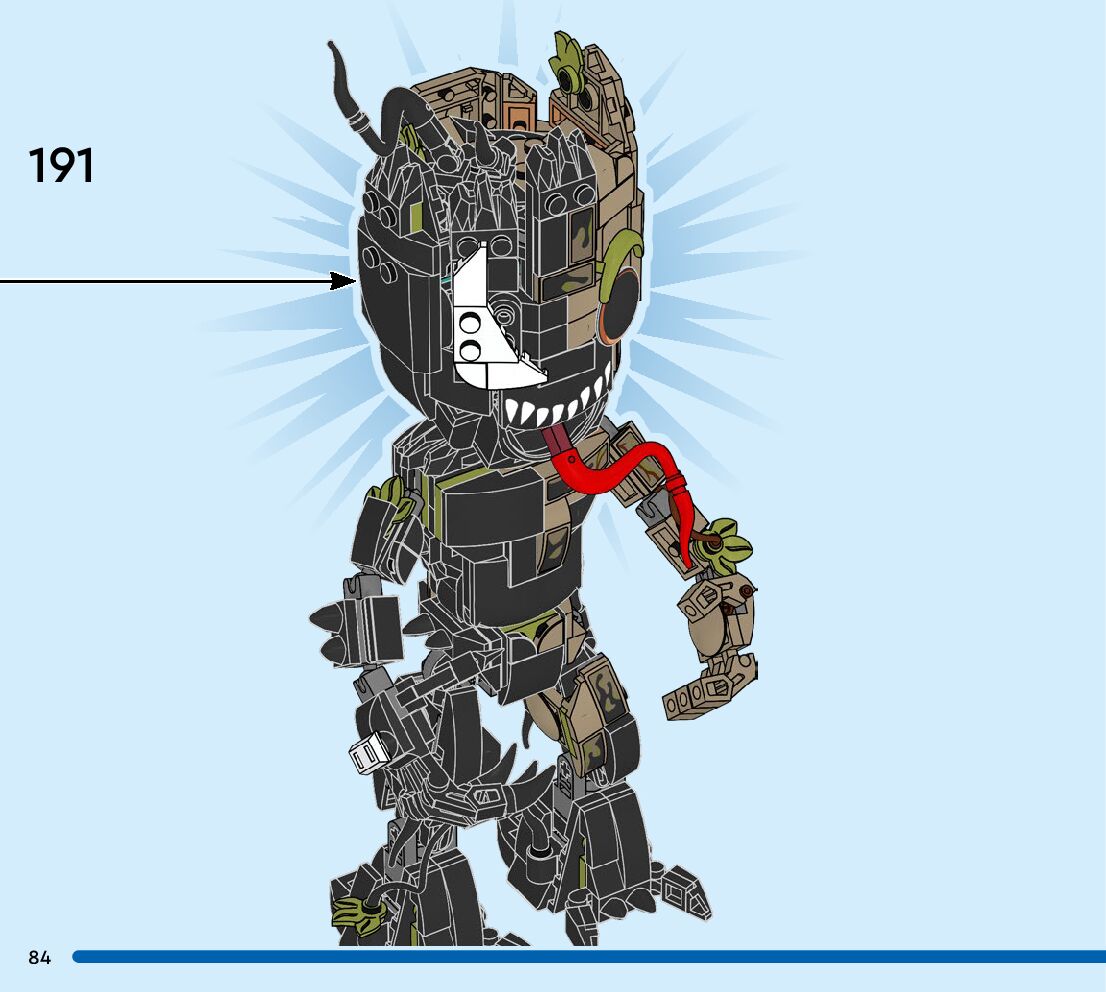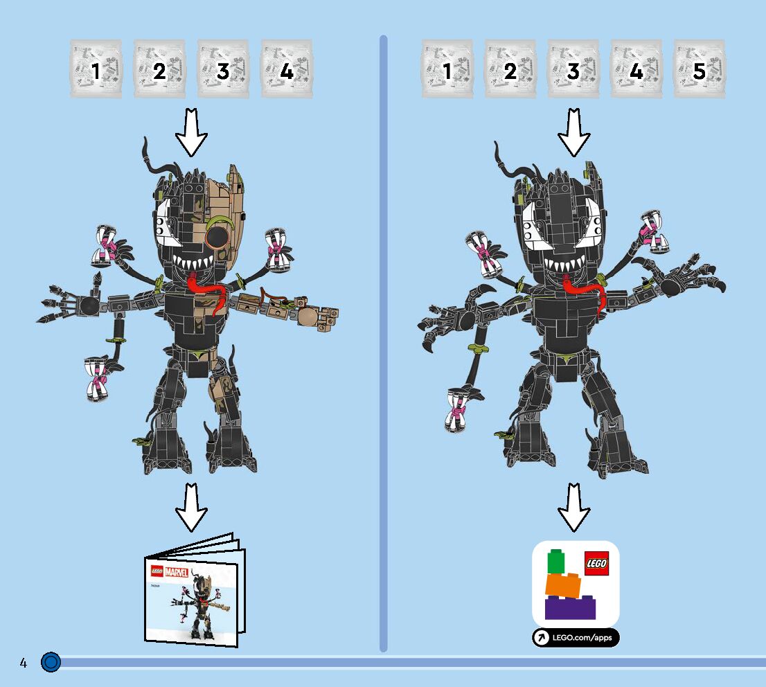 This page shares information about LEGO 76249 Venomised Groot manual, LEGO 76249 PDF instructions, LEGO 76249 Venomised Groot building guide online, How to build 76249 Venomised Groot LEGO.