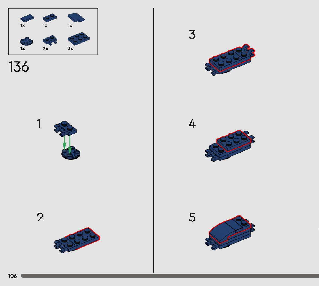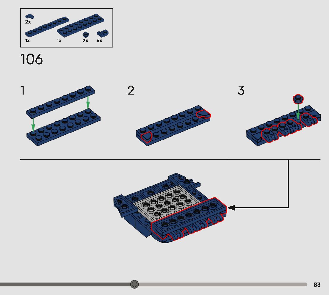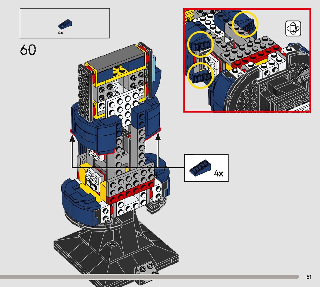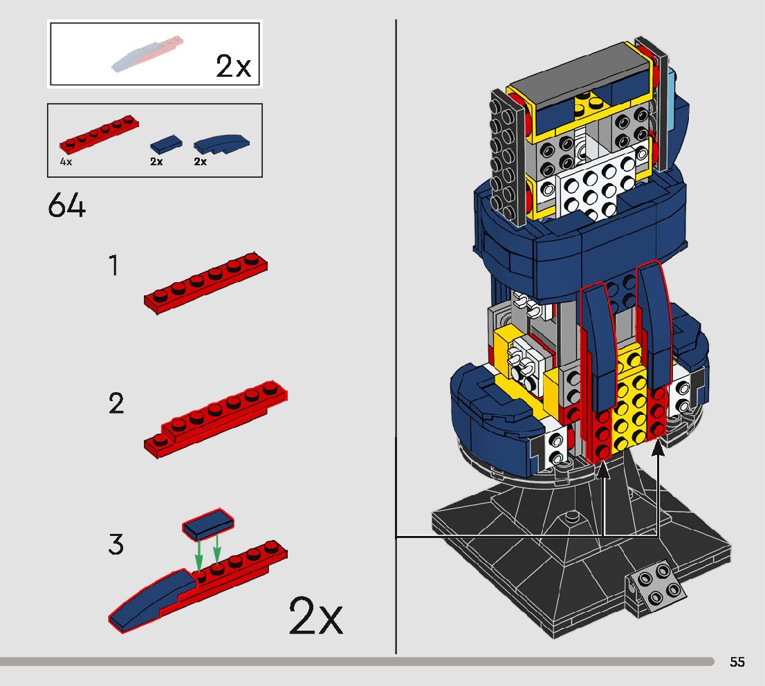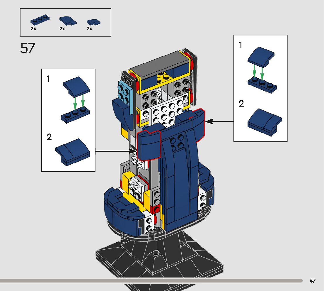The assembly guide is prepared in a very understandable way for children and adult LEGO enthusiasts. A total of 124 picture galleries are shown, explaining the step-by-step construction stages for 2 different structures.