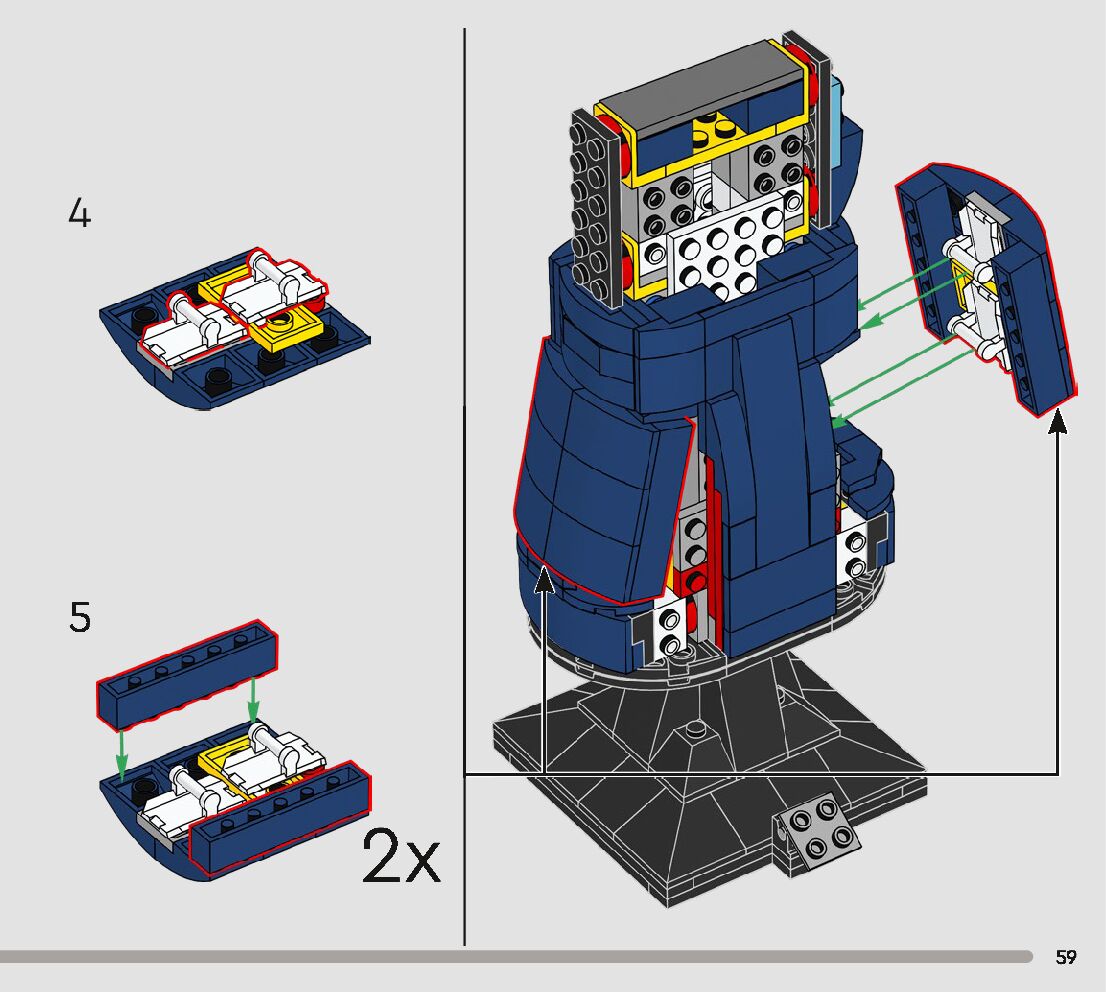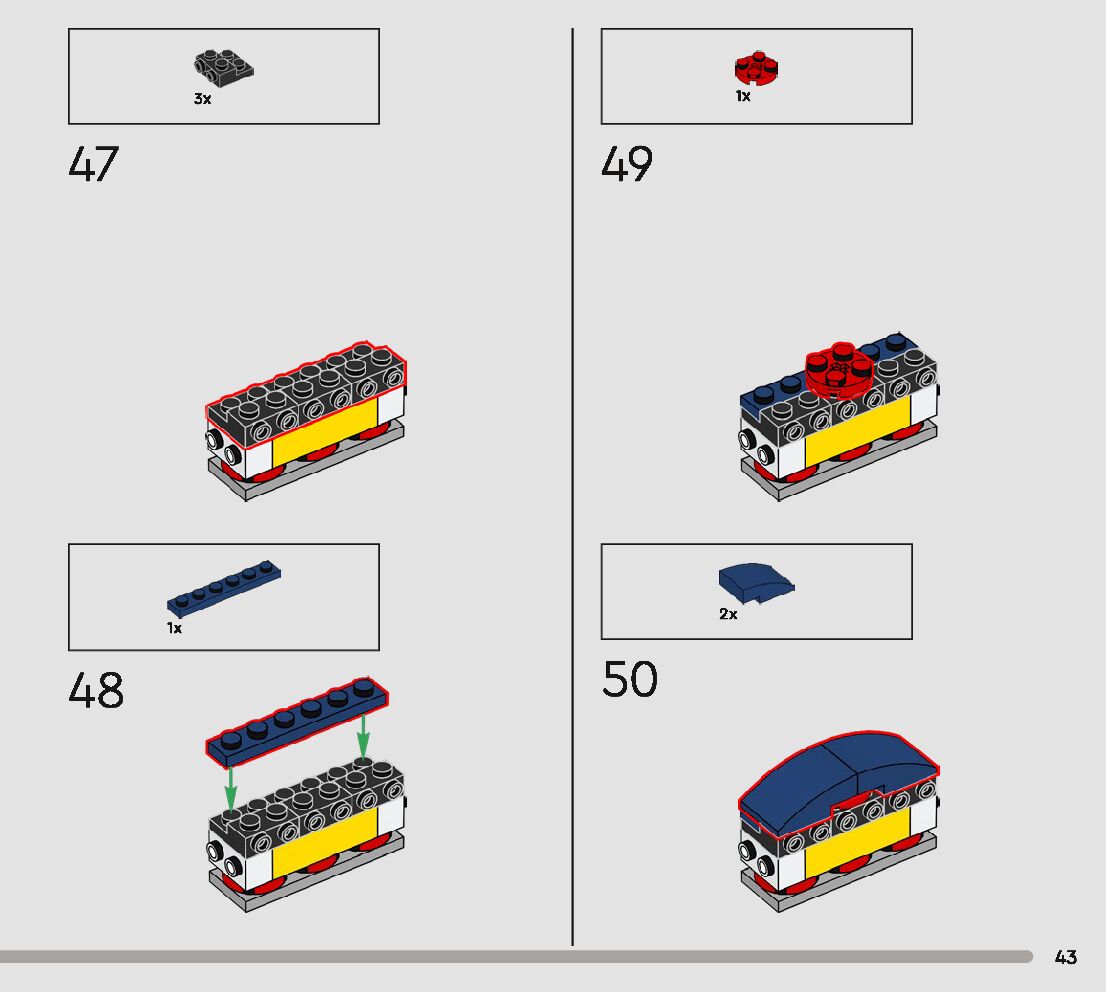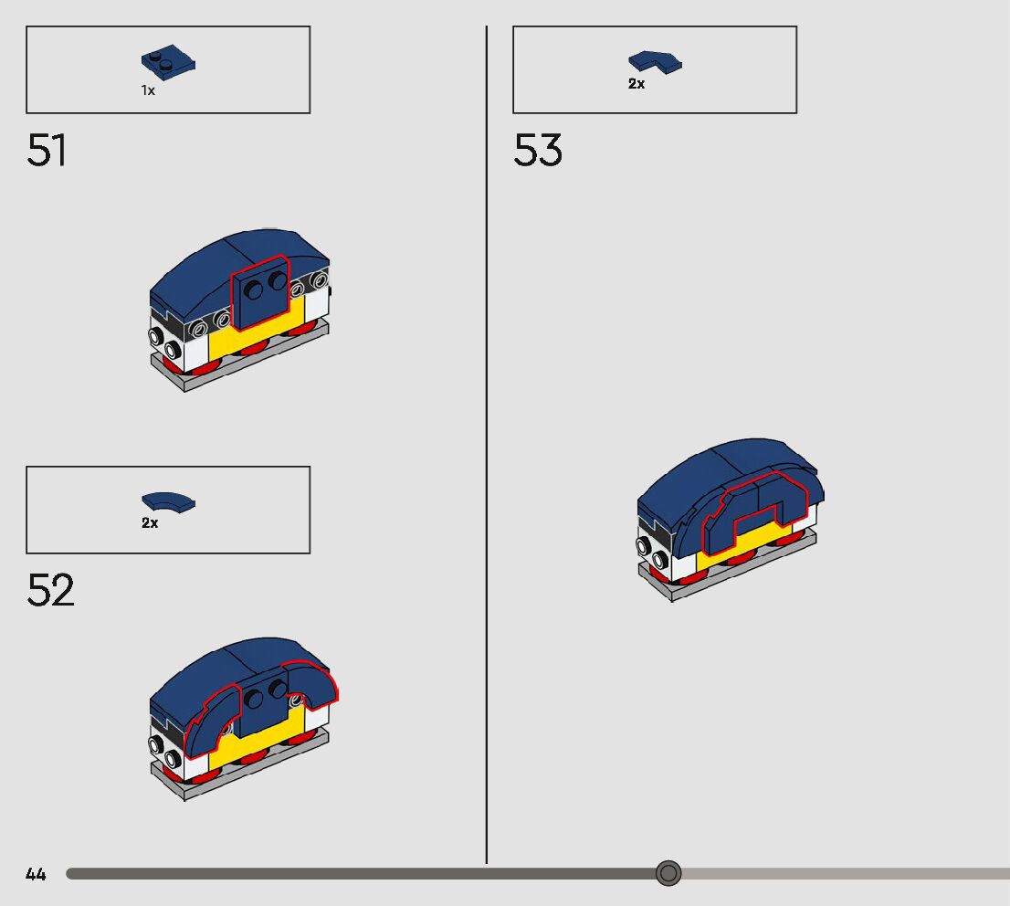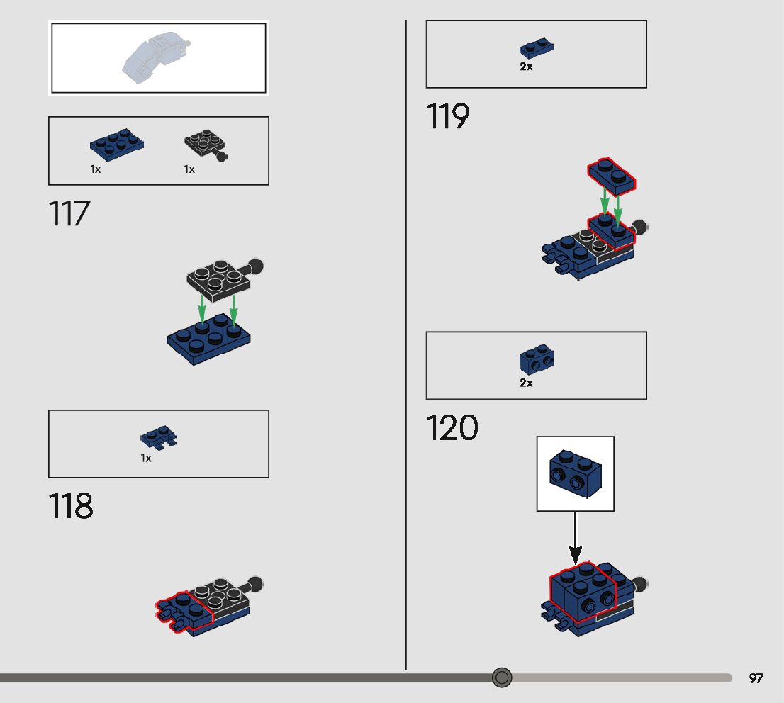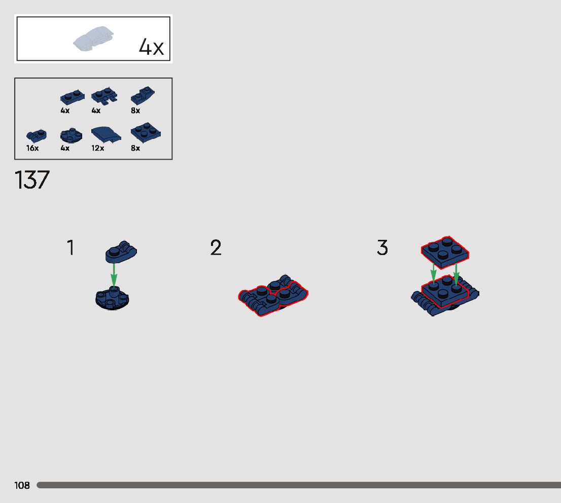 The assembly guide is prepared in a very understandable way for children and adult LEGO enthusiasts. A total of 124 picture galleries are shown, explaining the step-by-step construction stages for 2 different structures.