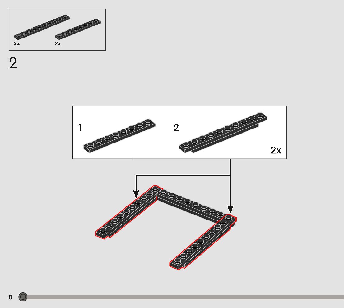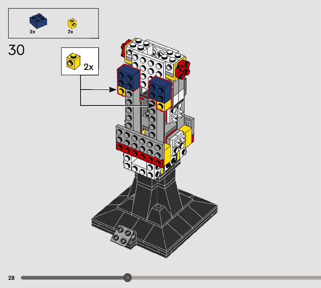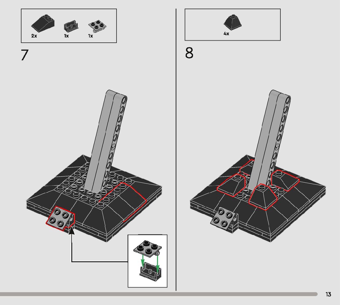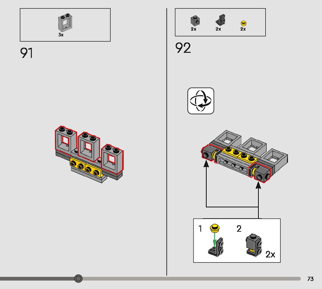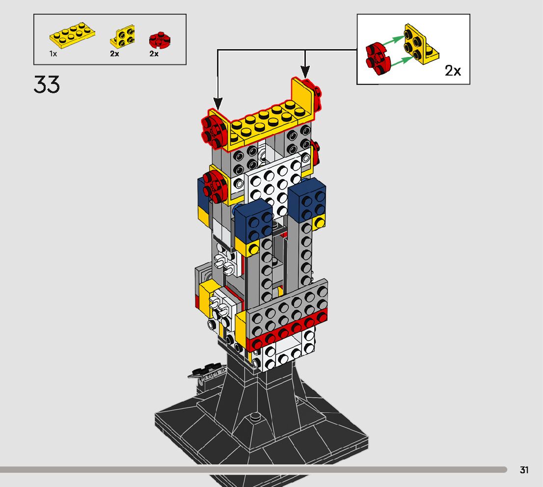 The assembly guide is prepared in a very understandable way for children and adult LEGO enthusiasts. A total of 124 picture galleries are shown, explaining the step-by-step construction stages for 2 different structures.