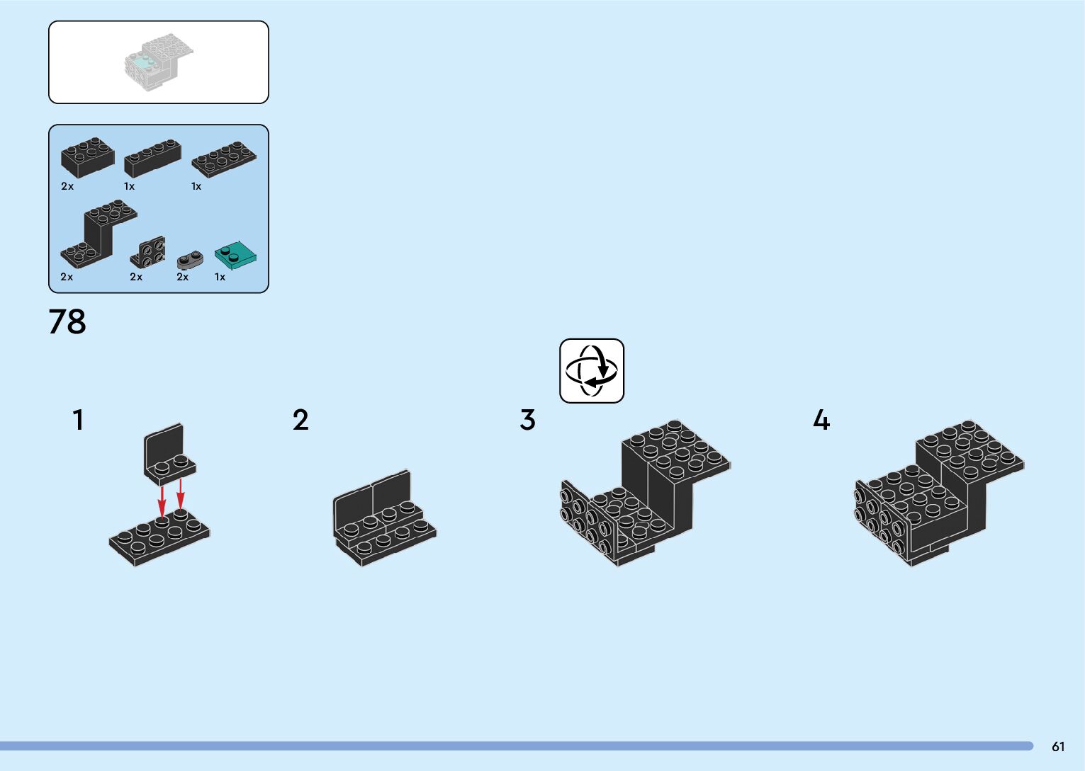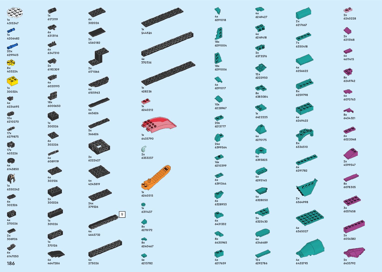 The assembly guide is prepared in a very understandable way for children and adult LEGO enthusiasts. A total of 188 picture galleries are shown, explaining the step-by-step construction stages for 1 different structures.