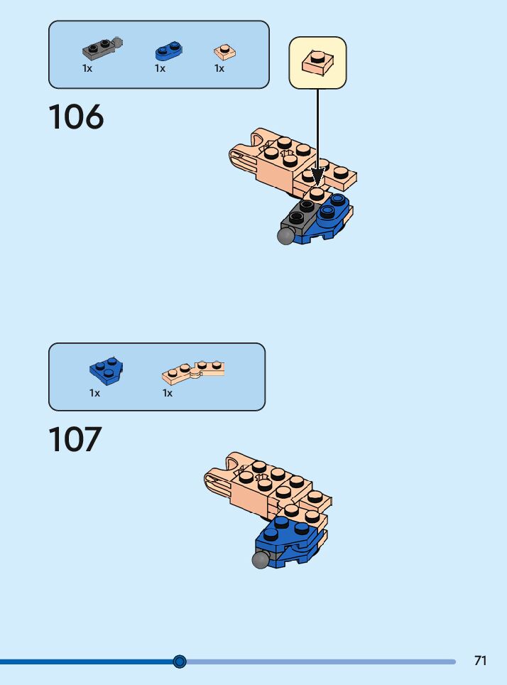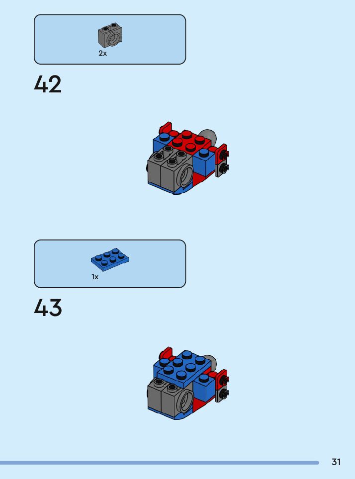 The assembly guide is prepared in a very understandable way for children and adult LEGO enthusiasts. A total of 108 picture galleries are shown, explaining the step-by-step construction stages for 1 different structures.