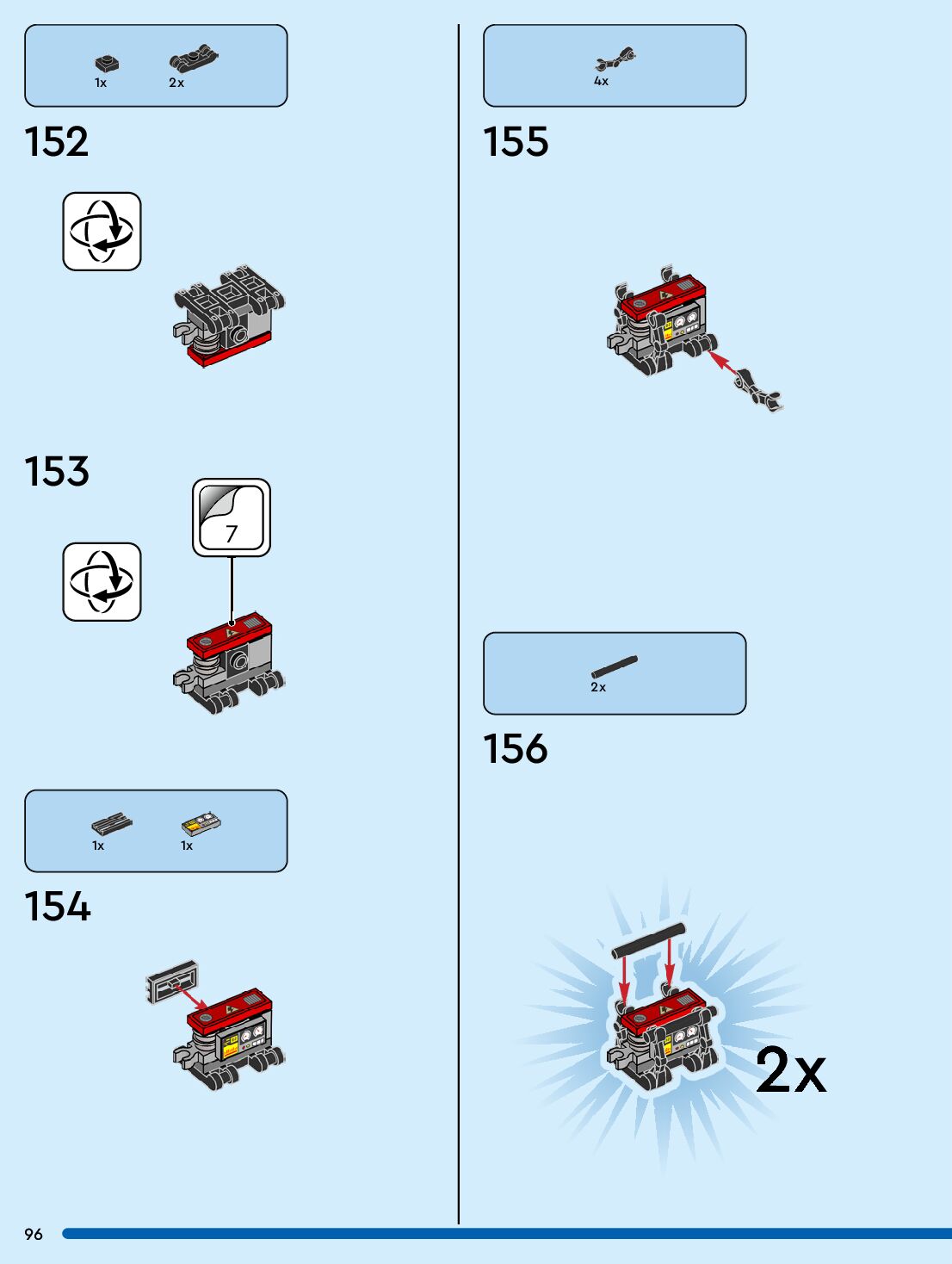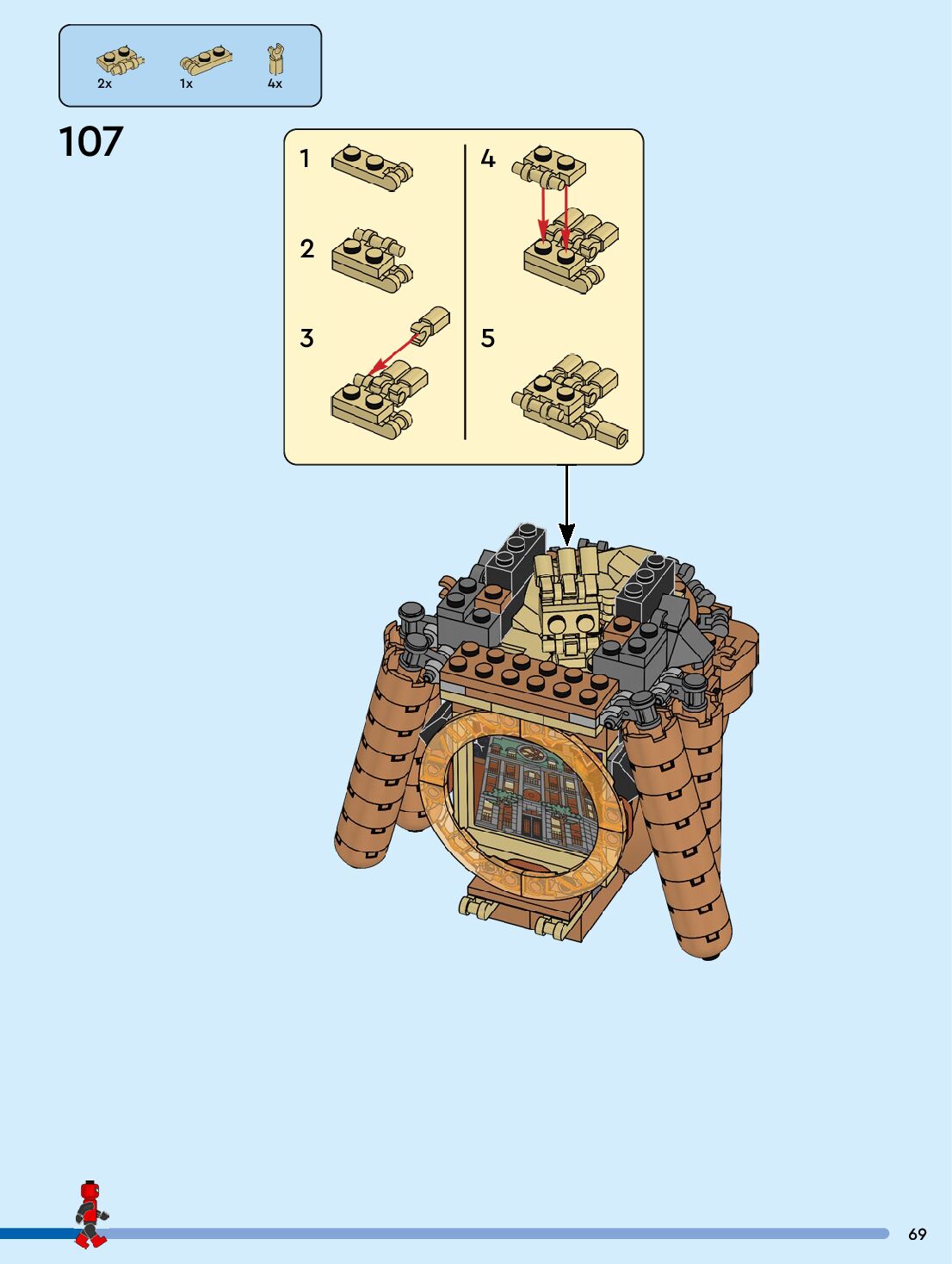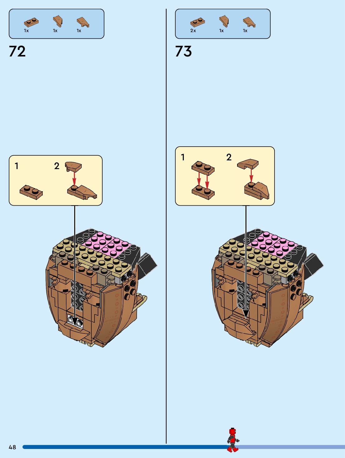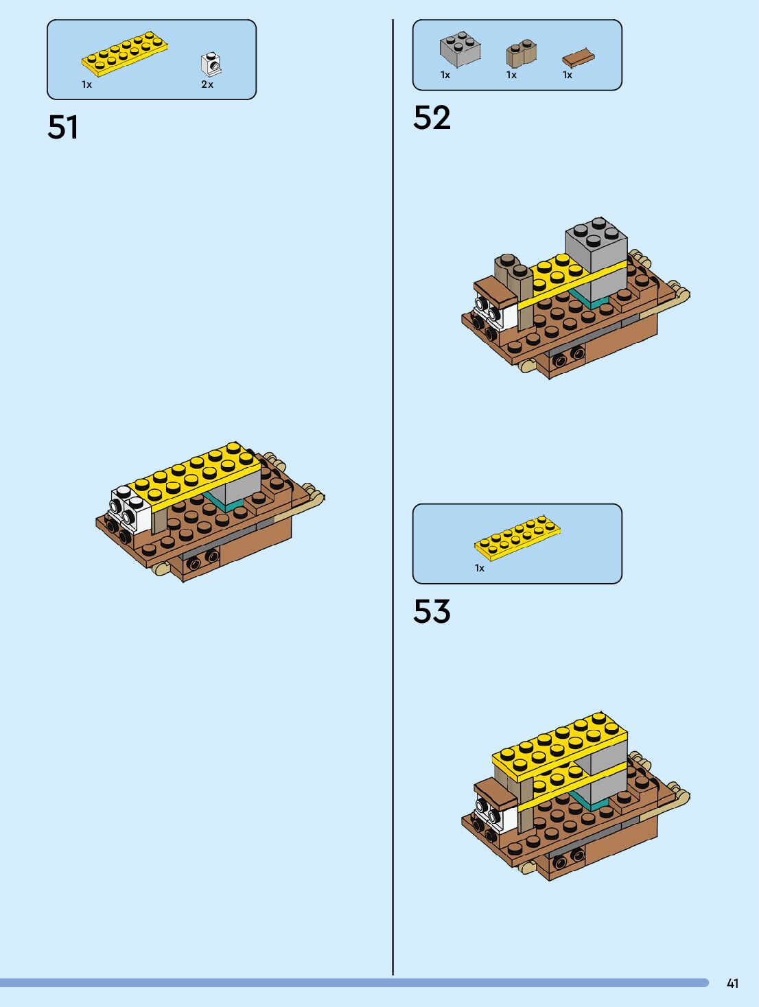The assembly guide is prepared in a very understandable way for children and adult LEGO enthusiasts. A total of 128 picture galleries are shown, explaining the step-by-step construction stages for 1 different structures.