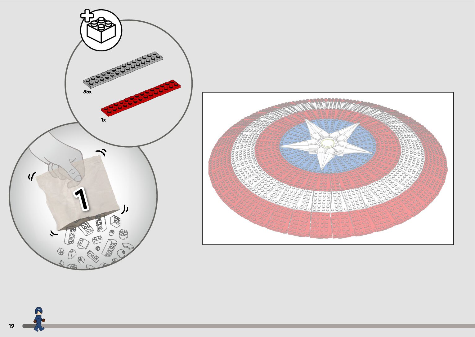 This page shares information about LEGO 76262 Captain America's Shield manual, LEGO 76262 PDF instructions, LEGO 76262 Captain America's Shield building guide online, How to build 76262 Captain America's Shield LEGO.