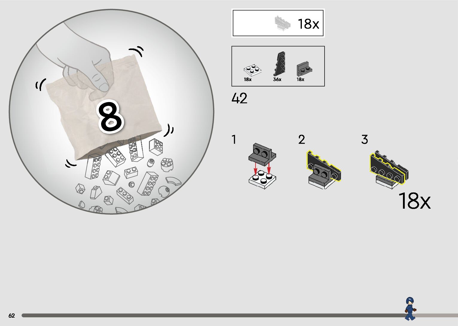 The assembly guide is prepared in a very understandable way for children and adult LEGO enthusiasts. A total of 126 picture galleries are shown, explaining the step-by-step construction stages for 1 different structures.