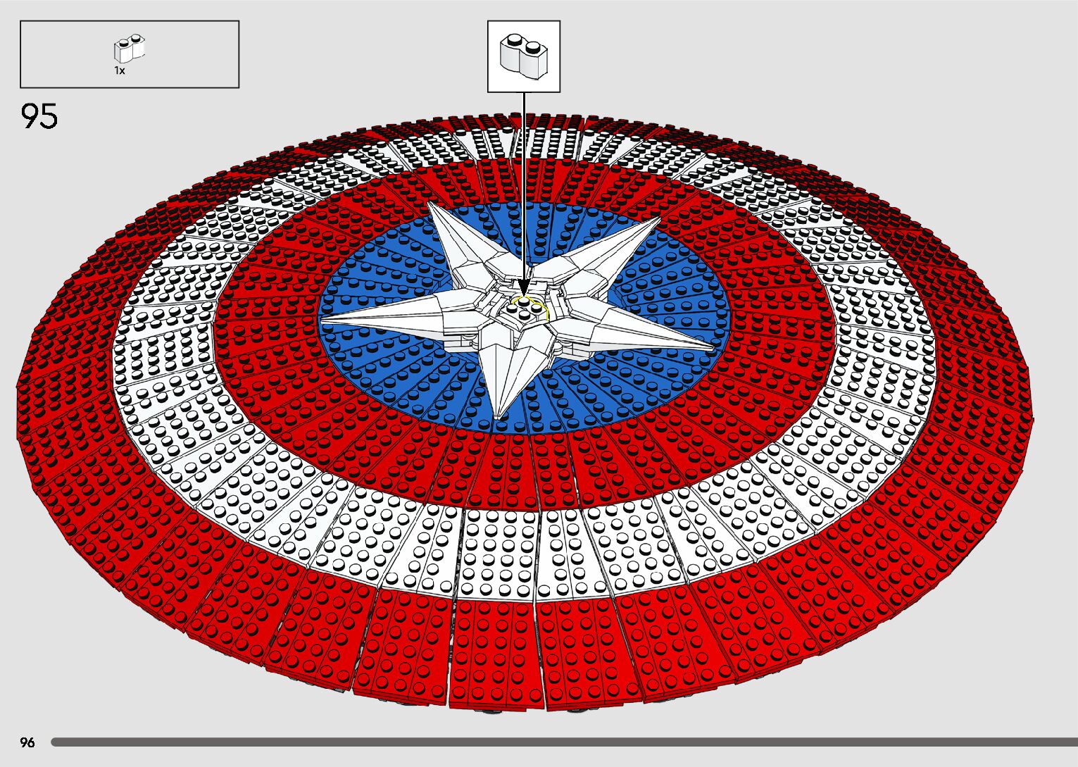 On this page you can find the original construction manual for the LEGO 76262 set. With the assembly manual you can easily learn how to build the 76262 Captain America's Shield step by step. The set was released in 2023.