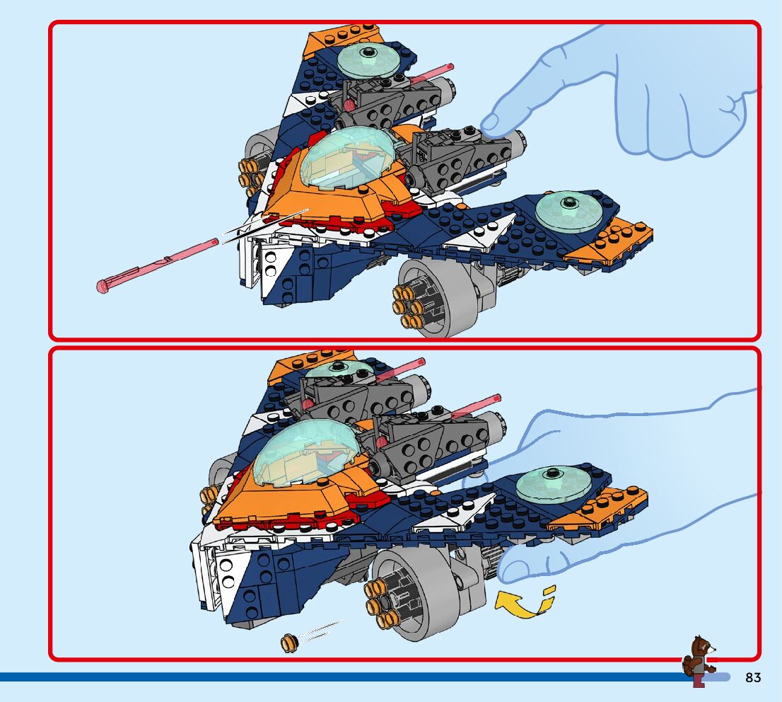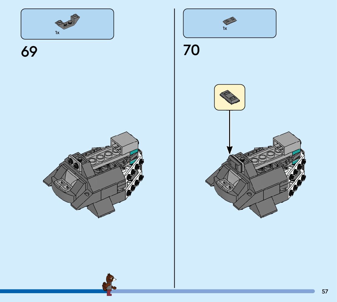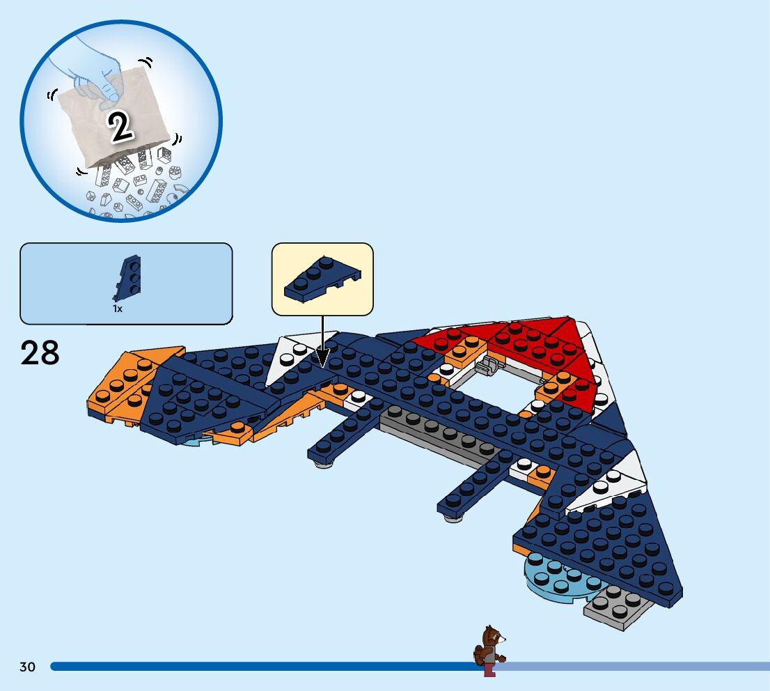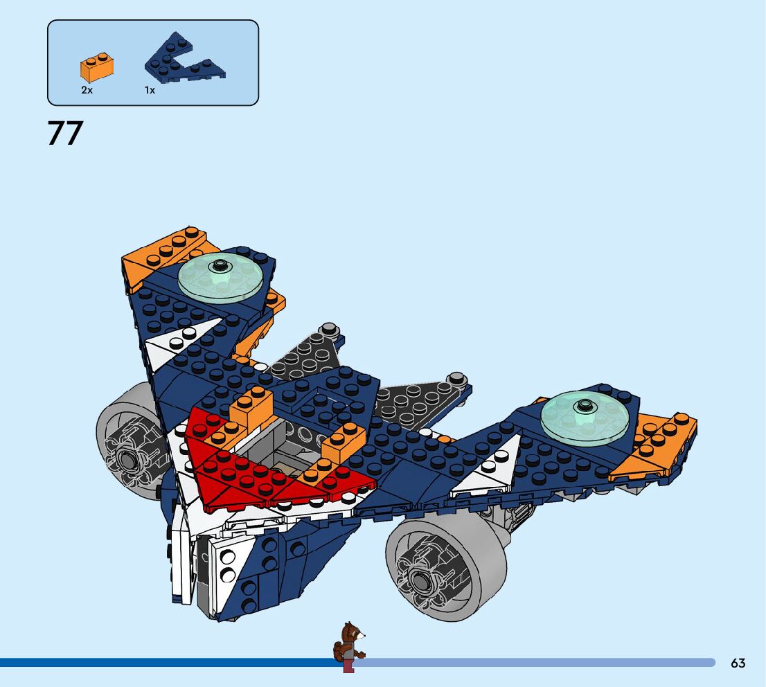 On this page you can find the original construction manual for the LEGO 76278 set. With the assembly manual you can easily learn how to build the 76278 Rocket's Warbird vs. Ronan step by step. The set was released in 2024.