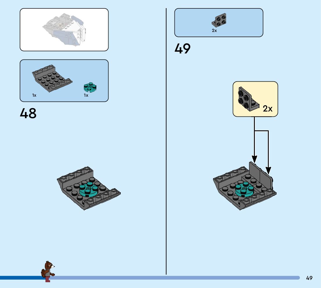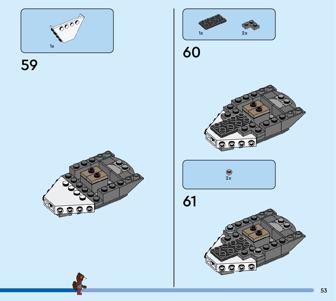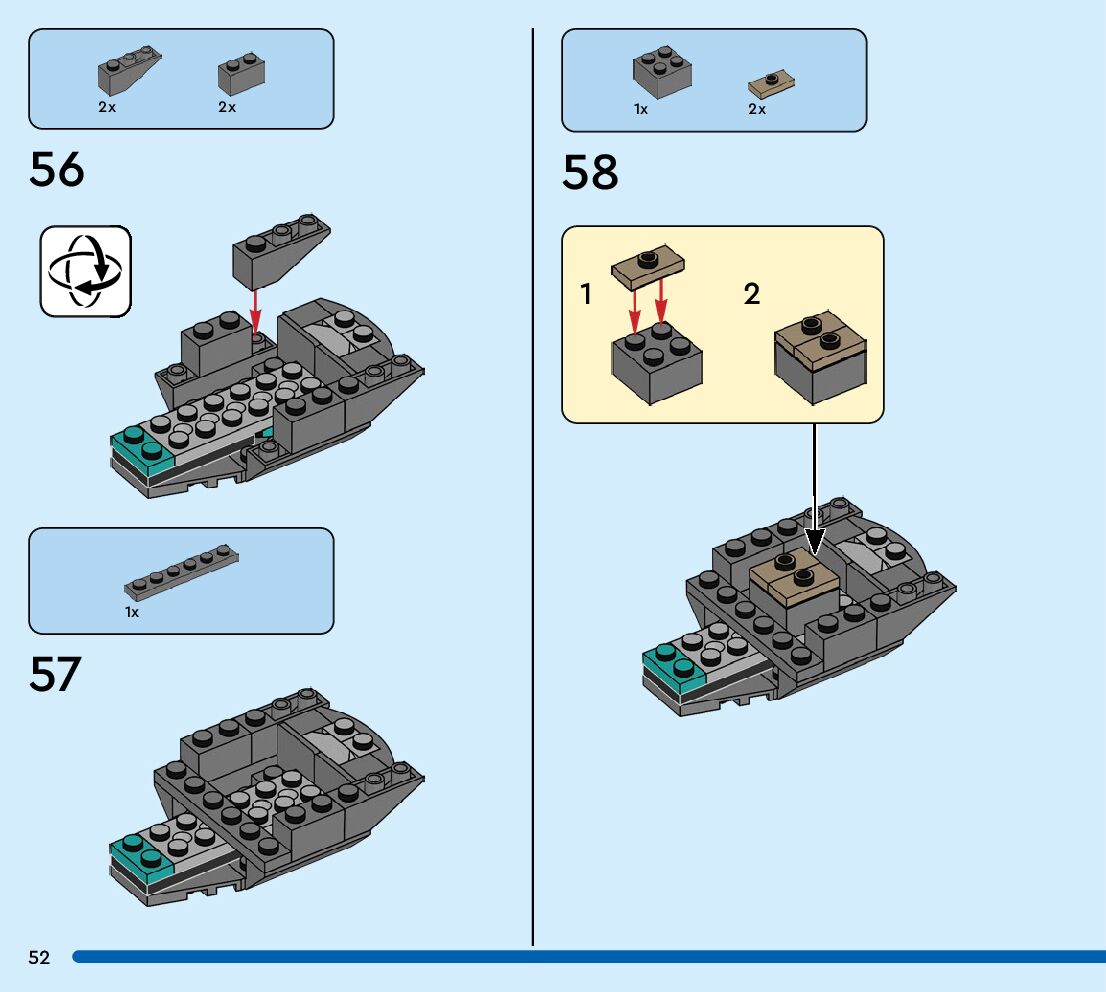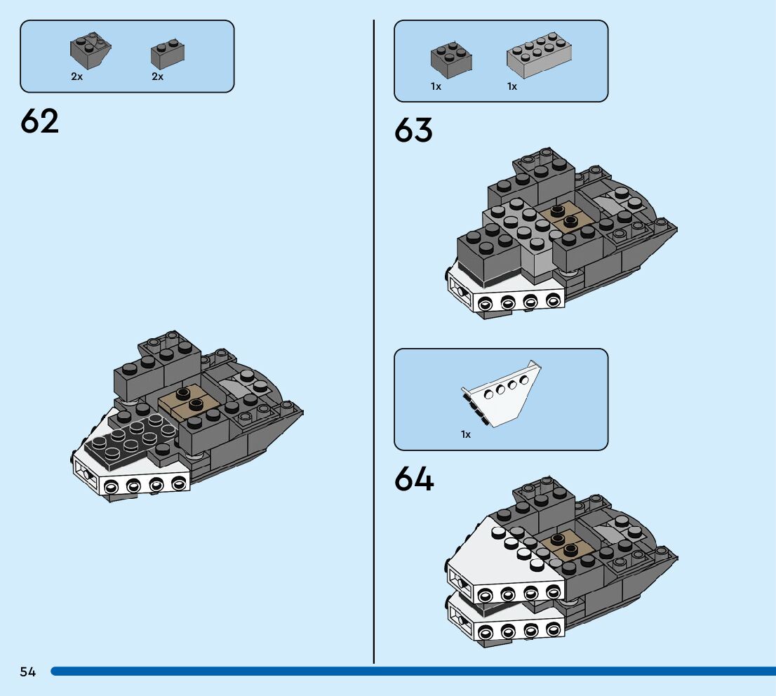 The assembly guide is prepared in a very understandable way for children and adult LEGO enthusiasts. A total of 88 picture galleries are shown, explaining the step-by-step construction stages for 1 different structures.