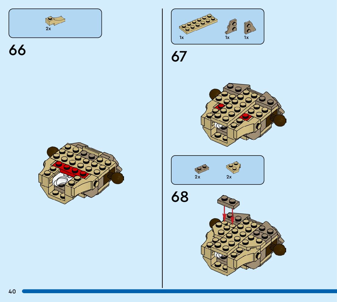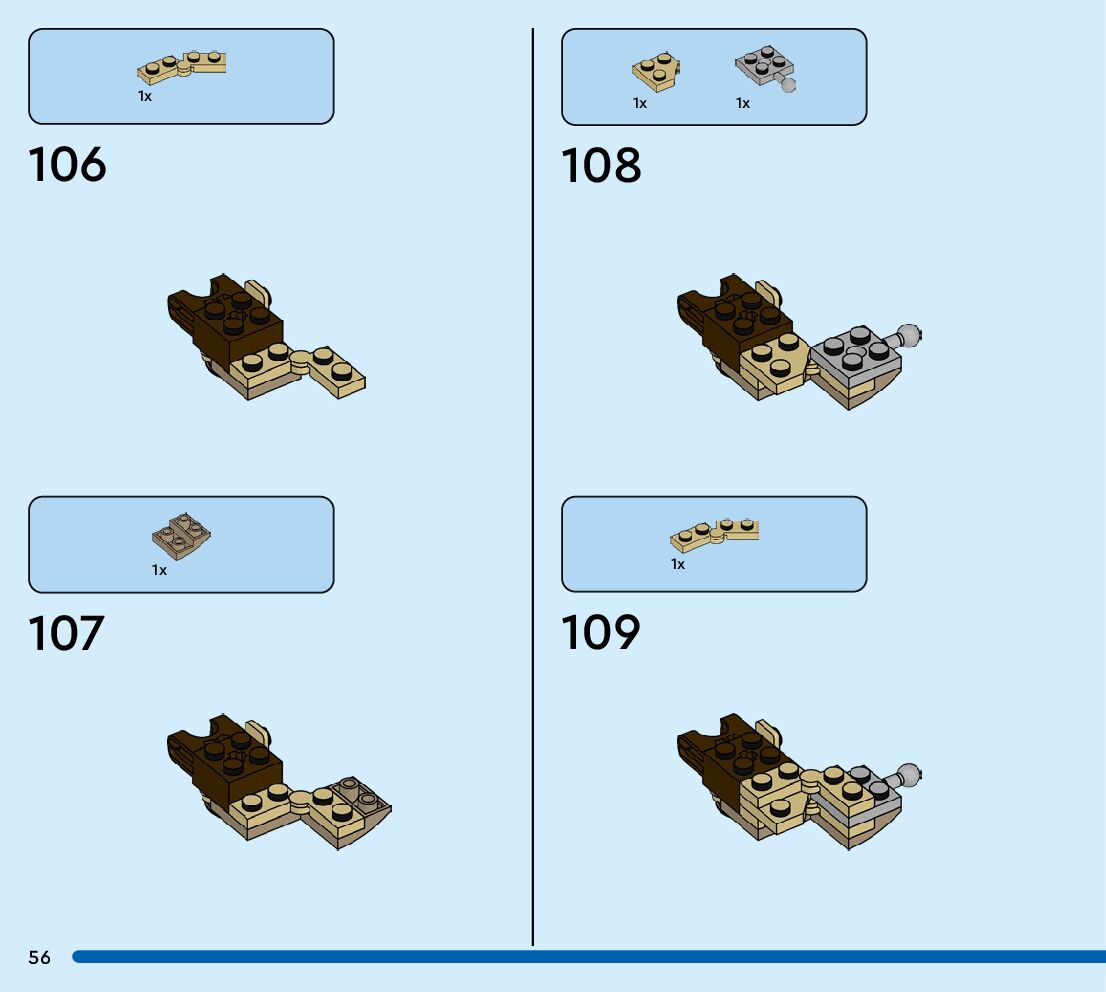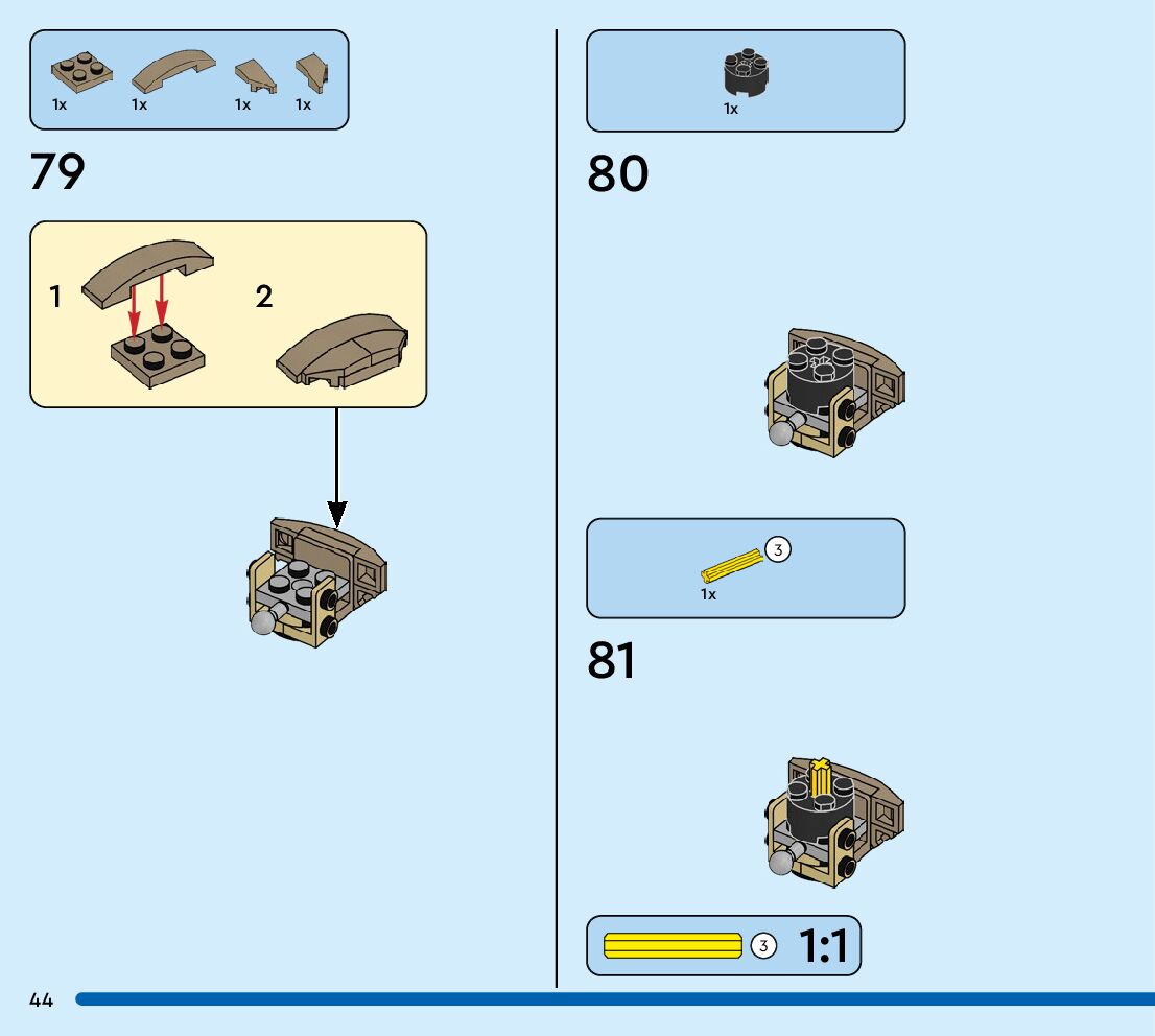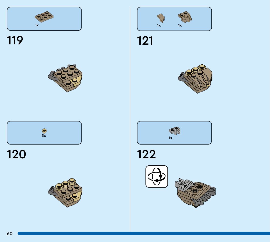 The assembly guide is prepared in a very understandable way for children and adult LEGO enthusiasts. A total of 72 picture galleries are shown, explaining the step-by-step construction stages for 1 different structures.