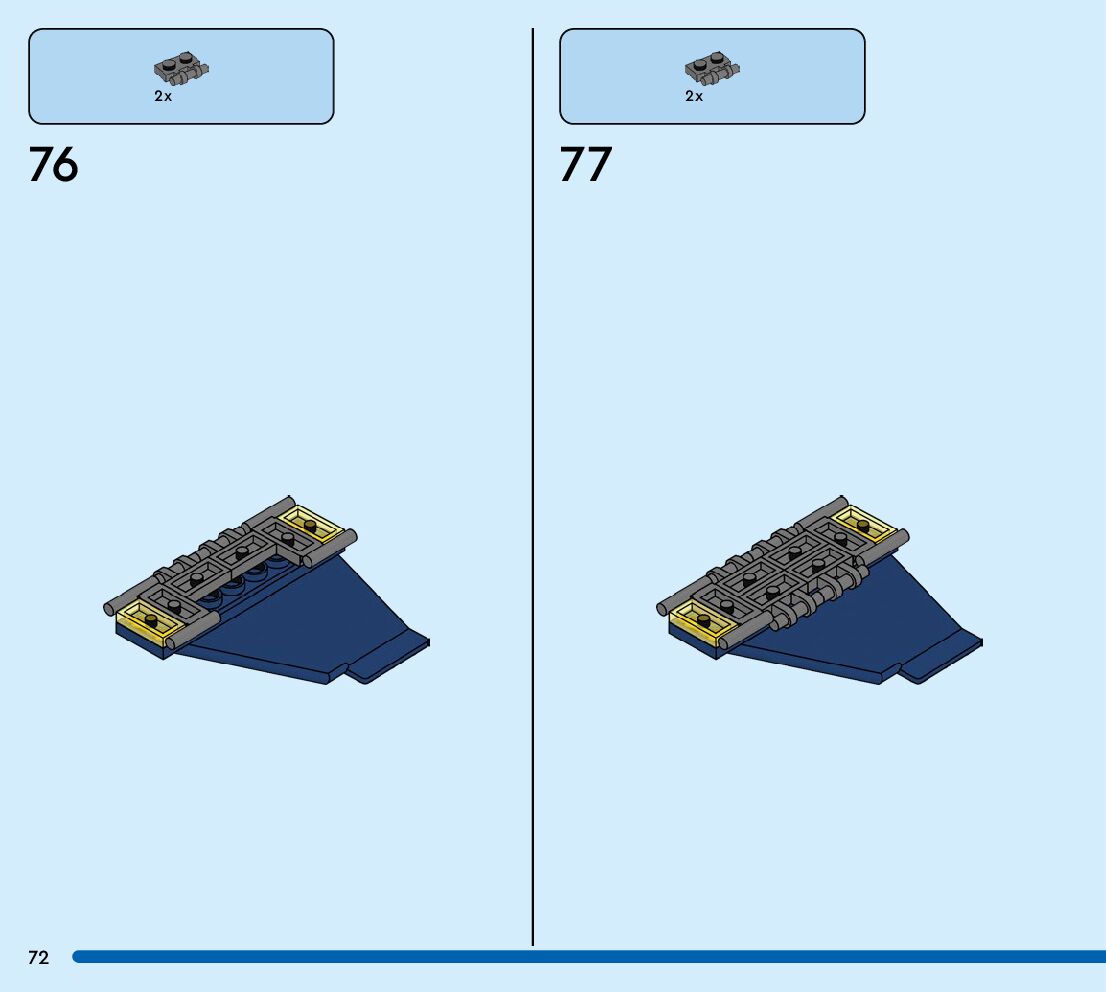 The assembly guide is prepared in a very understandable way for children and adult LEGO enthusiasts. A total of 92 picture galleries are shown, explaining the step-by-step construction stages for 1 different structures.