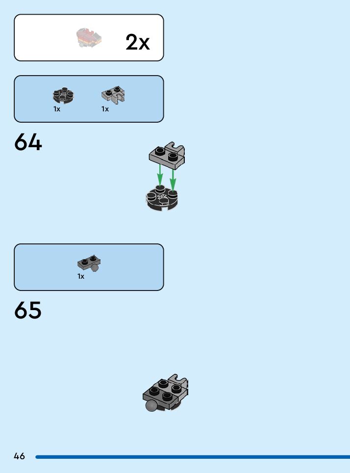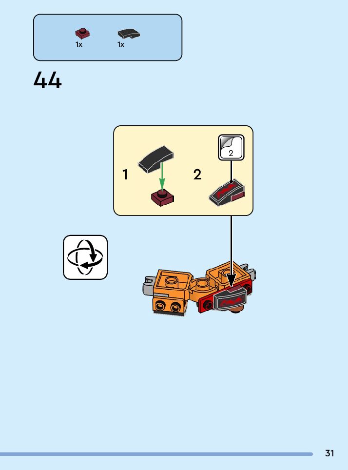 The assembly guide is prepared in a very understandable way for children and adult LEGO enthusiasts. A total of 84 picture galleries are shown, explaining the step-by-step construction stages for 1 different structures.