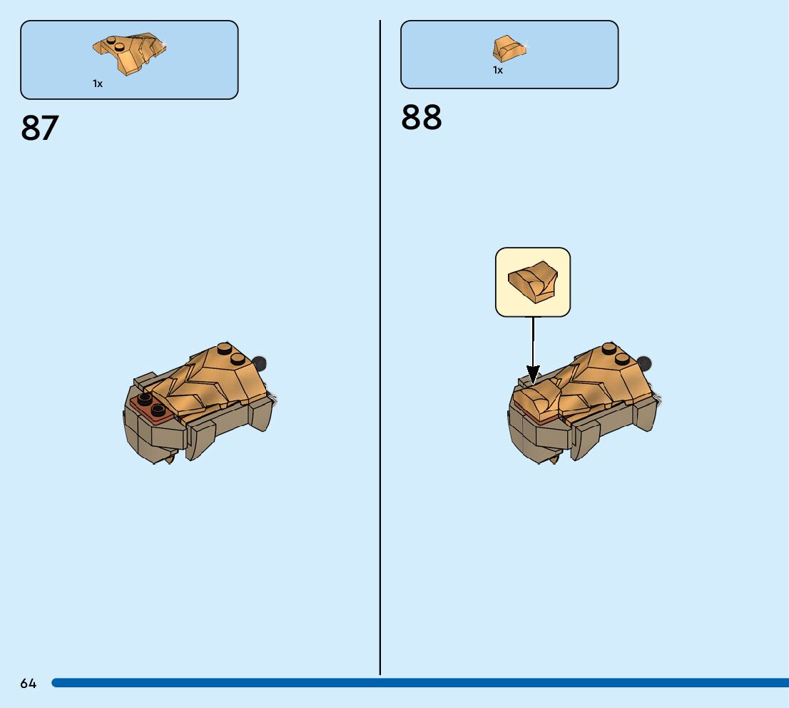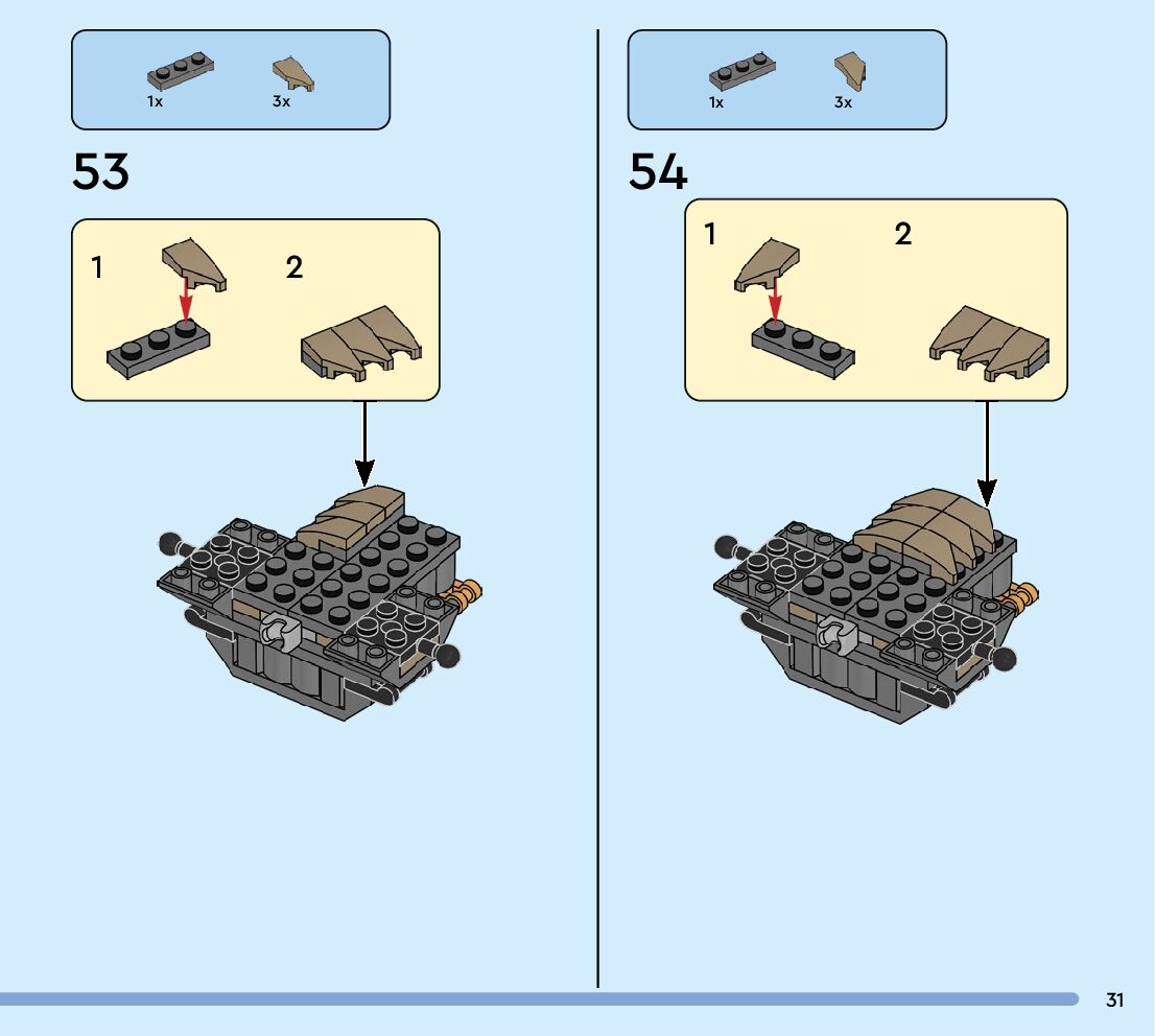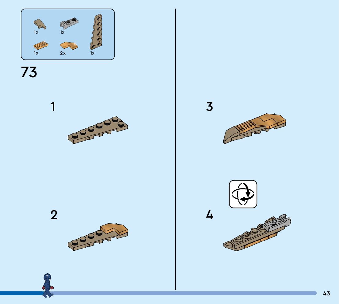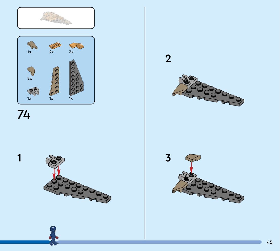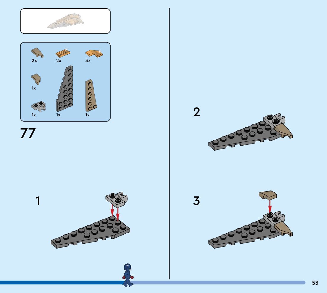 The assembly guide is prepared in a very understandable way for children and adult LEGO enthusiasts. A total of 76 picture galleries are shown, explaining the step-by-step construction stages for 1 different structures.