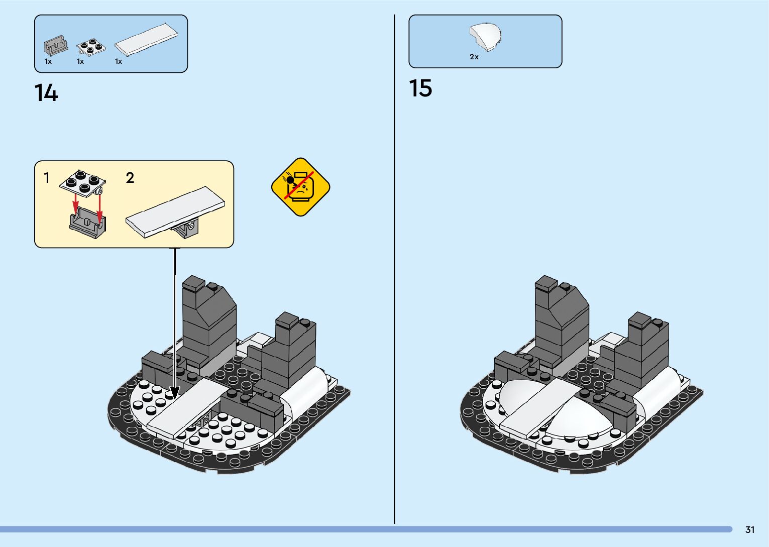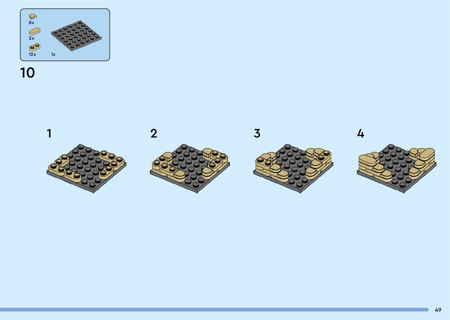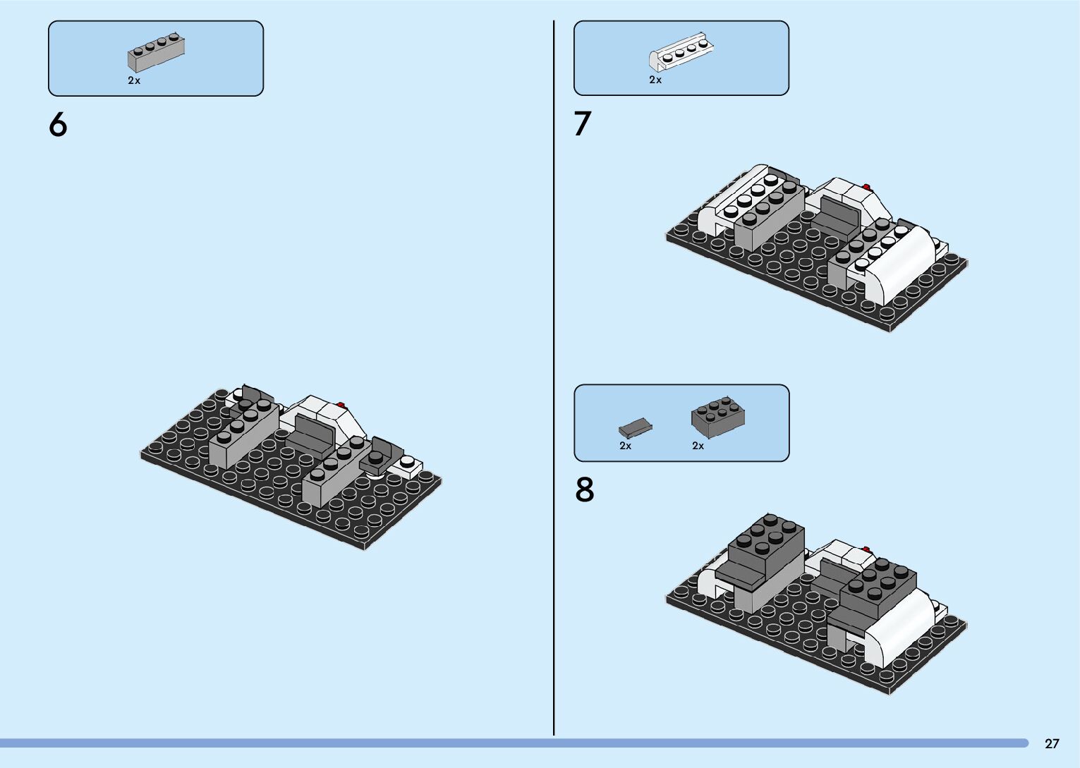 The assembly guide is prepared in a very understandable way for children and adult LEGO enthusiasts. A total of 108 picture galleries are shown, explaining the step-by-step construction stages for 1 different structures.