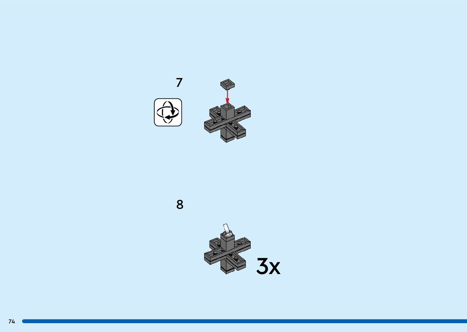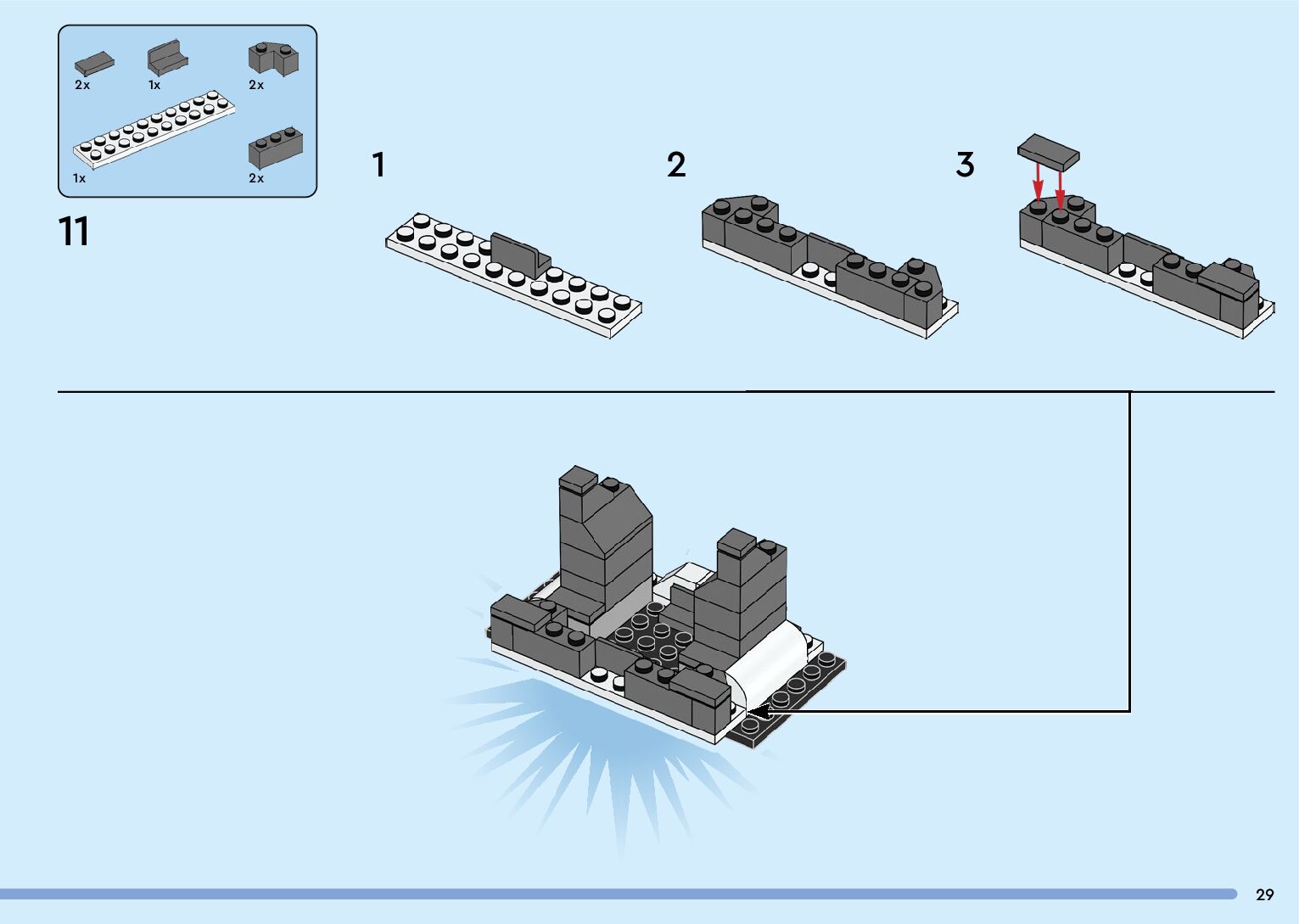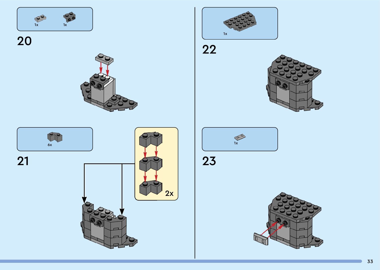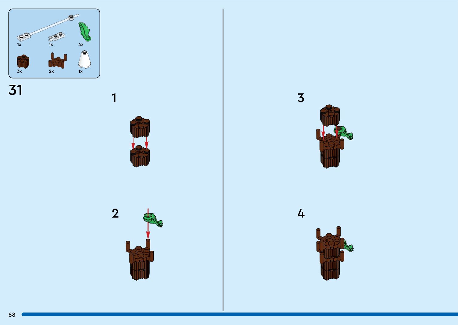 The assembly guide is prepared in a very understandable way for children and adult LEGO enthusiasts. A total of 108 picture galleries are shown, explaining the step-by-step construction stages for 1 different structures.