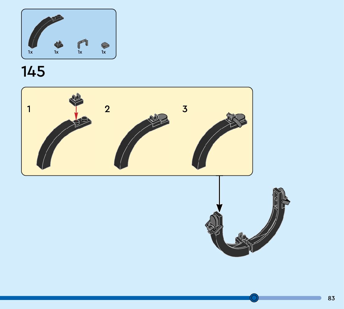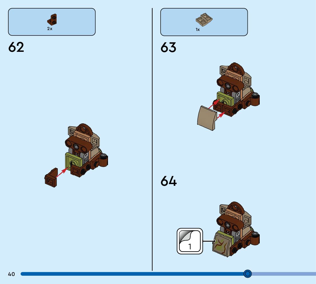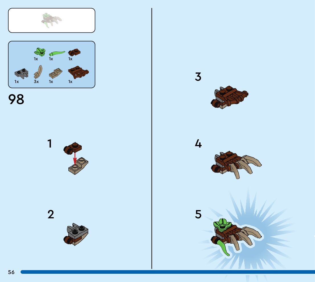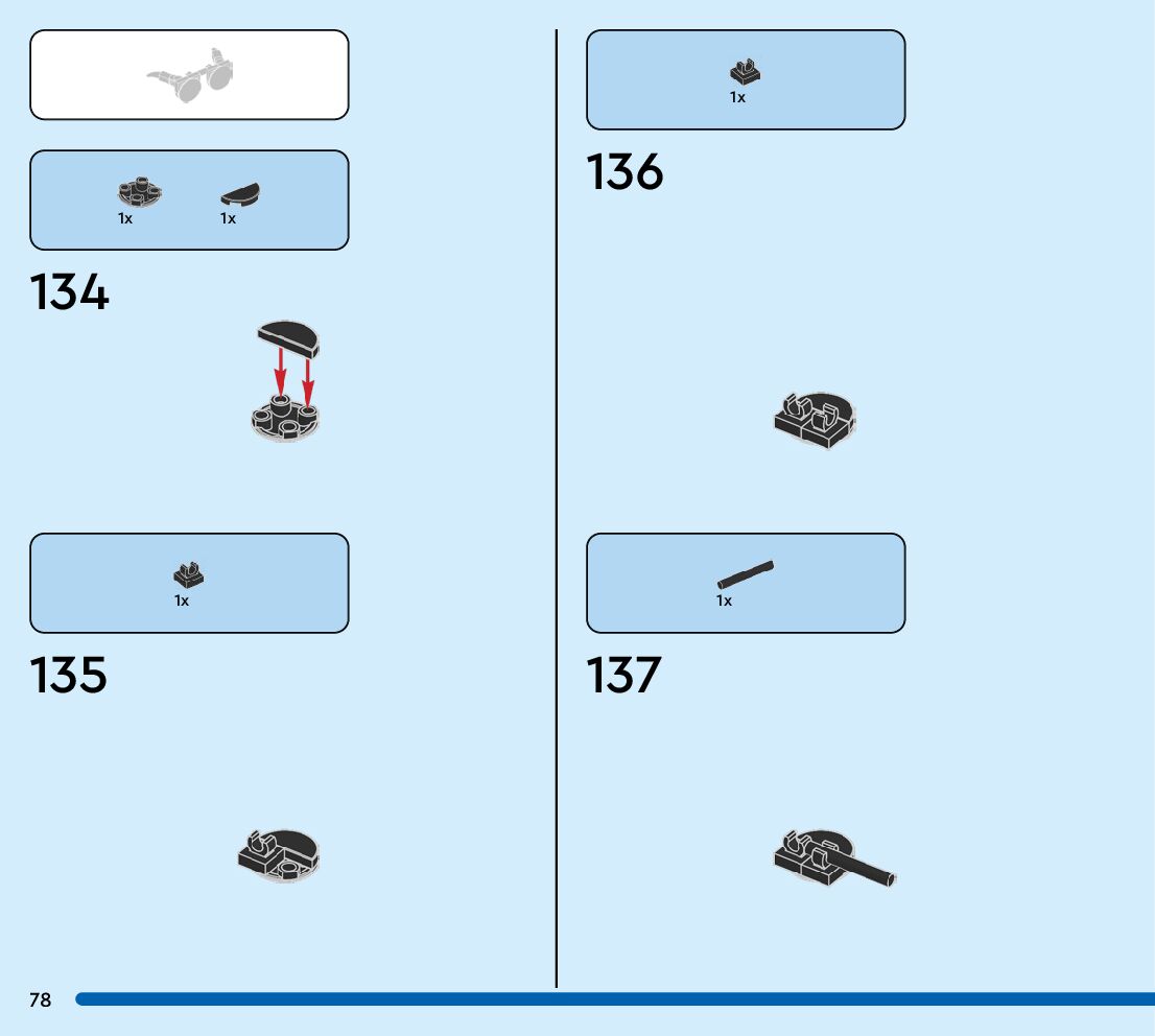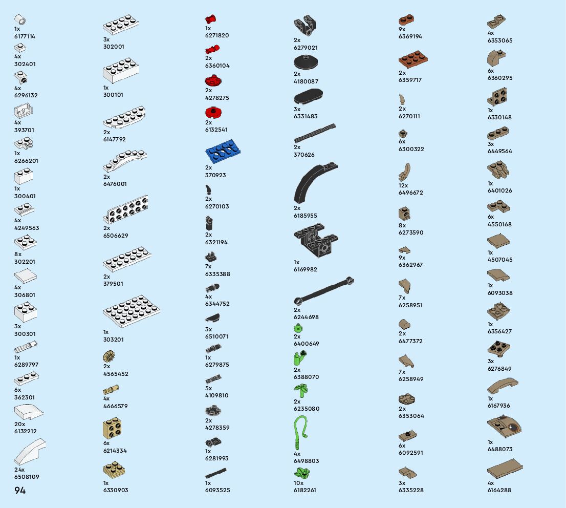 The assembly guide is prepared in a very understandable way for children and adult LEGO enthusiasts. A total of 96 picture galleries are shown, explaining the step-by-step construction stages for 1 different structures.