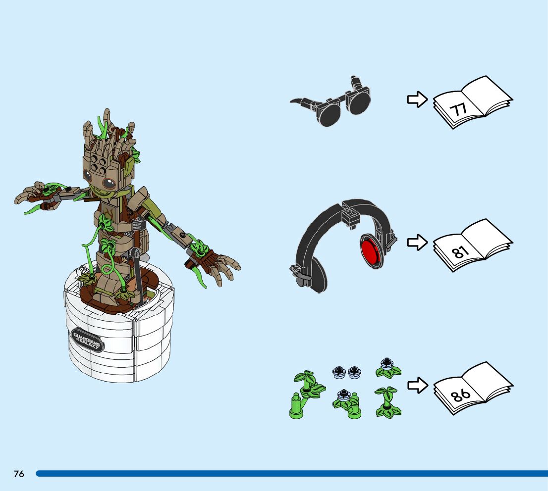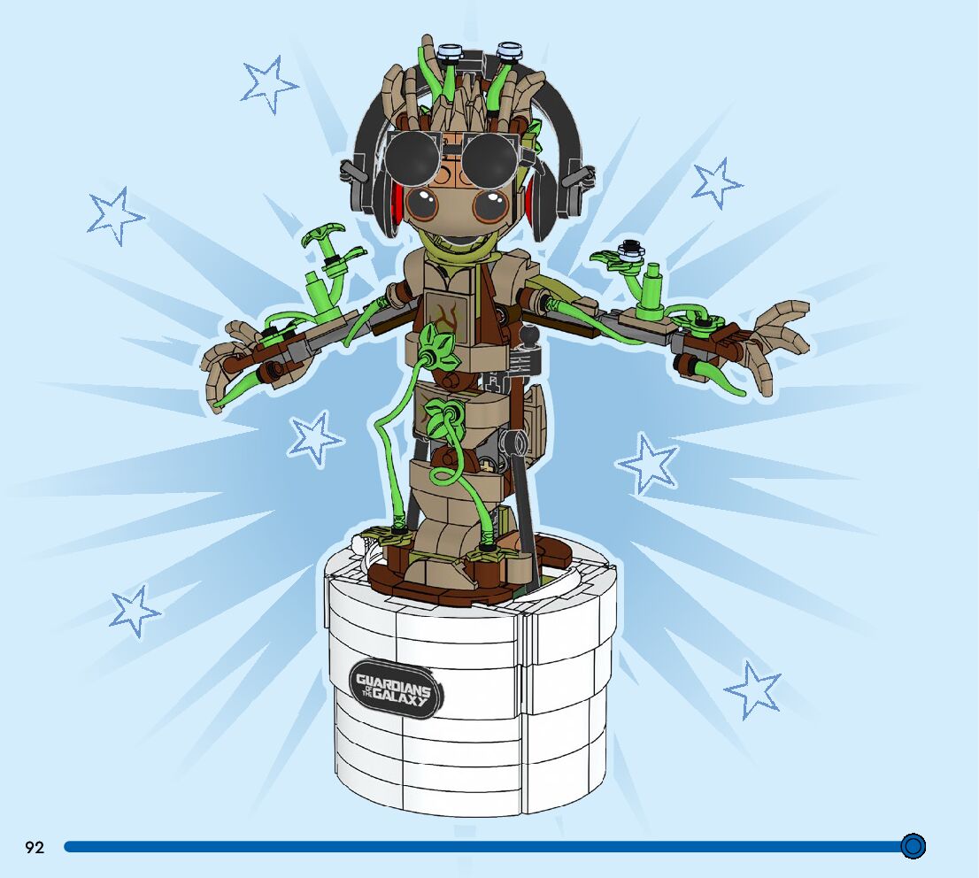 This page shares information about LEGO 76297 Dancing Groot manual, LEGO 76297 PDF instructions, LEGO 76297 Dancing Groot building guide online, How to build 76297 Dancing Groot LEGO.