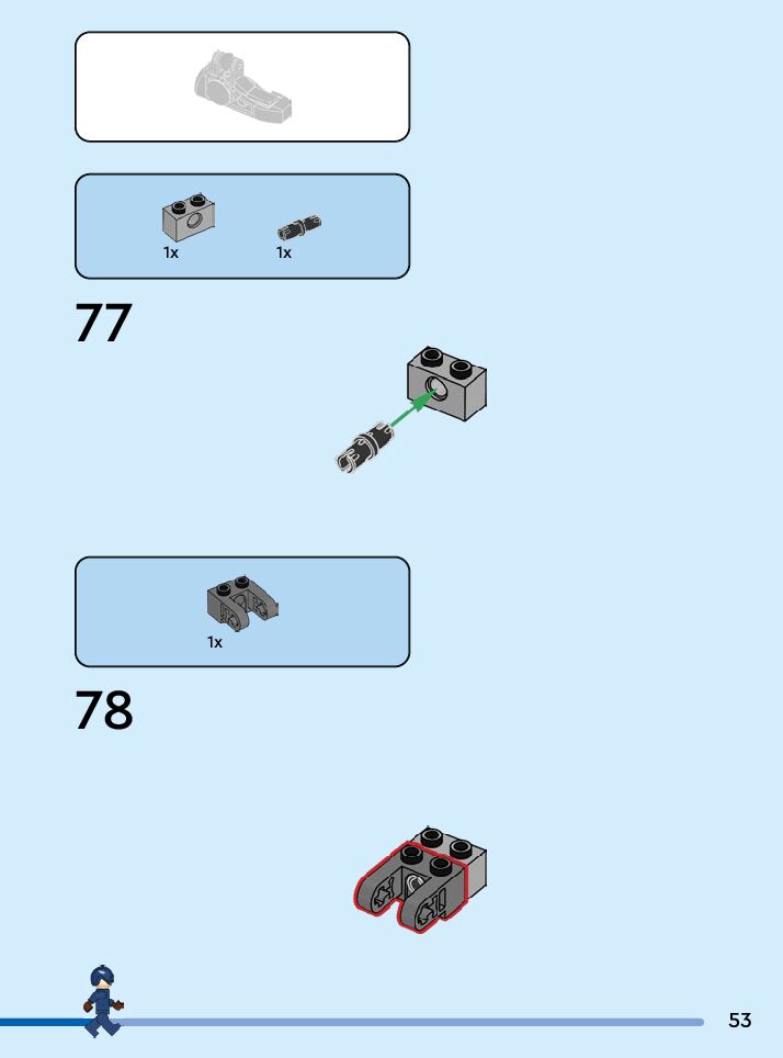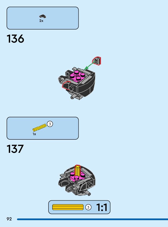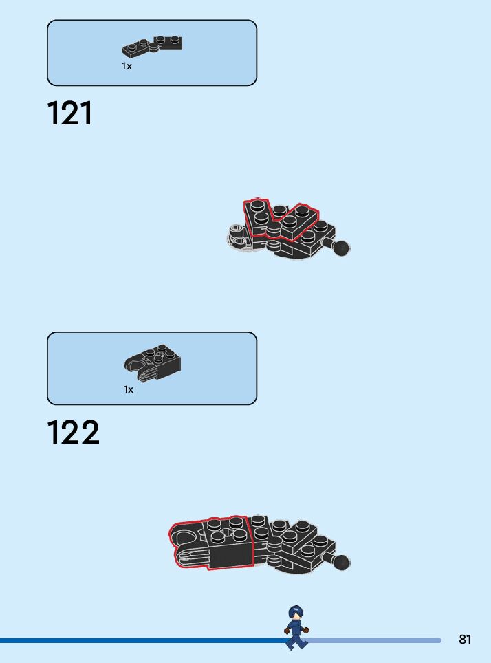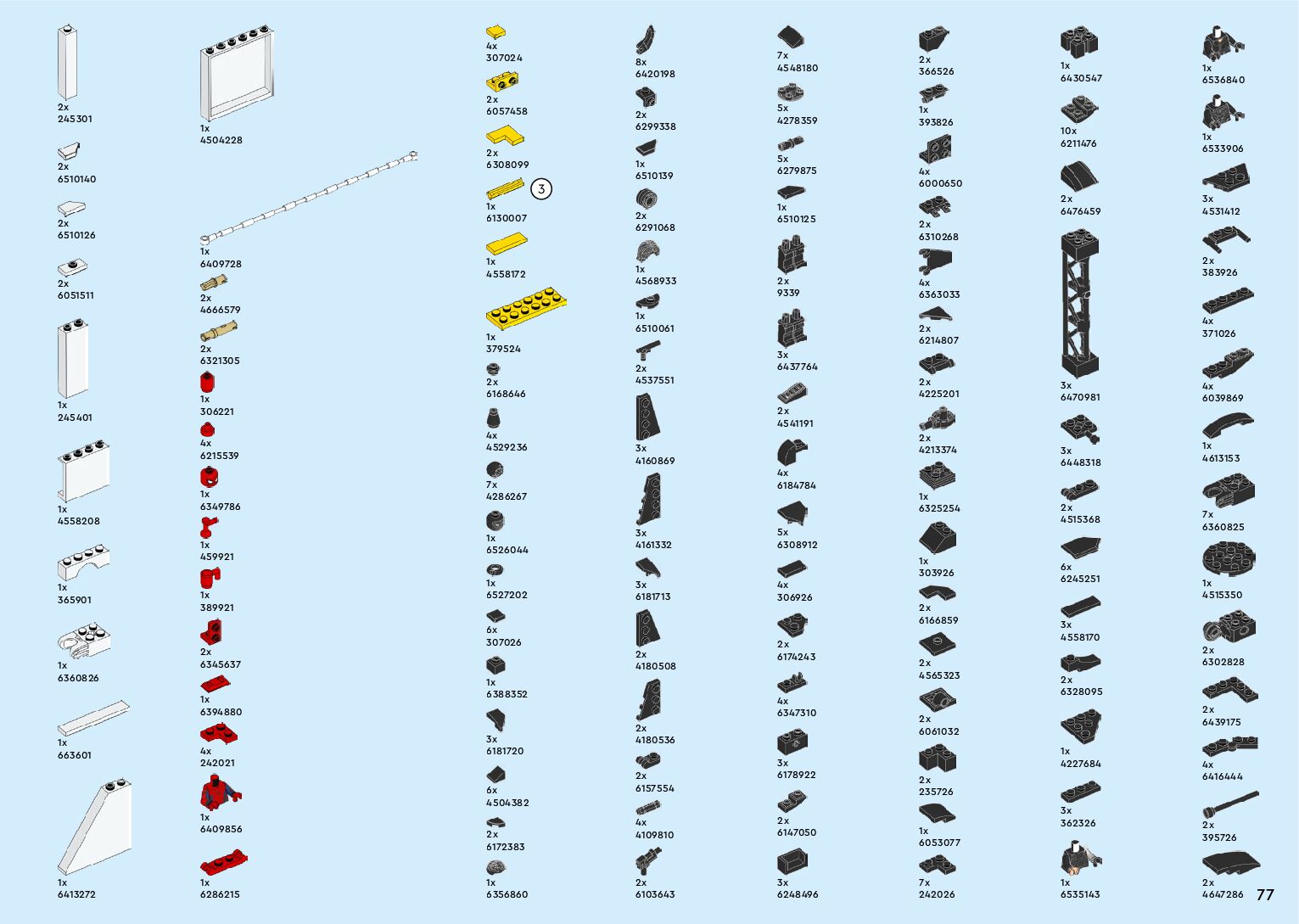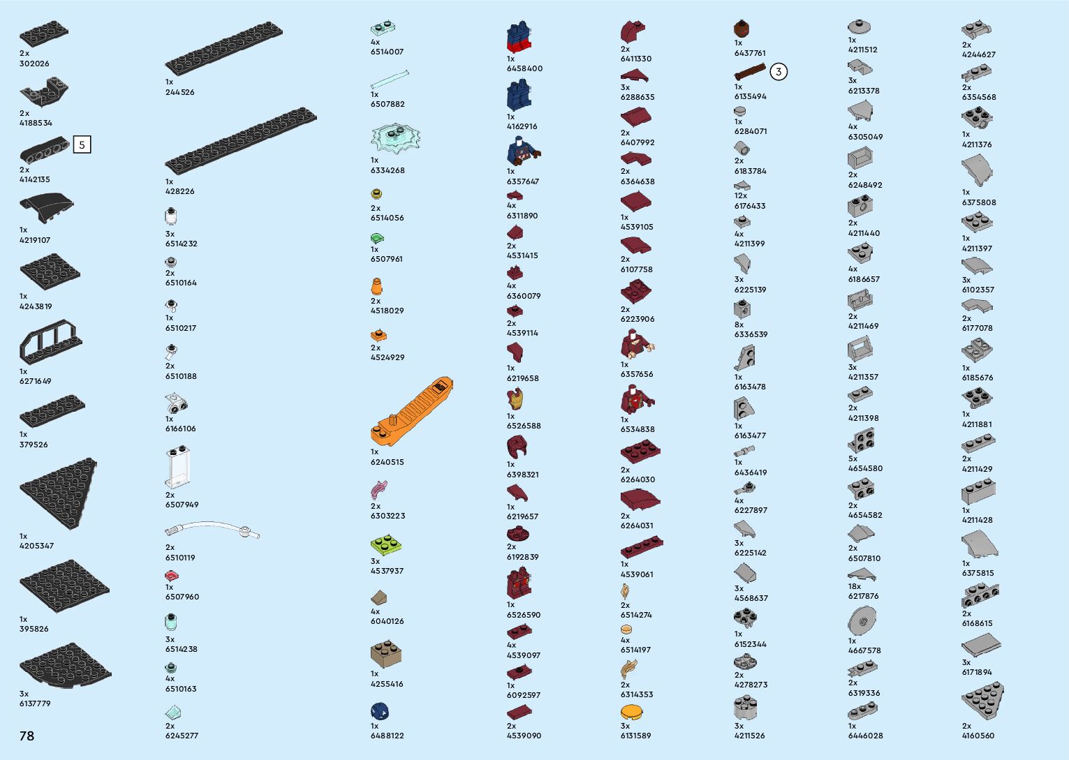 The assembly guide is prepared in a very understandable way for children and adult LEGO enthusiasts. A total of 260 picture galleries are shown, explaining the step-by-step construction stages for 3 different structures.