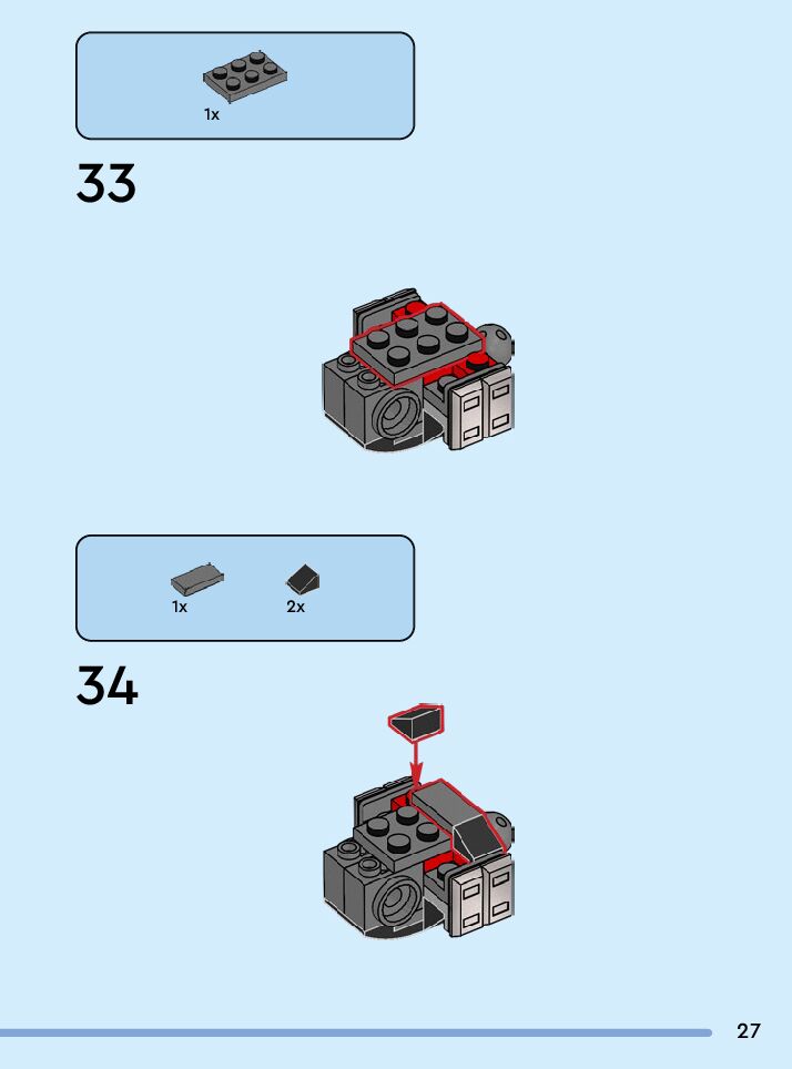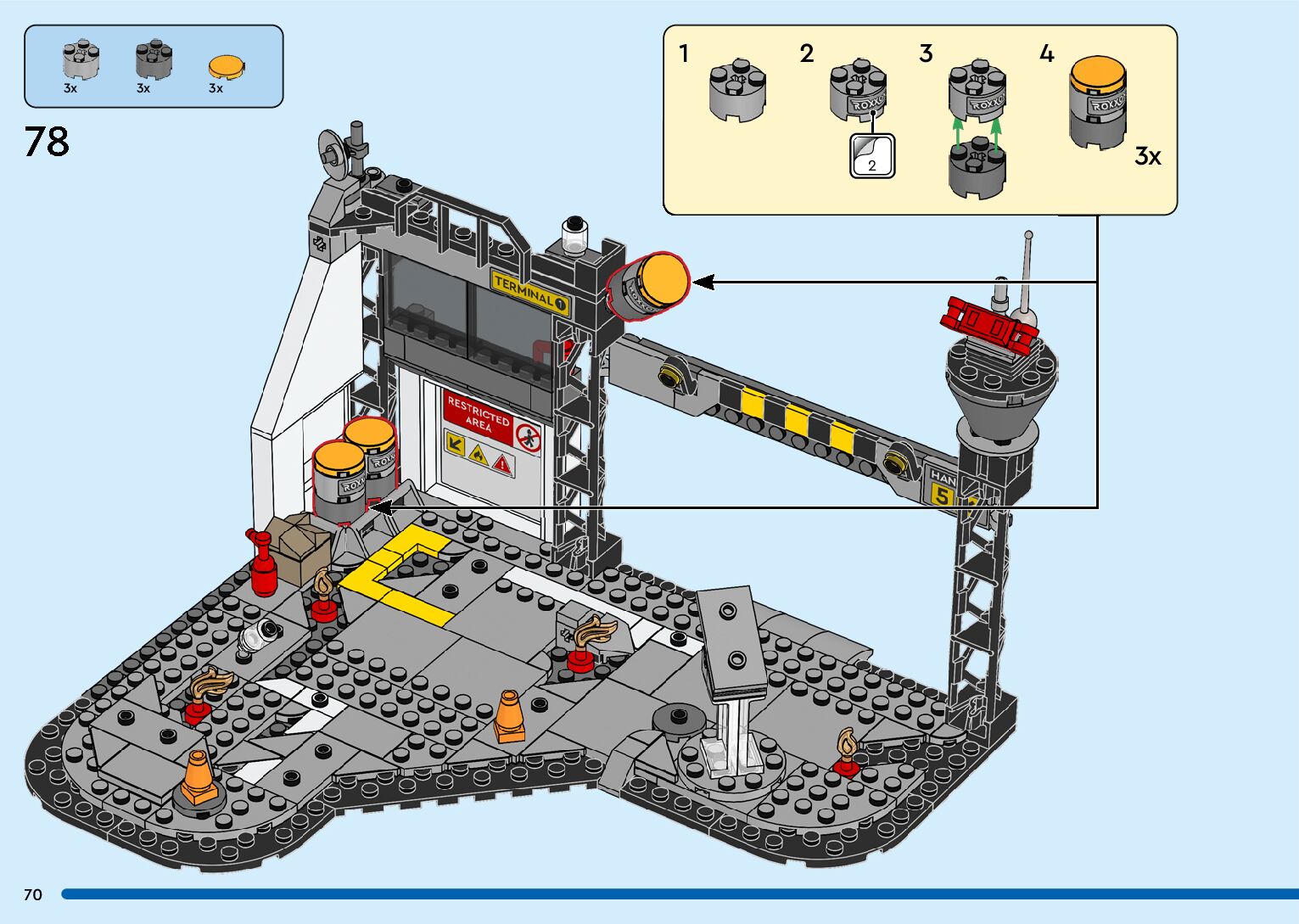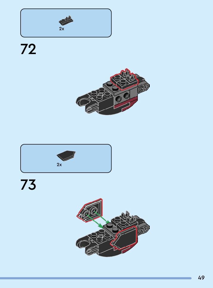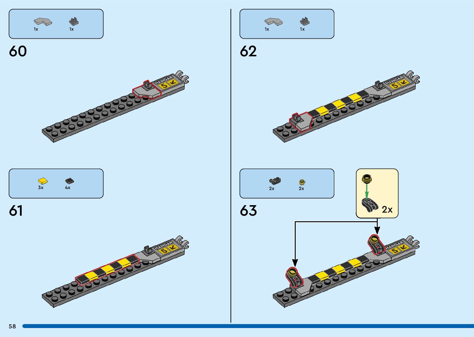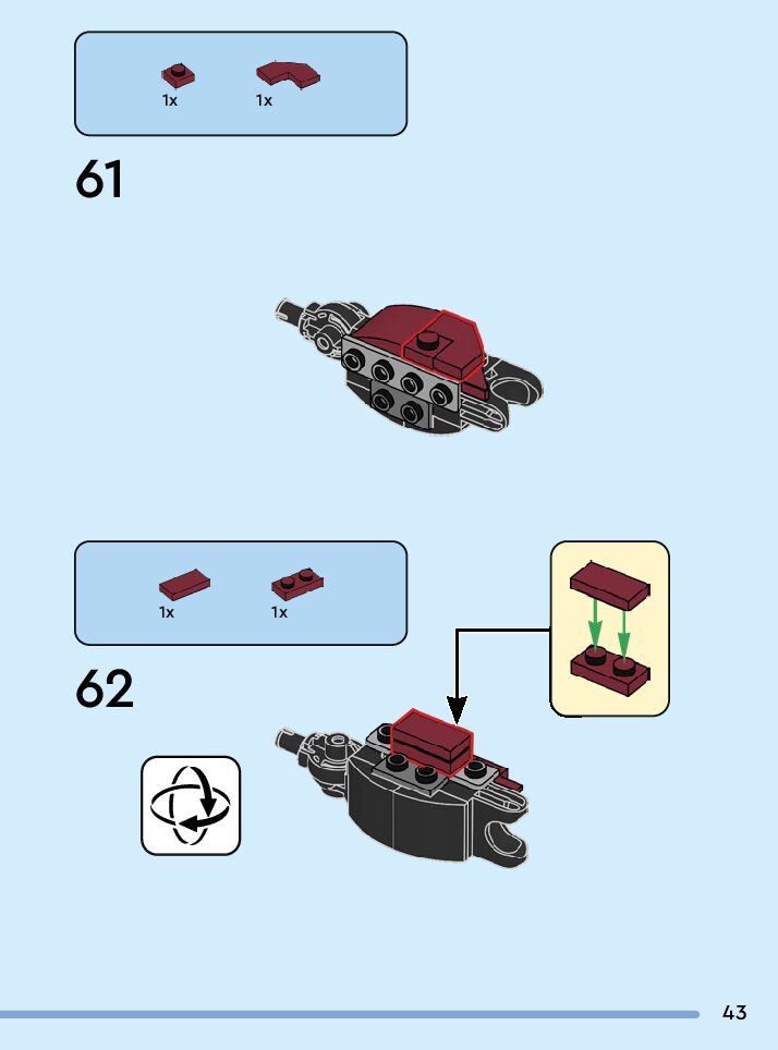The assembly guide is prepared in a very understandable way for children and adult LEGO enthusiasts. A total of 260 picture galleries are shown, explaining the step-by-step construction stages for 3 different structures.