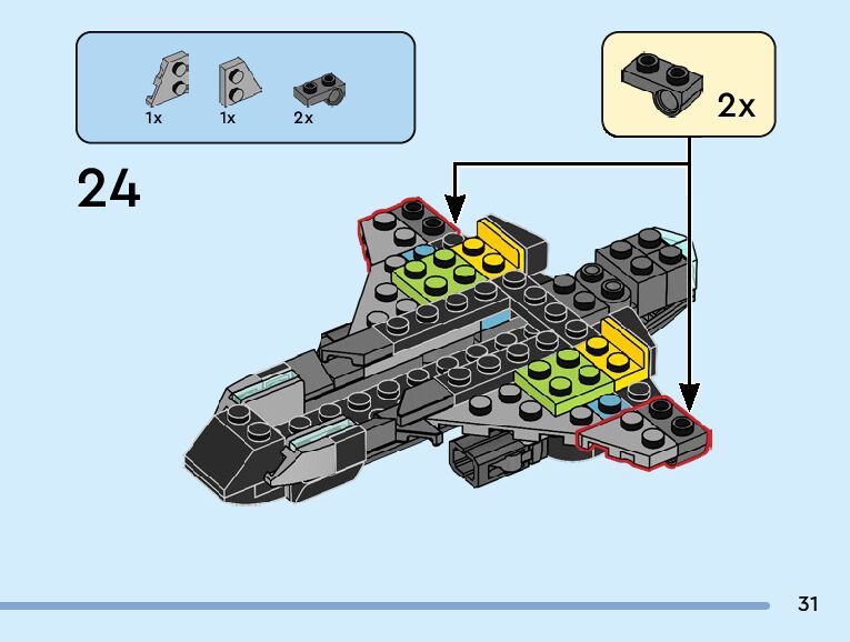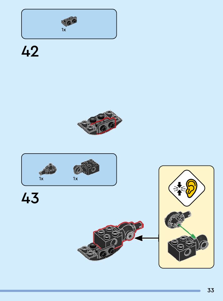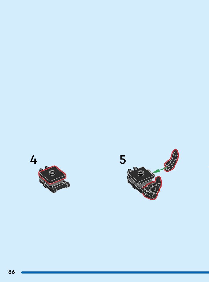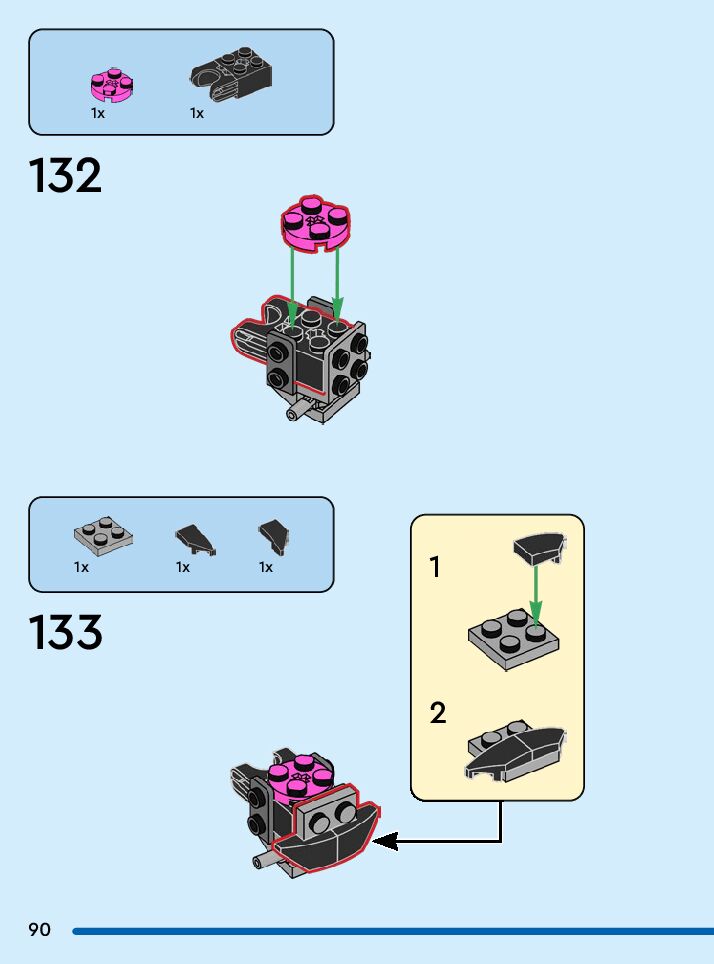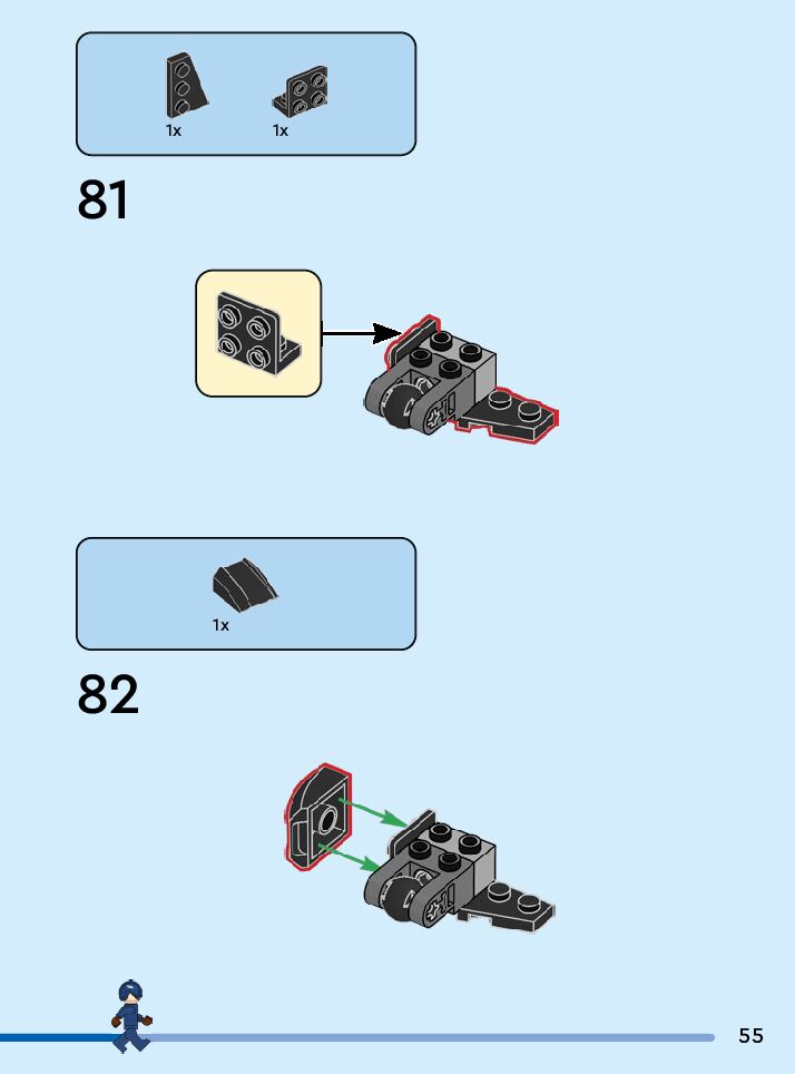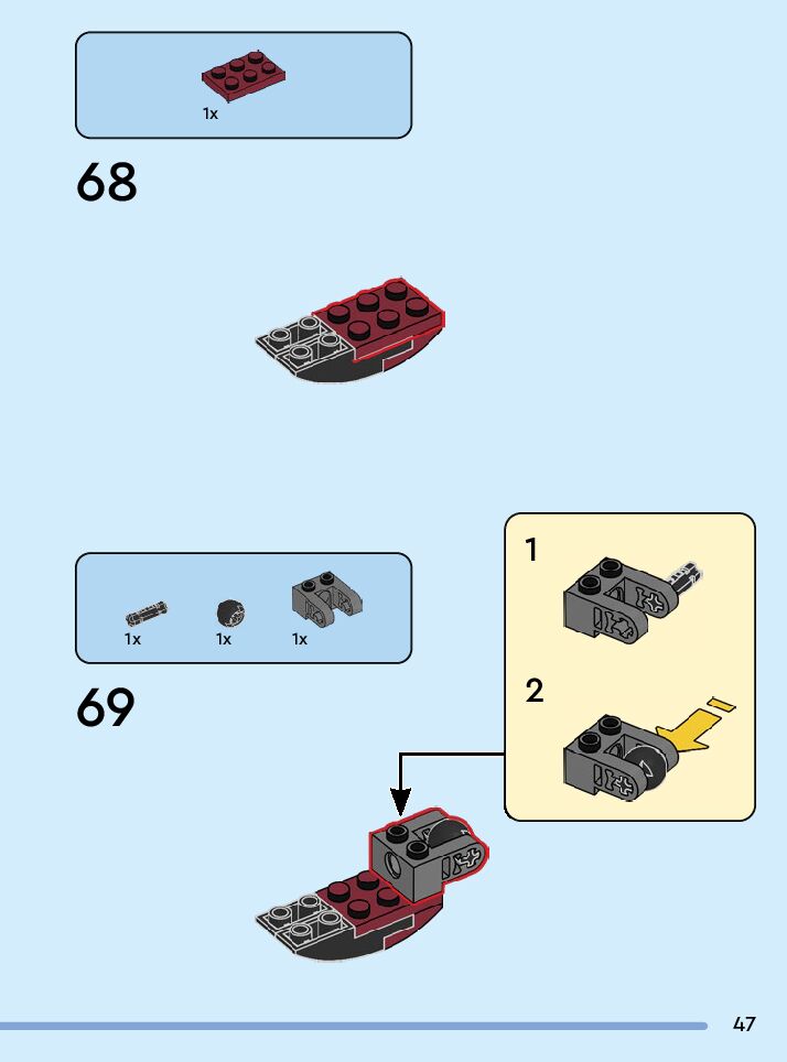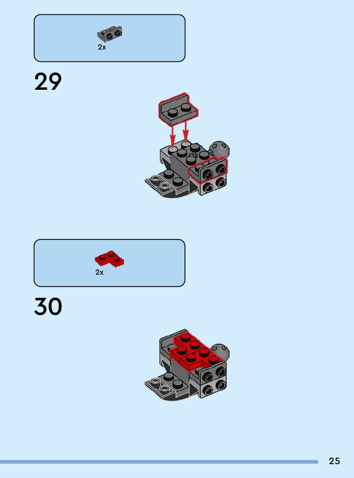 The assembly guide is prepared in a very understandable way for children and adult LEGO enthusiasts. A total of 260 picture galleries are shown, explaining the step-by-step construction stages for 3 different structures.