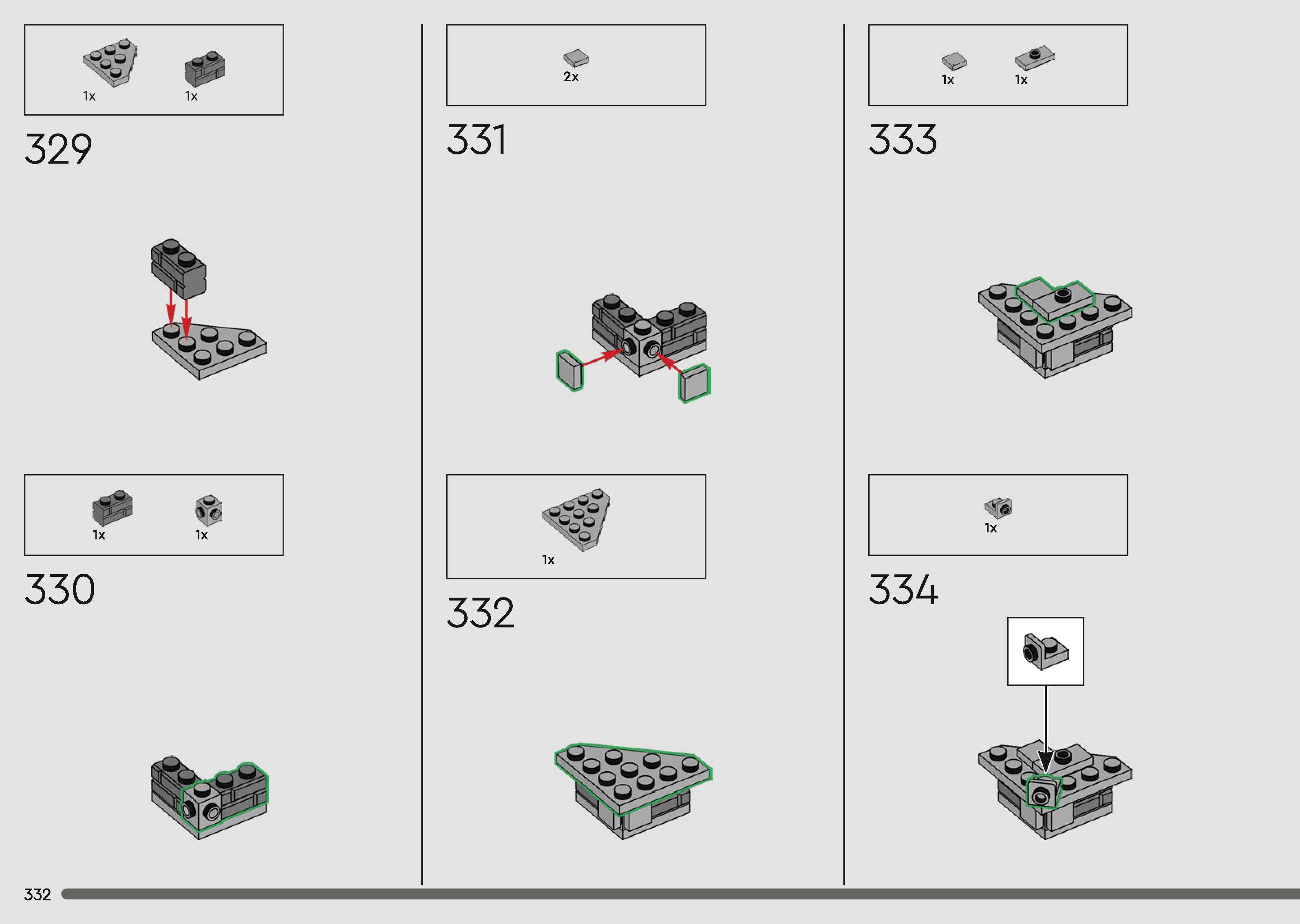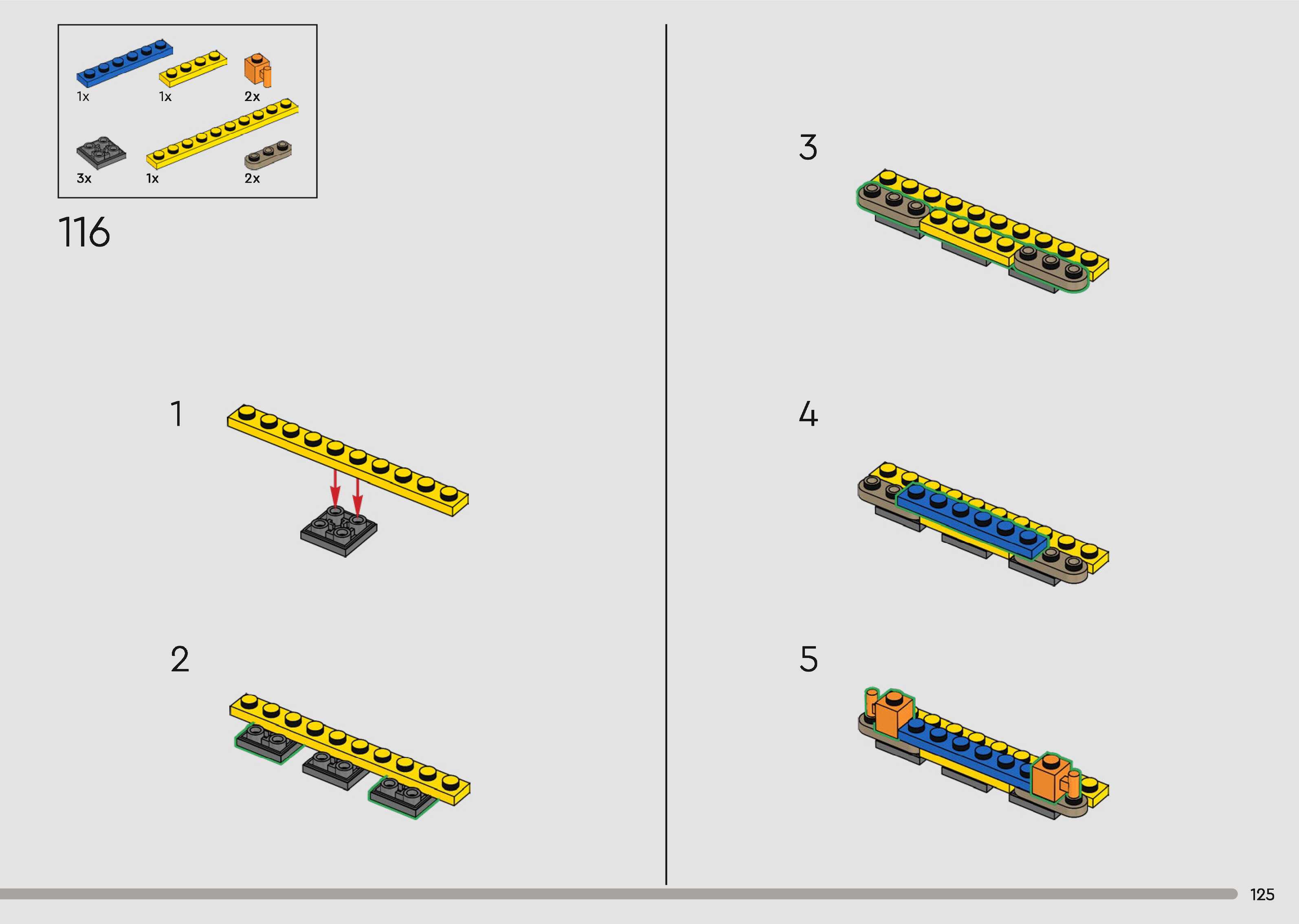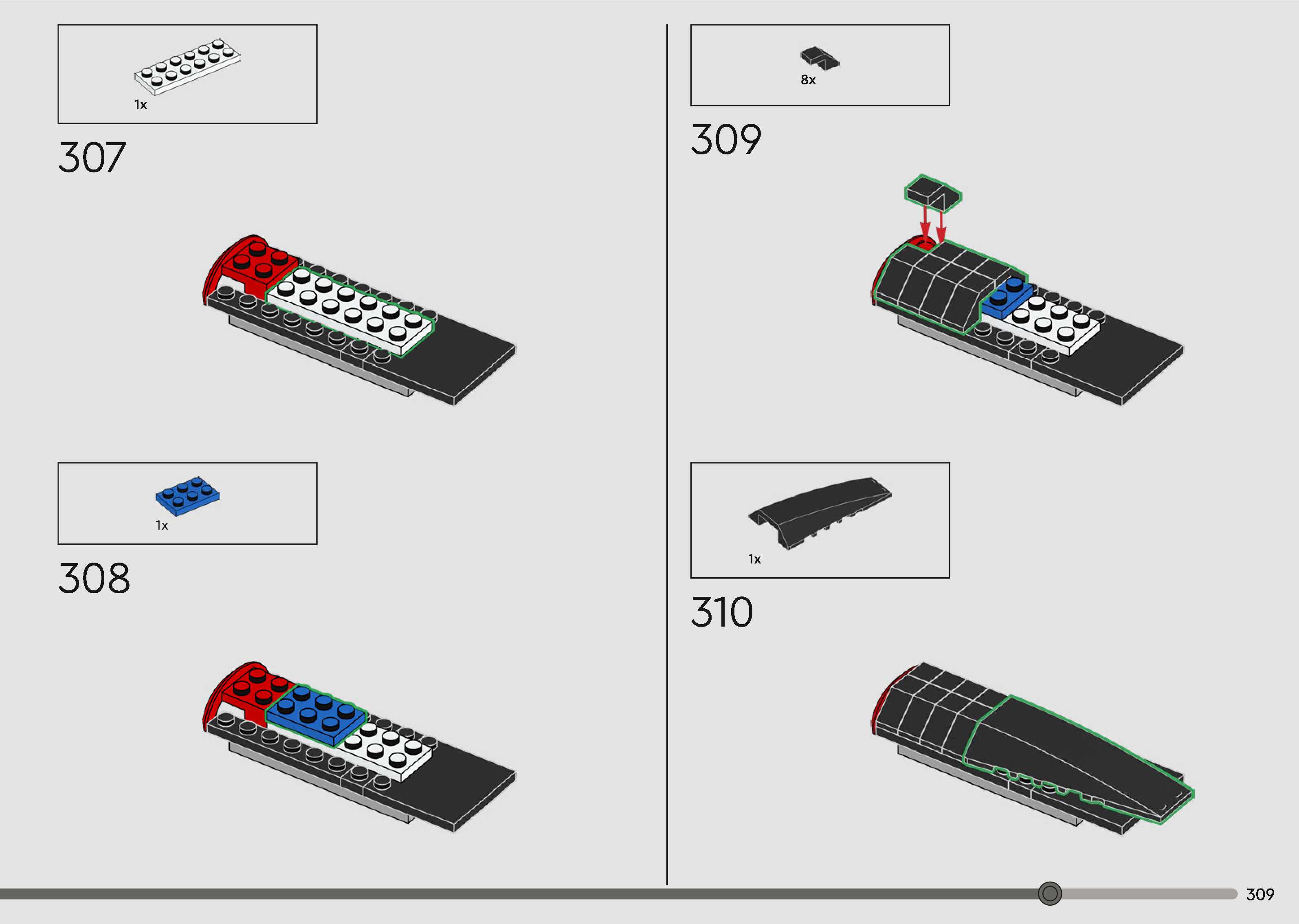 The assembly guide is prepared in a very understandable way for children and adult LEGO enthusiasts. A total of 340 picture galleries are shown, explaining the step-by-step construction stages for 1 different structures.