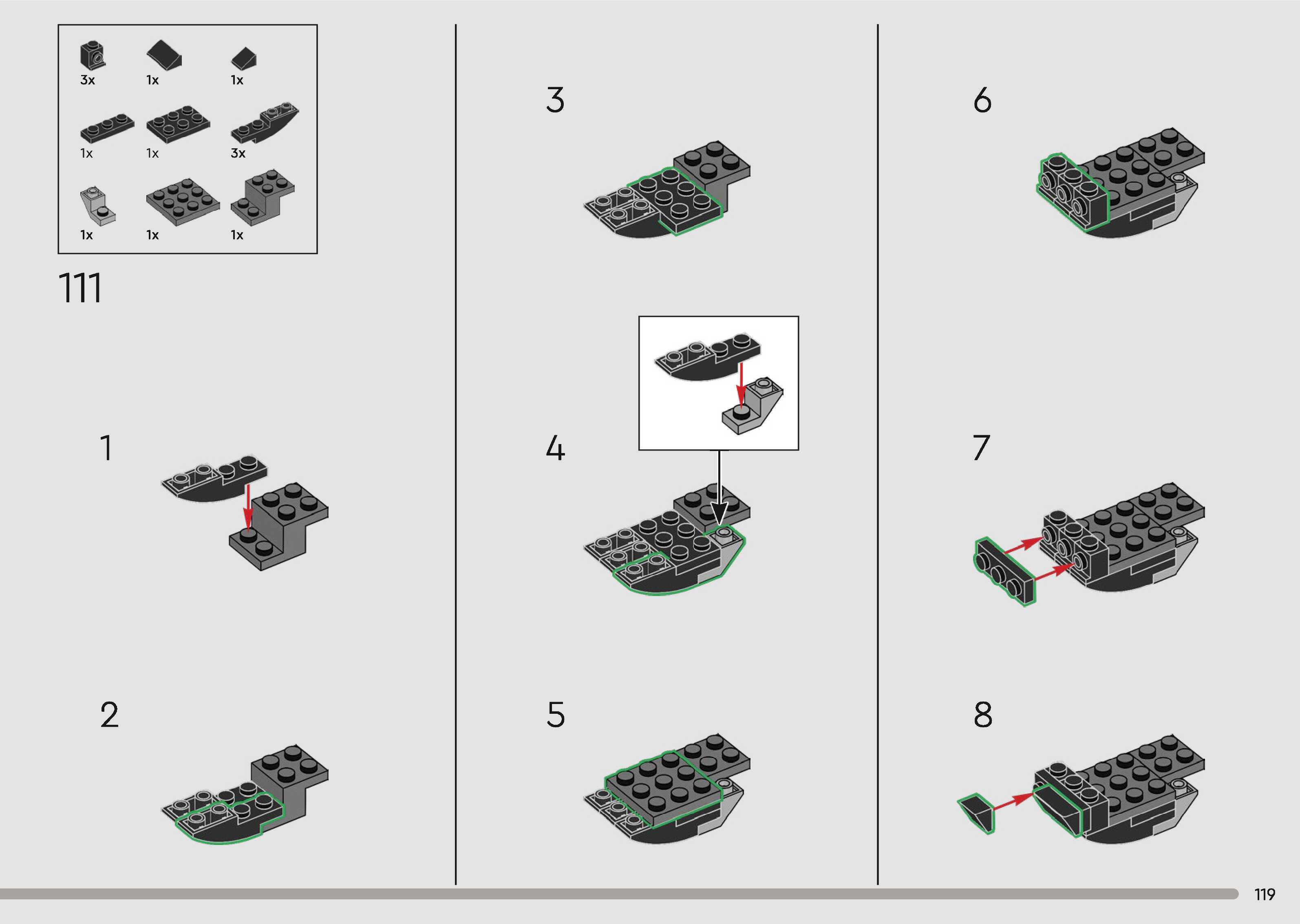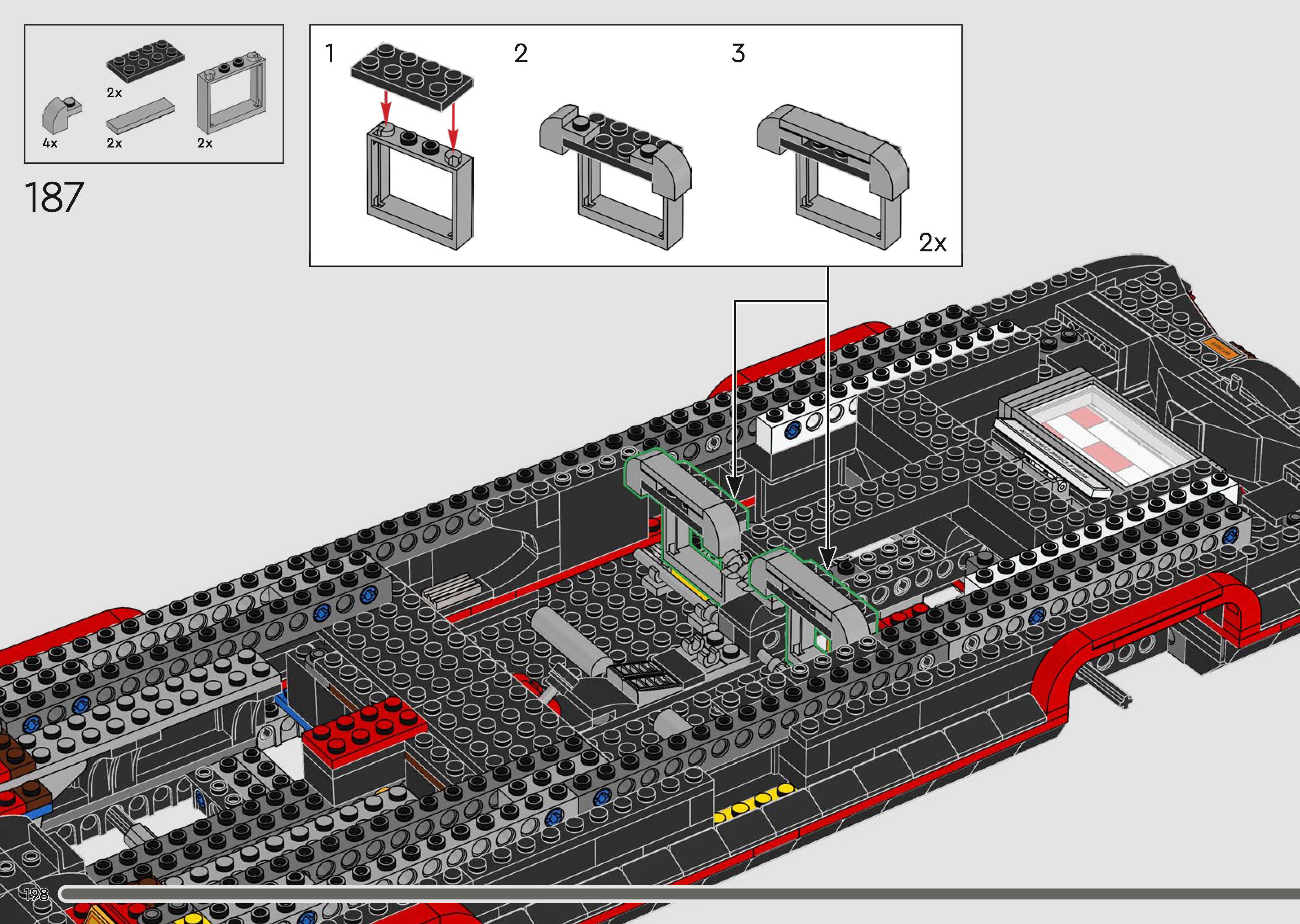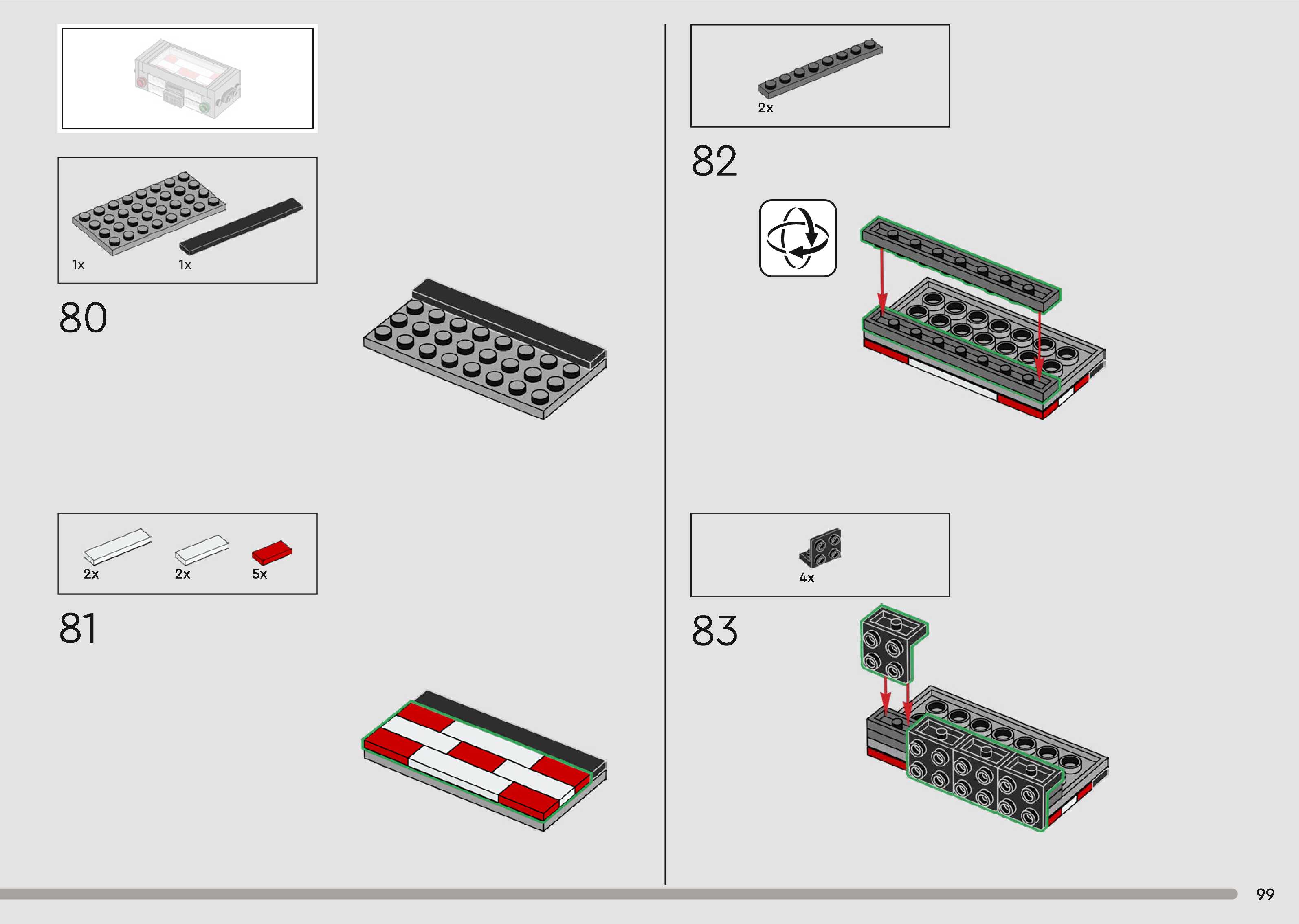 The assembly guide is prepared in a very understandable way for children and adult LEGO enthusiasts. A total of 340 picture galleries are shown, explaining the step-by-step construction stages for 1 different structures.