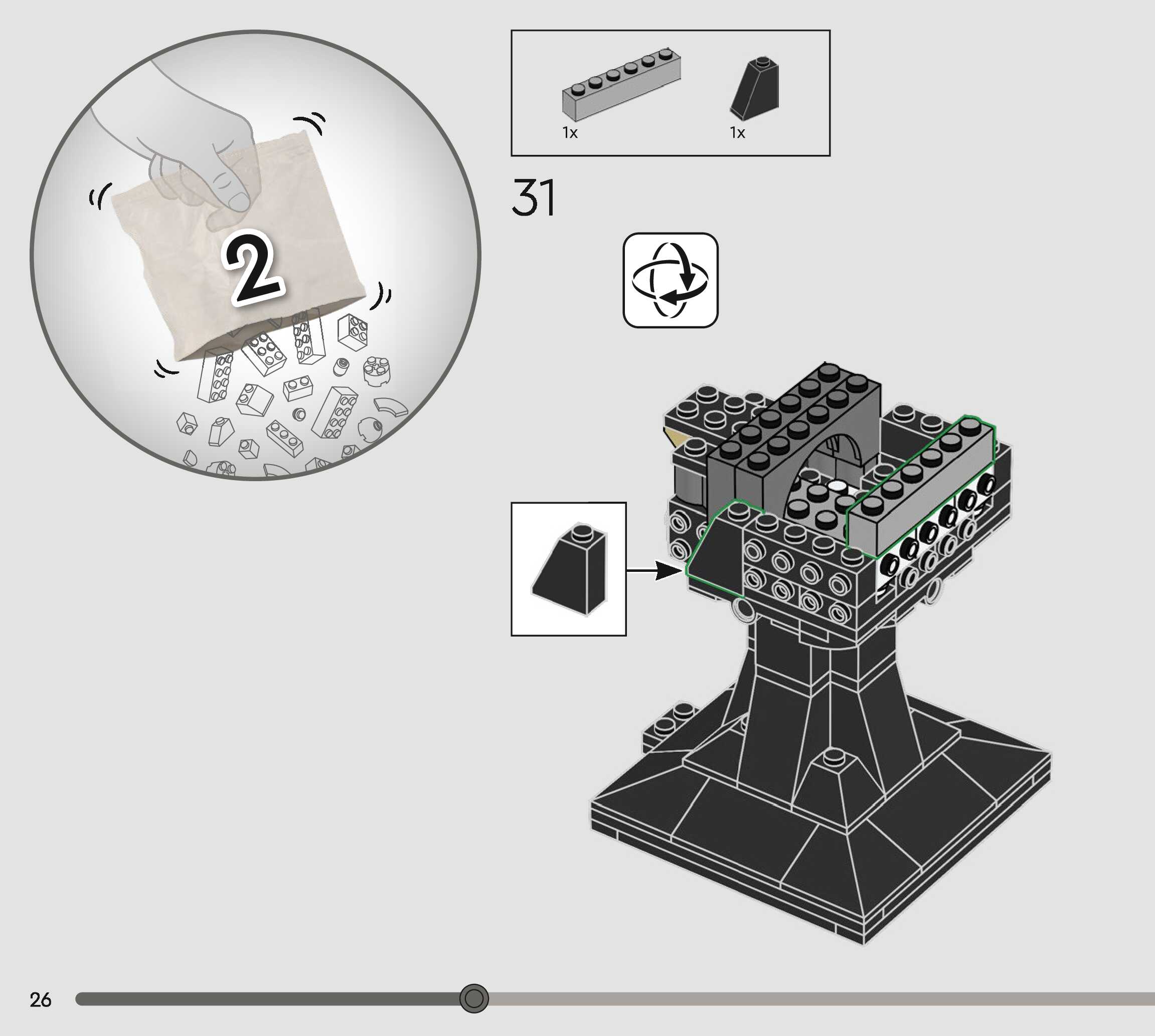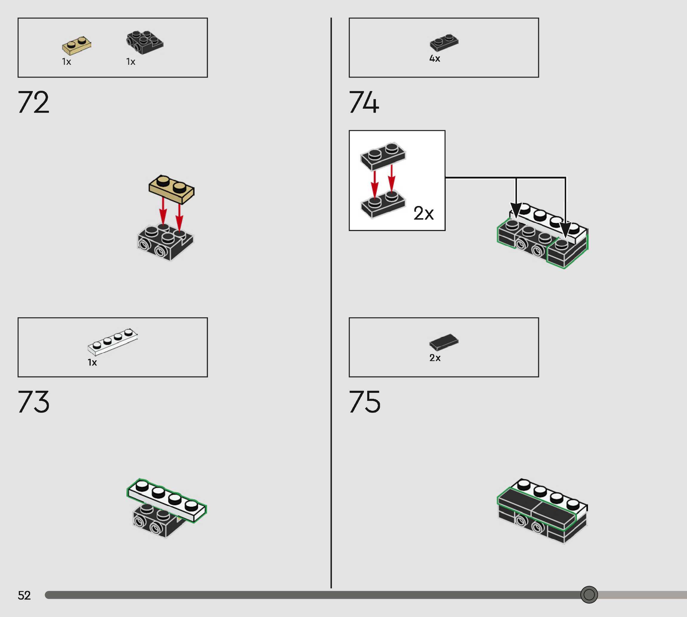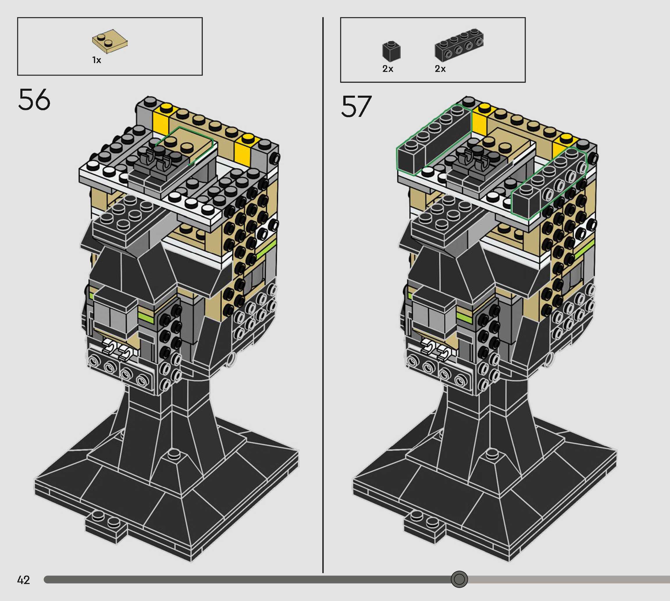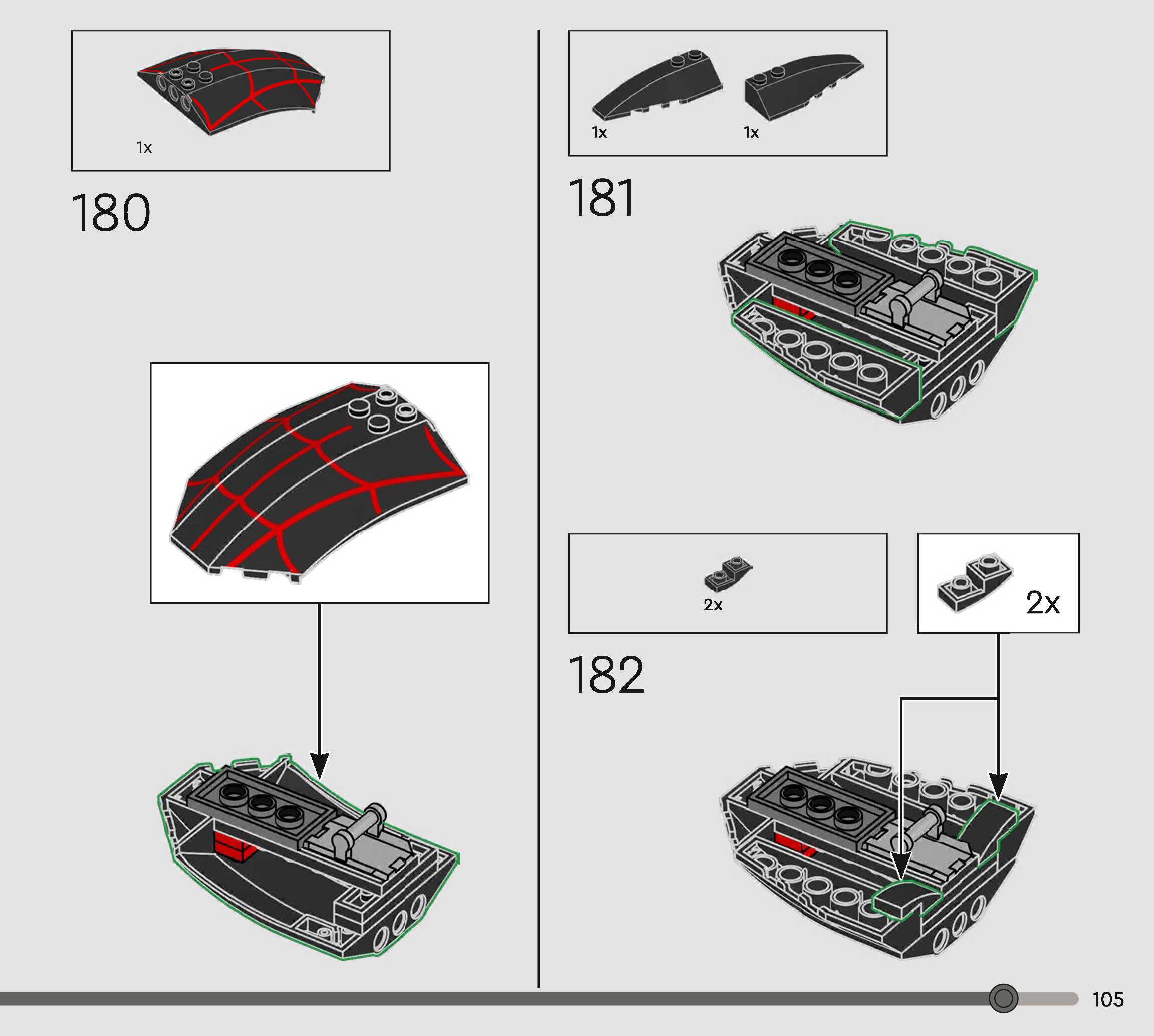 The assembly guide is prepared in a very understandable way for children and adult LEGO enthusiasts. A total of 112 picture galleries are shown, explaining the step-by-step construction stages for 1 different structures.