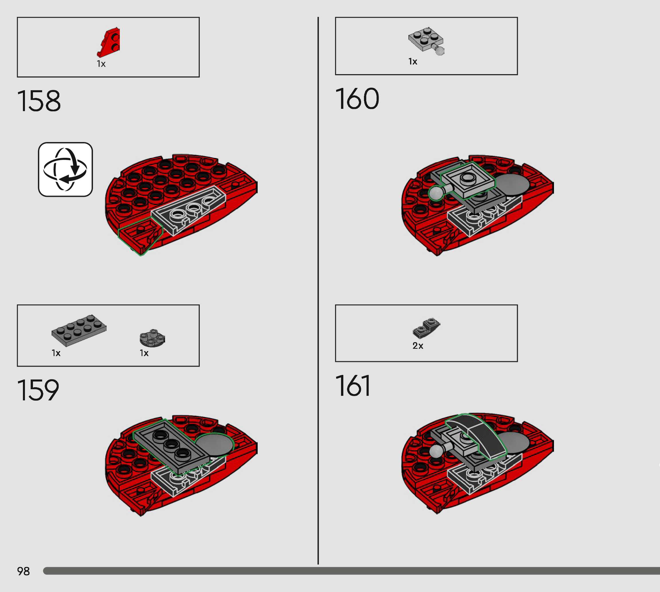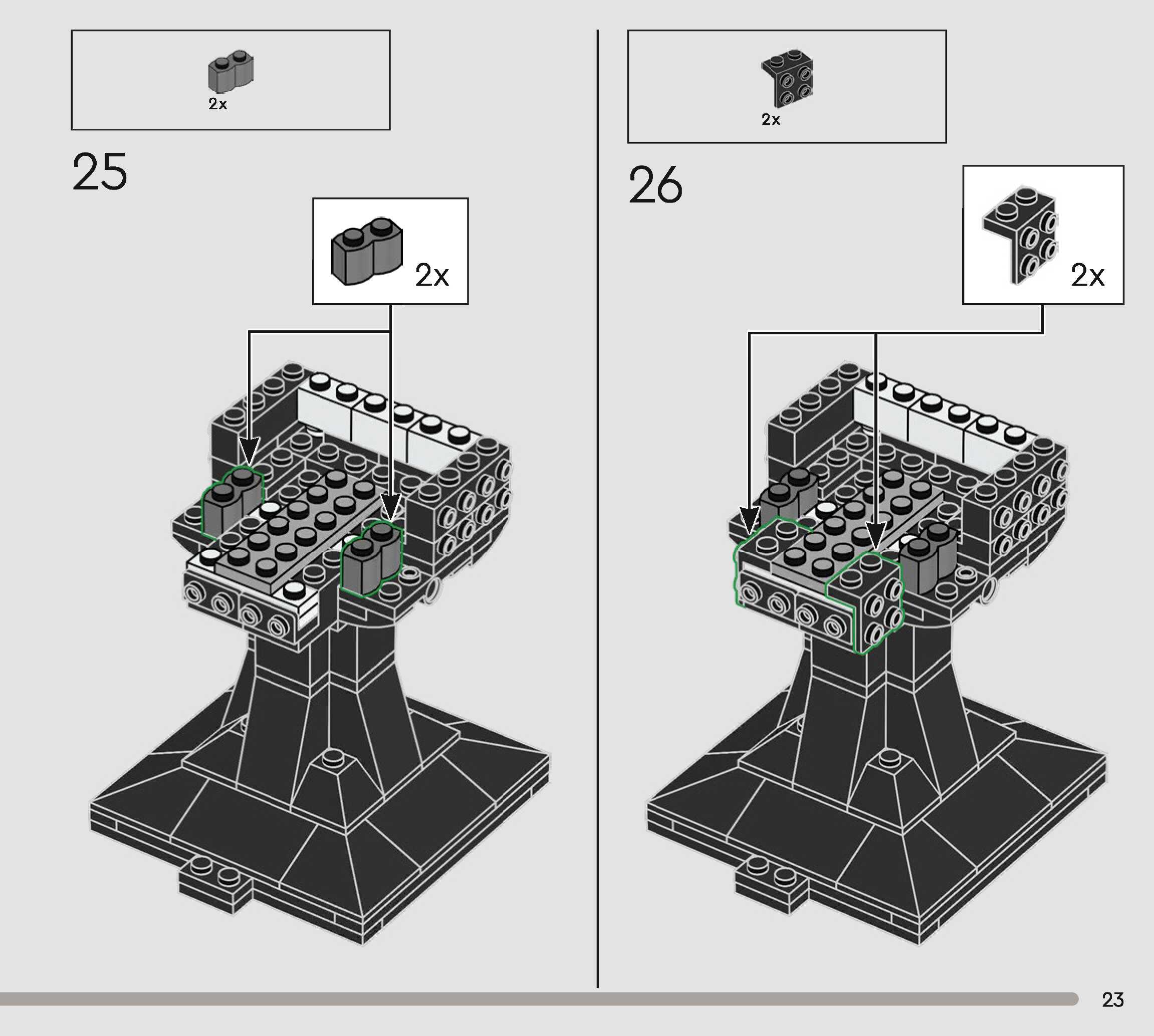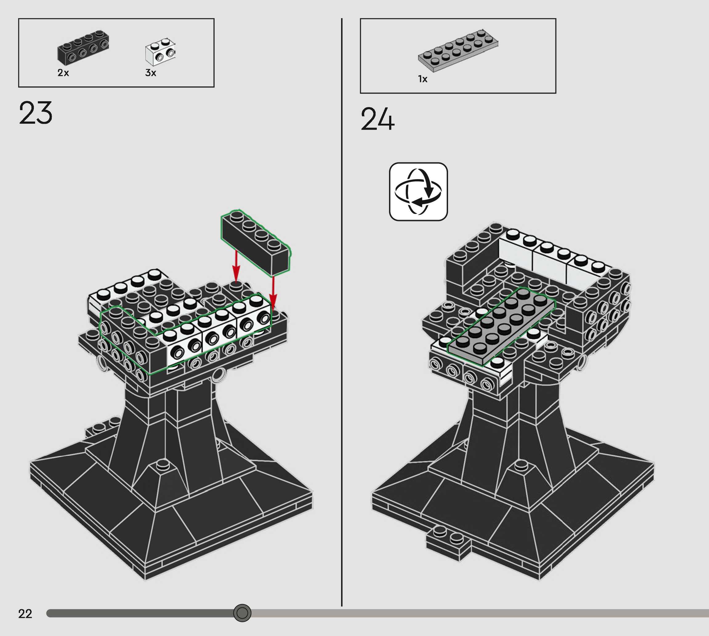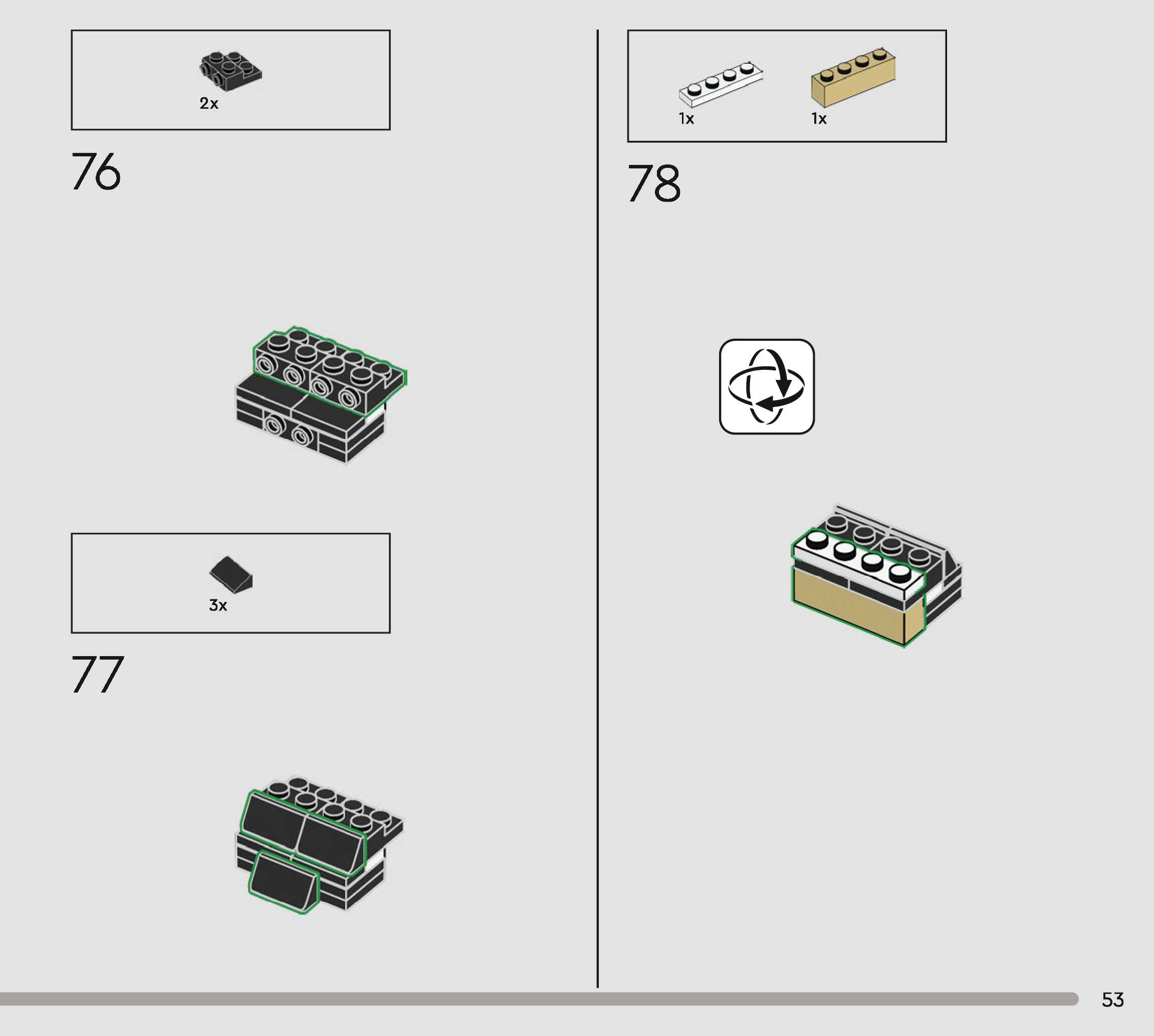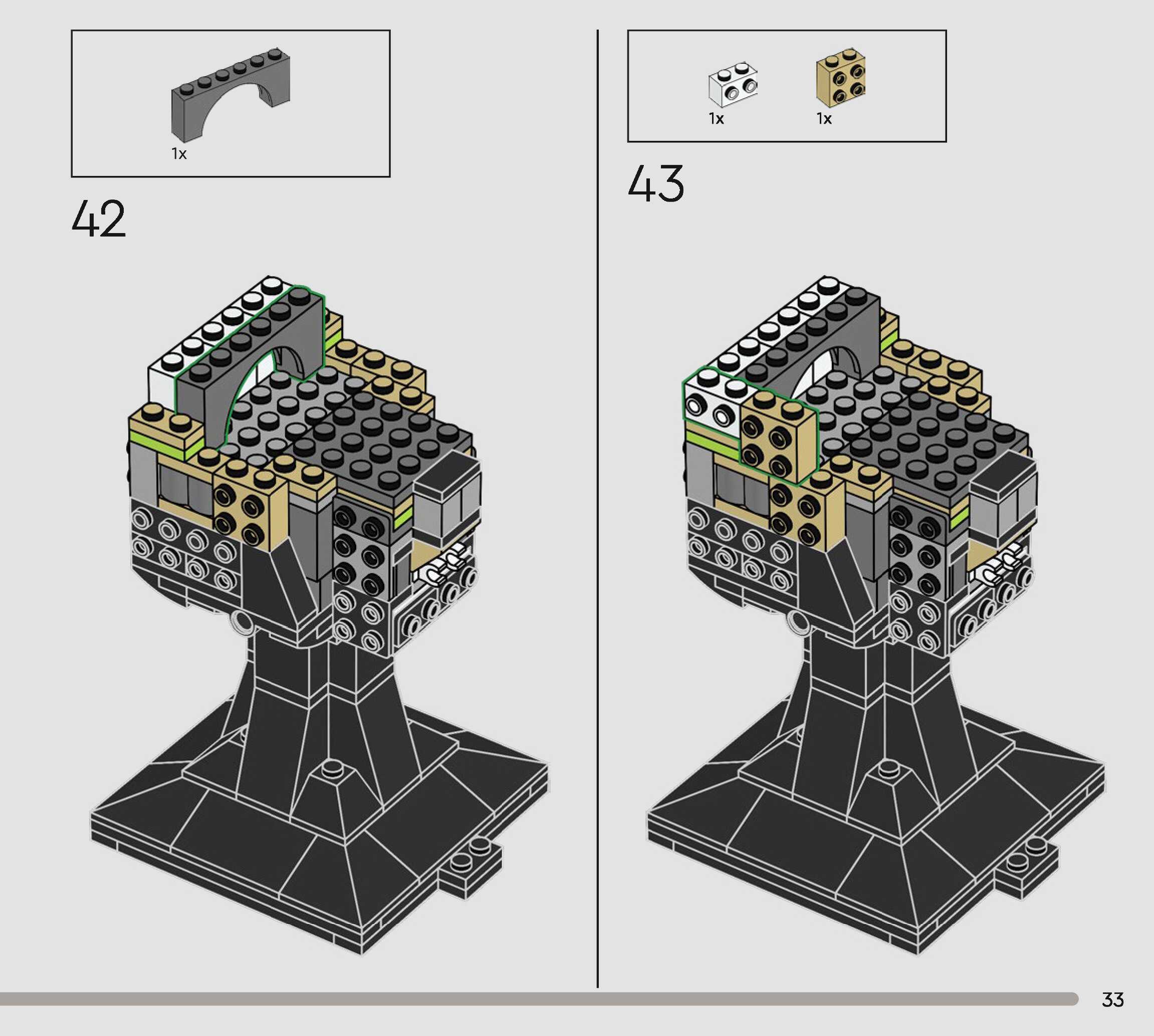 The assembly guide is prepared in a very understandable way for children and adult LEGO enthusiasts. A total of 112 picture galleries are shown, explaining the step-by-step construction stages for 1 different structures.
