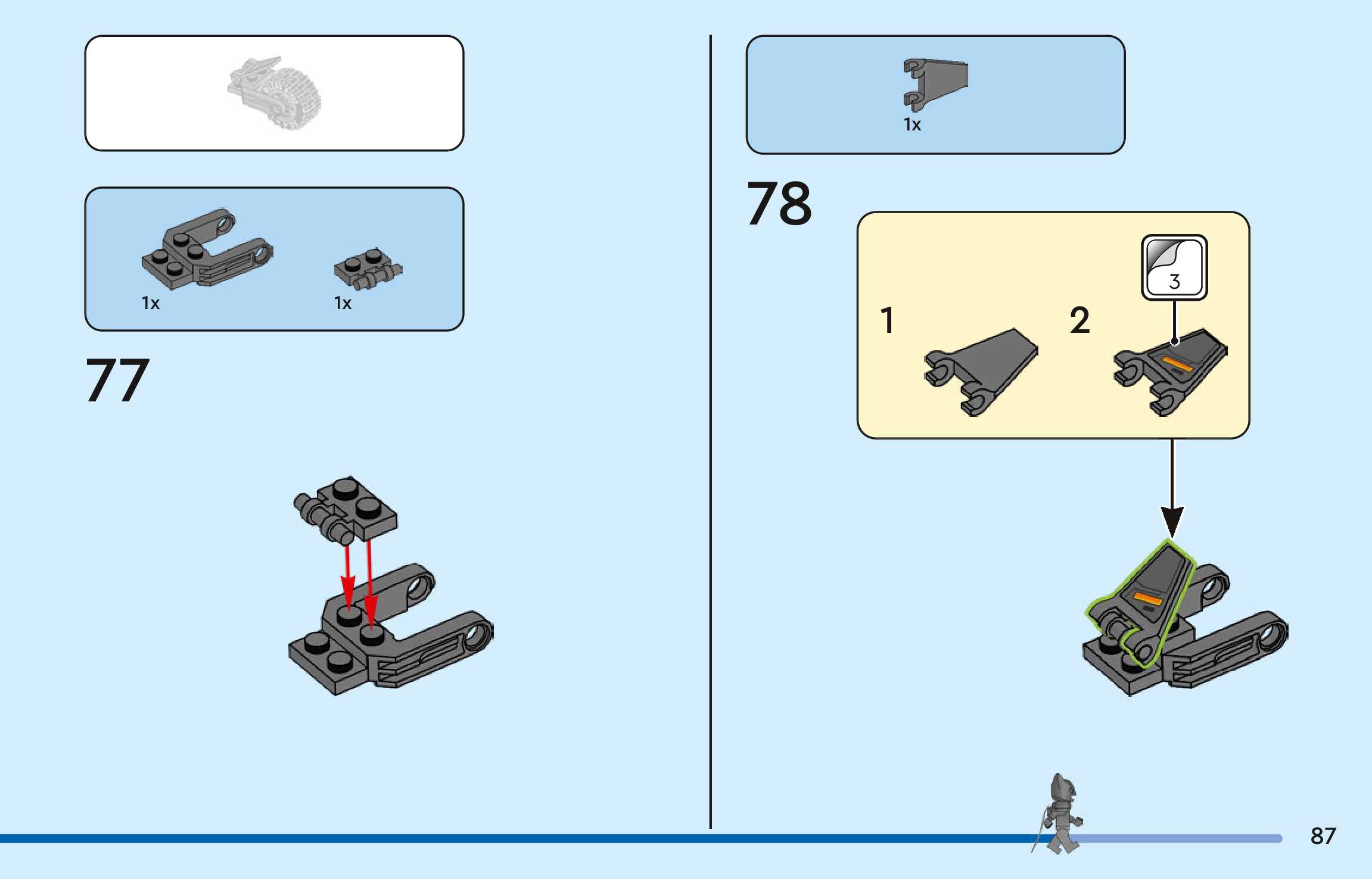 The assembly guide is prepared in a very understandable way for children and adult LEGO enthusiasts. A total of 100 picture galleries are shown, explaining the step-by-step construction stages for 1 different structures.