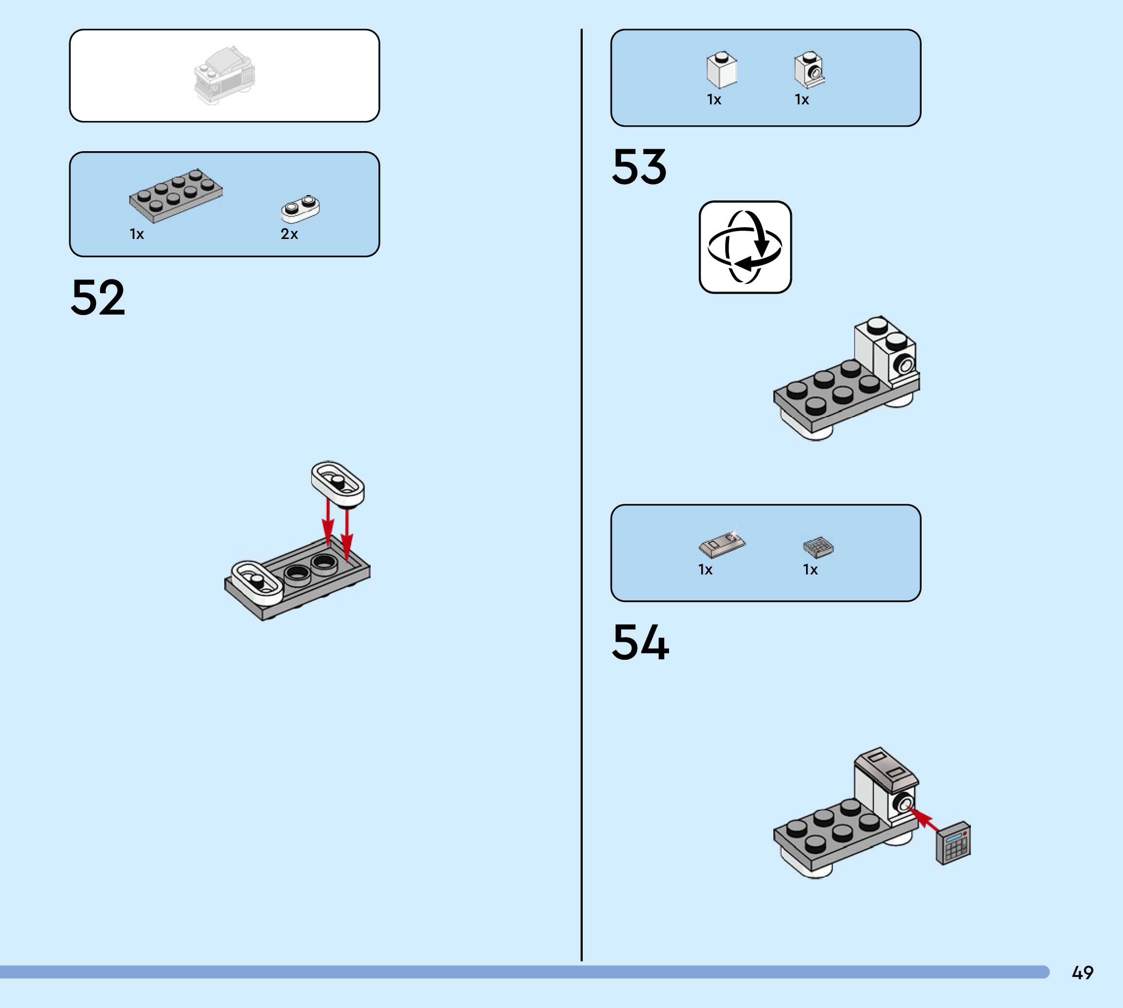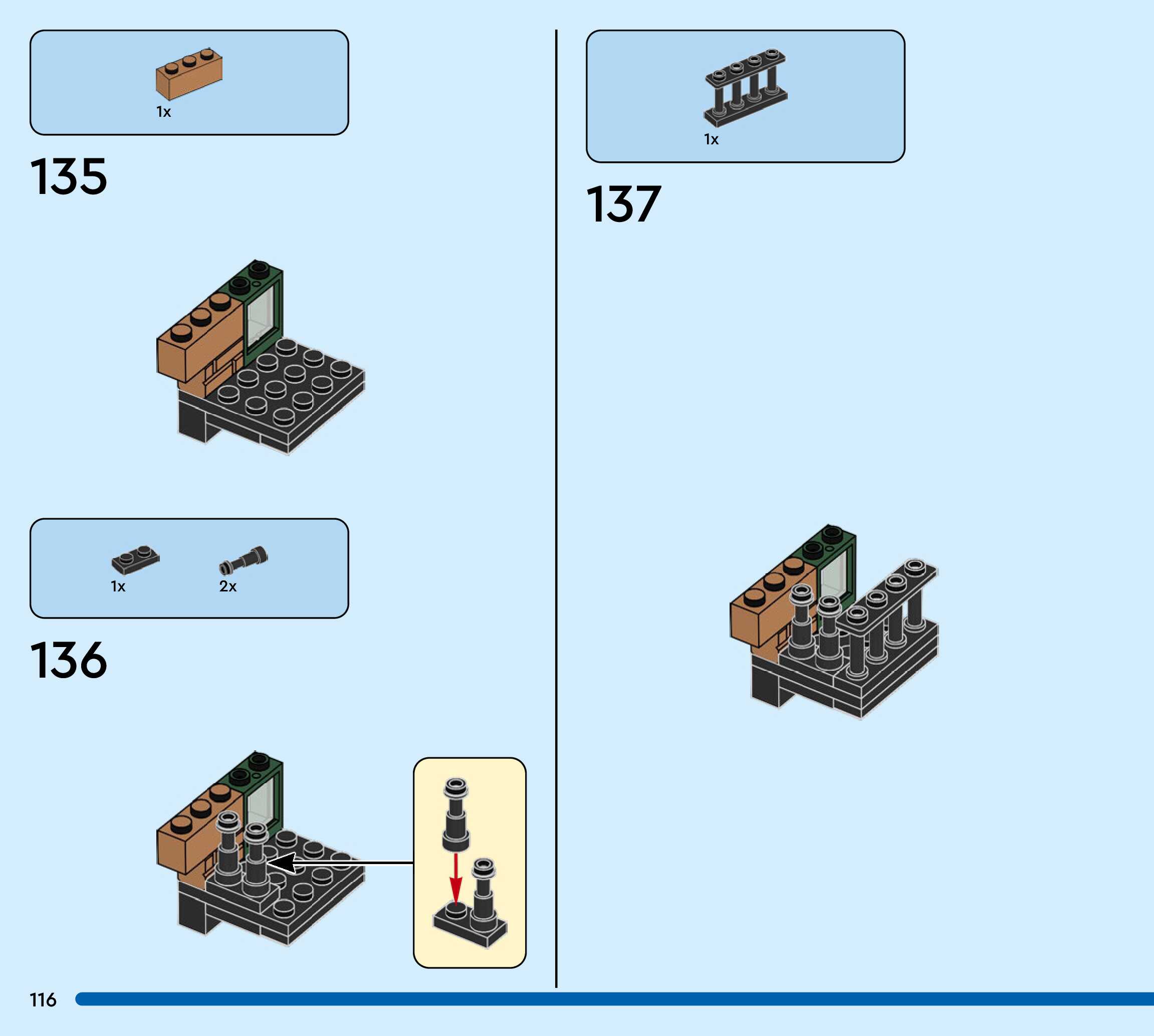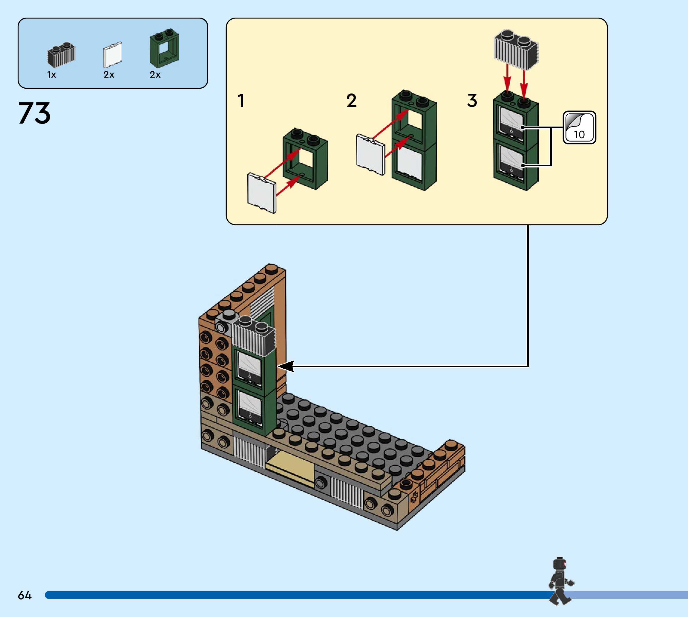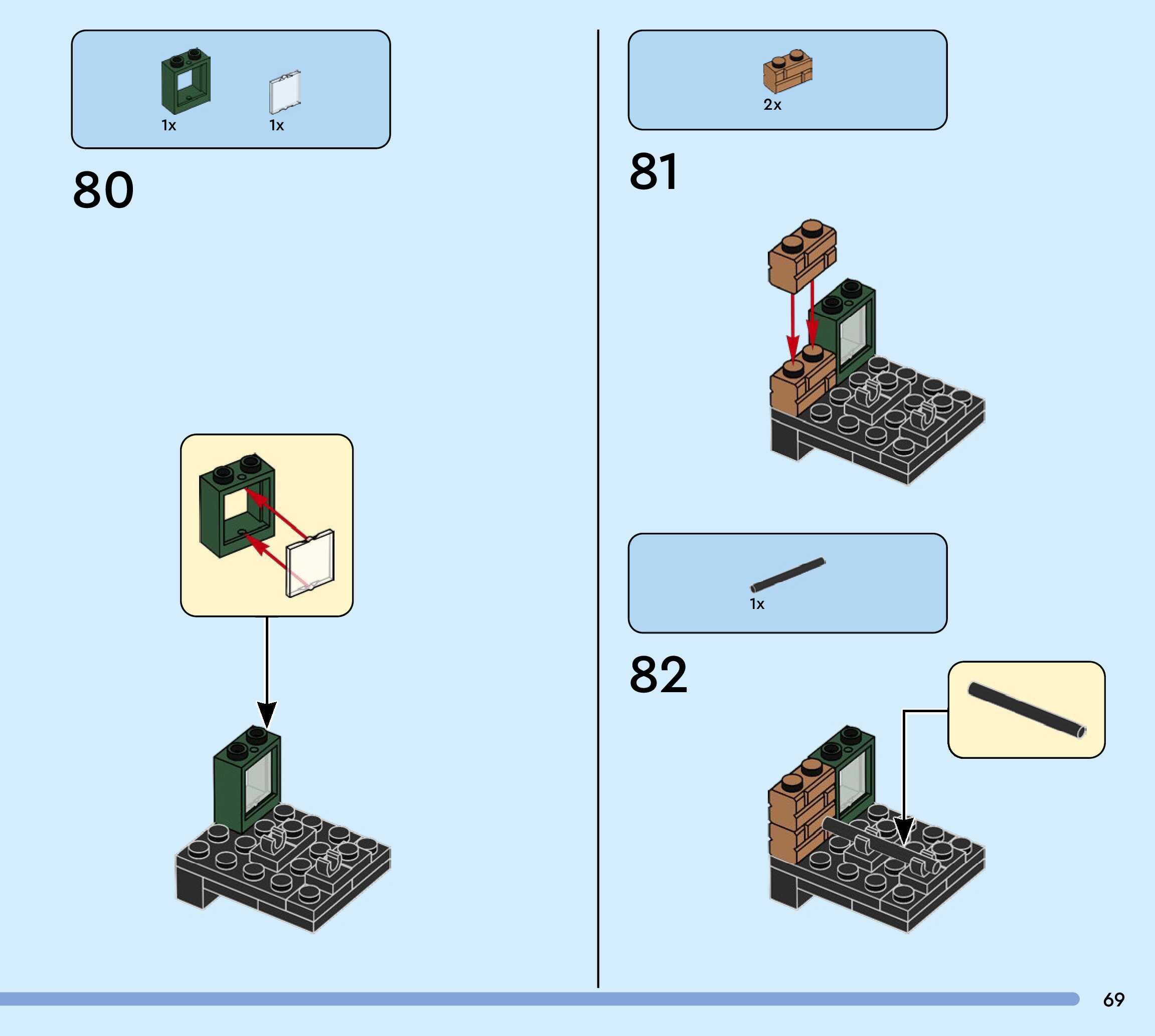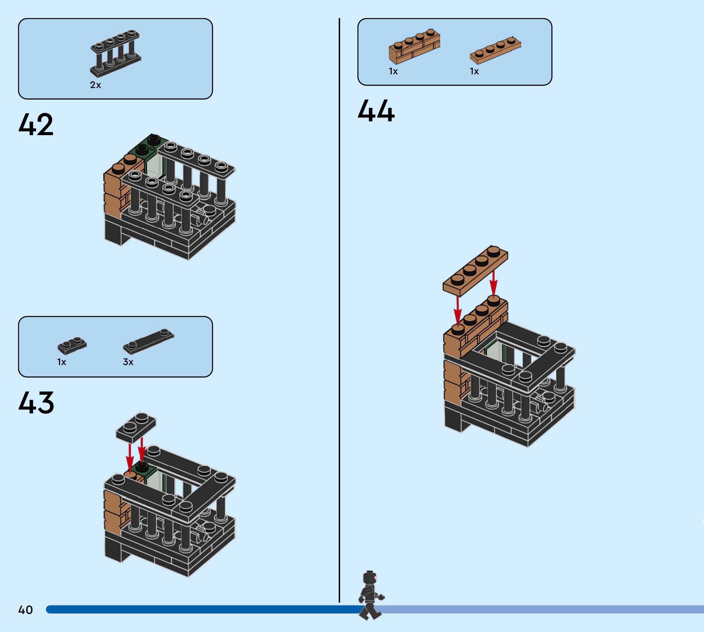 The assembly guide is prepared in a very understandable way for children and adult LEGO enthusiasts. A total of 244 picture galleries are shown, explaining the step-by-step construction stages for 3 different structures.