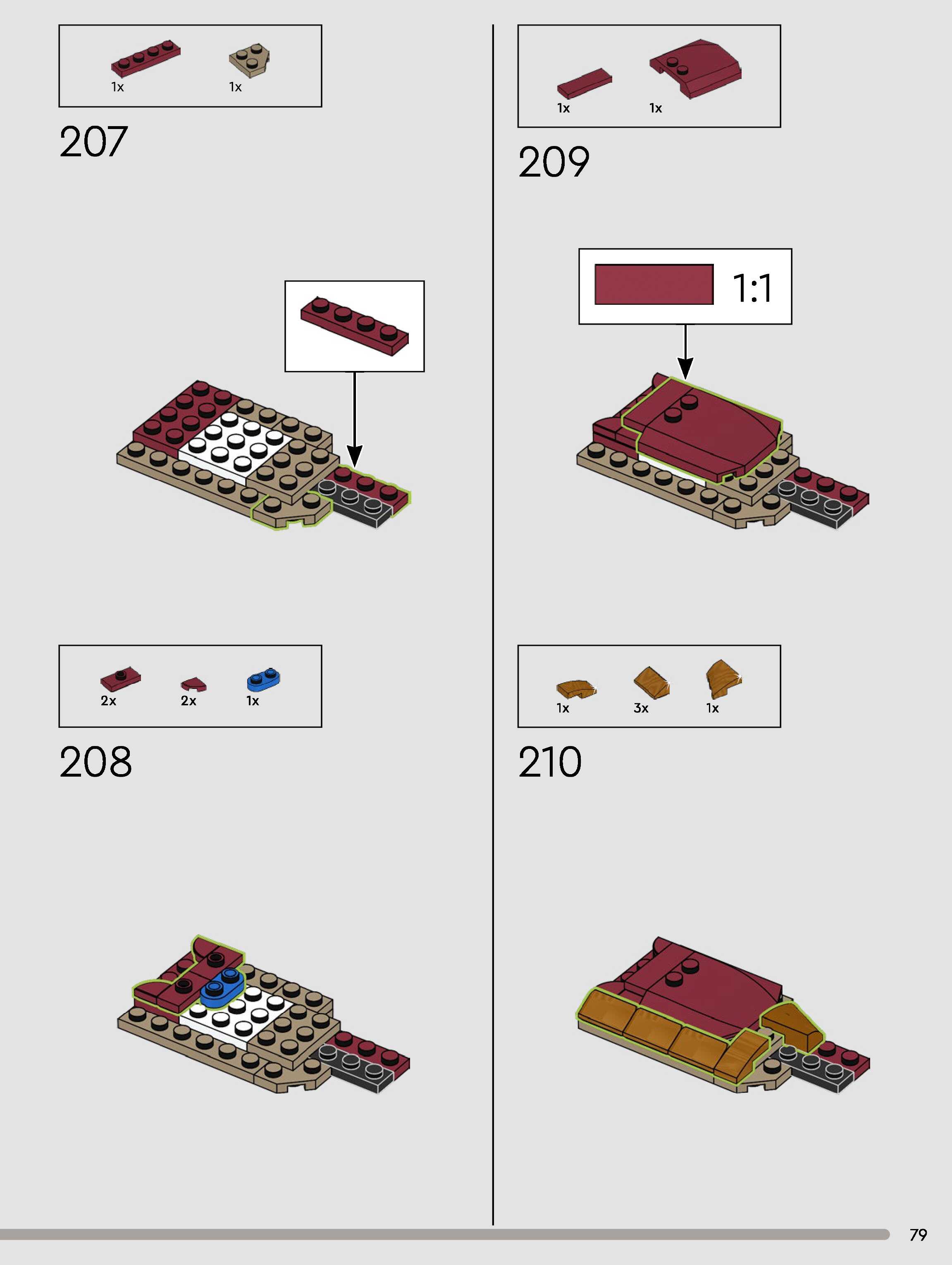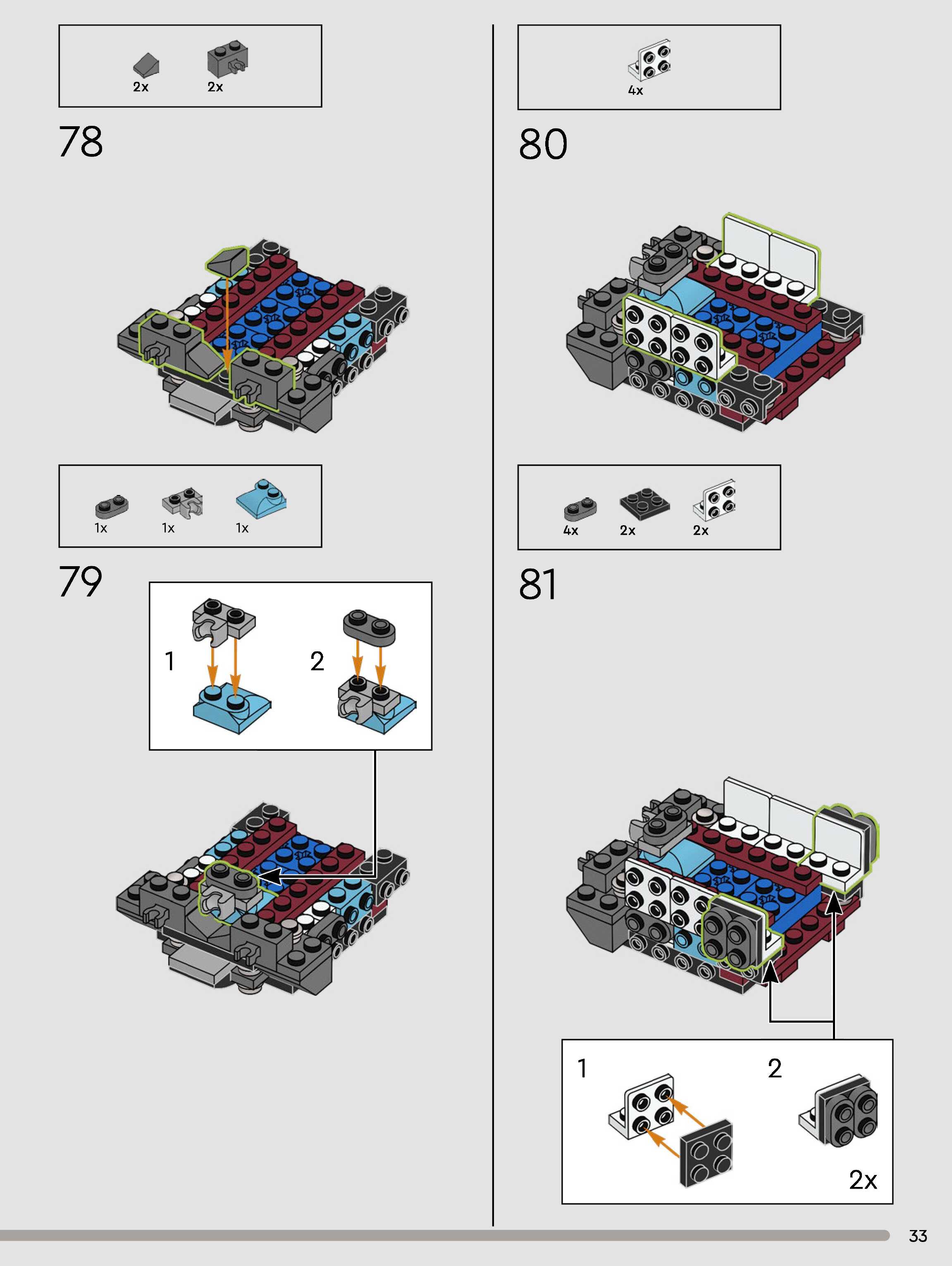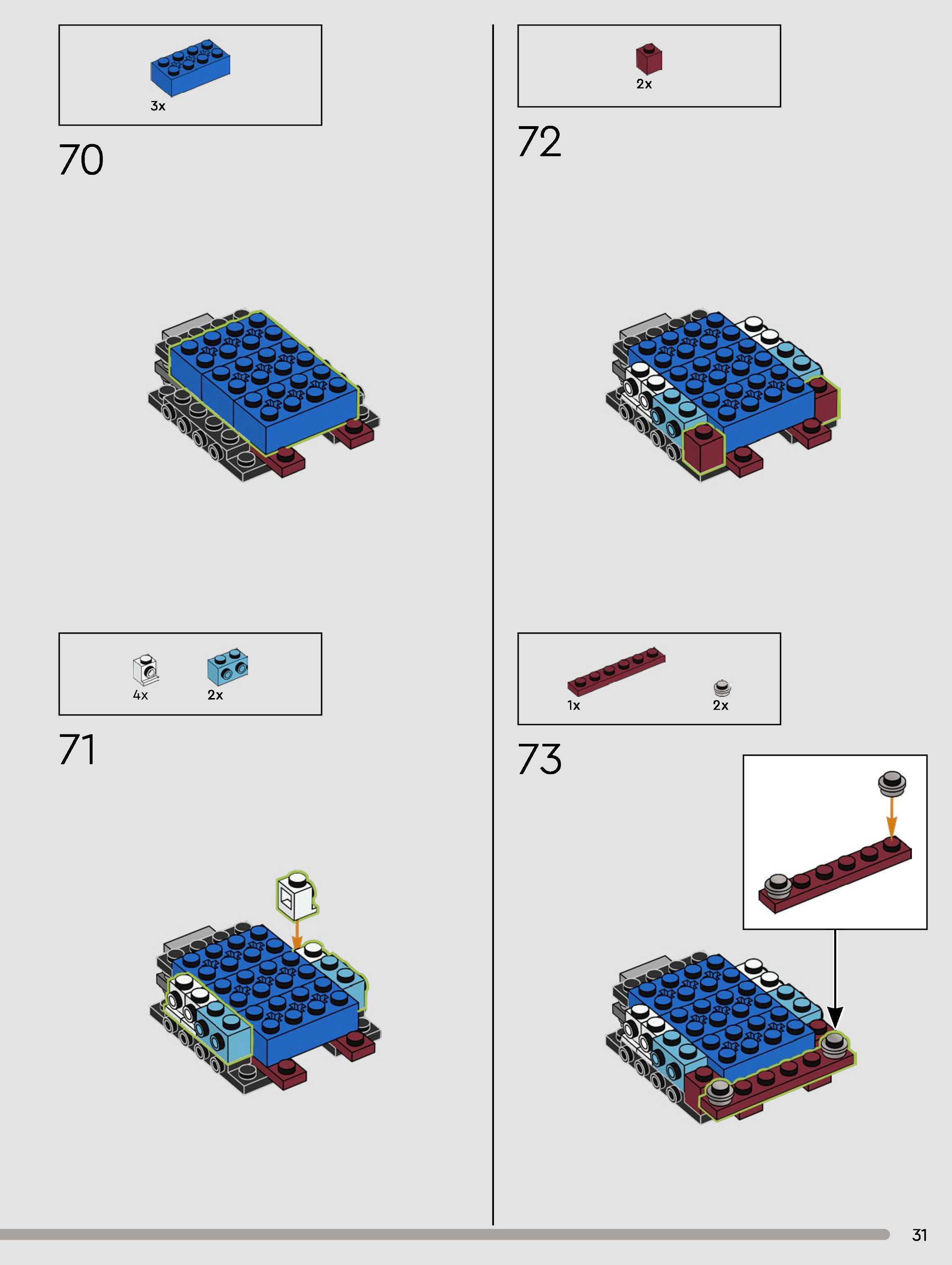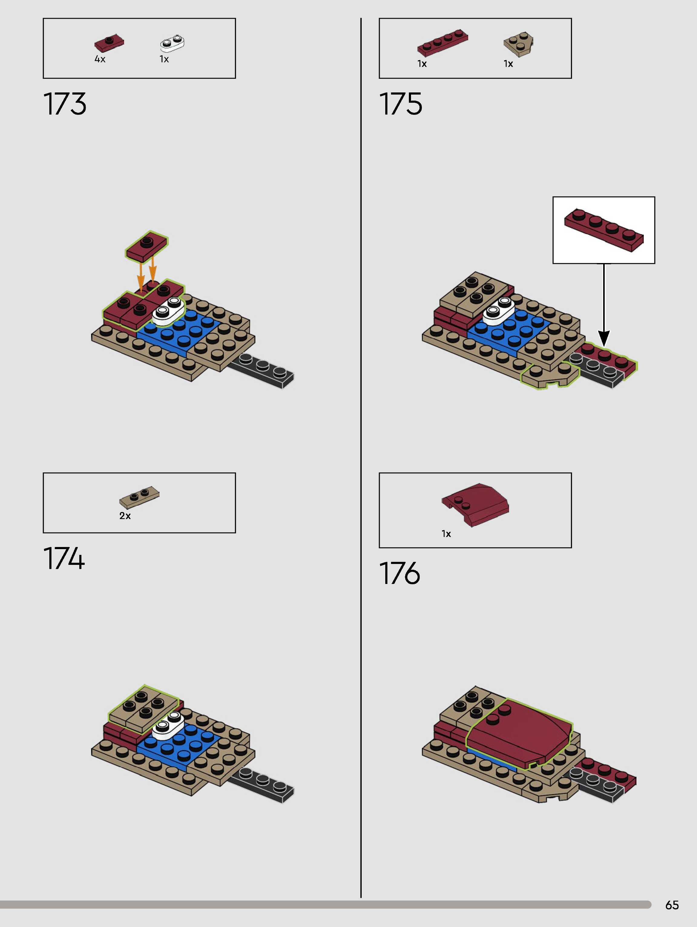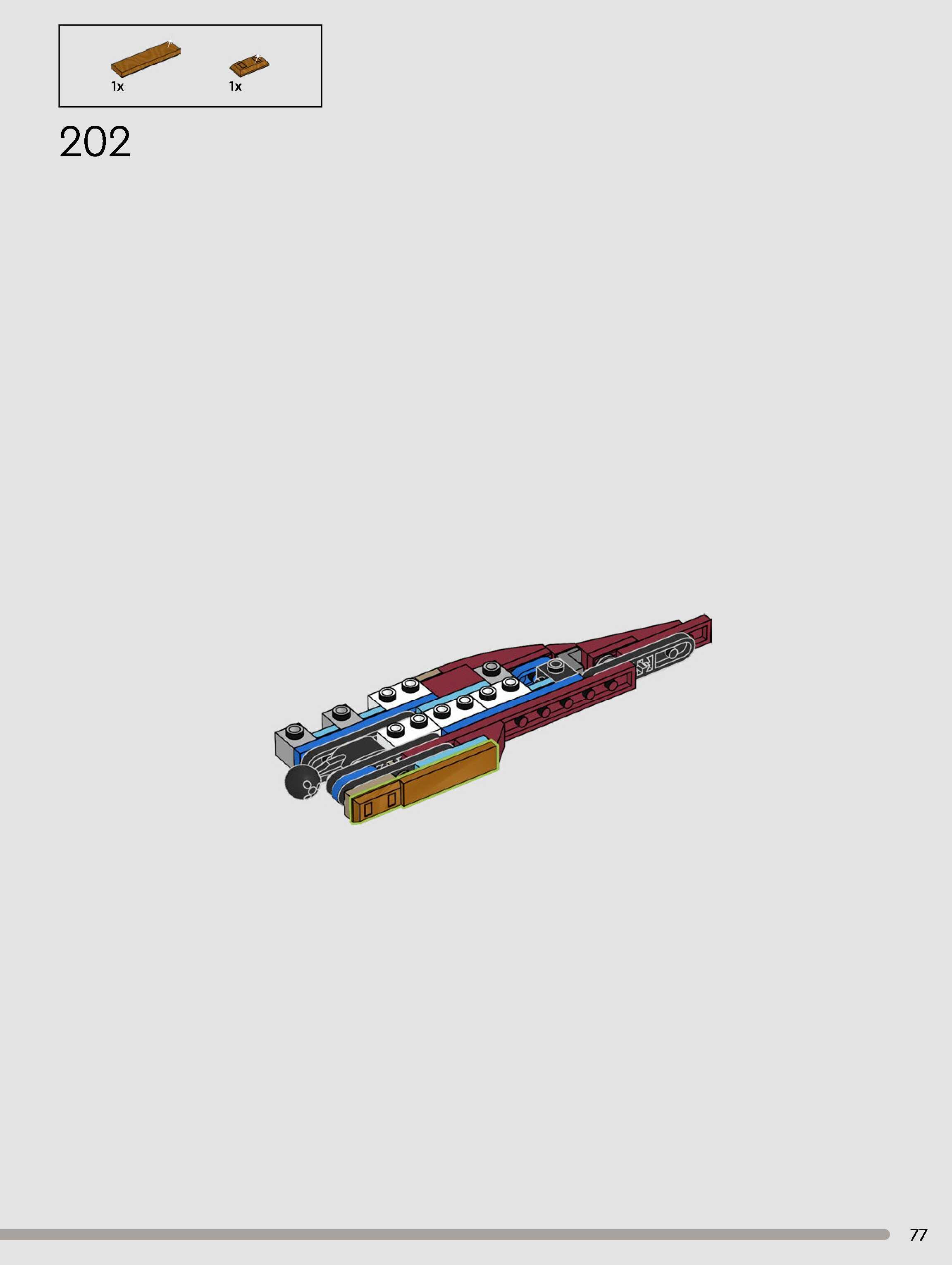 The assembly guide is prepared in a very understandable way for children and adult LEGO enthusiasts. A total of 180 picture galleries are shown, explaining the step-by-step construction stages for 1 different structures.