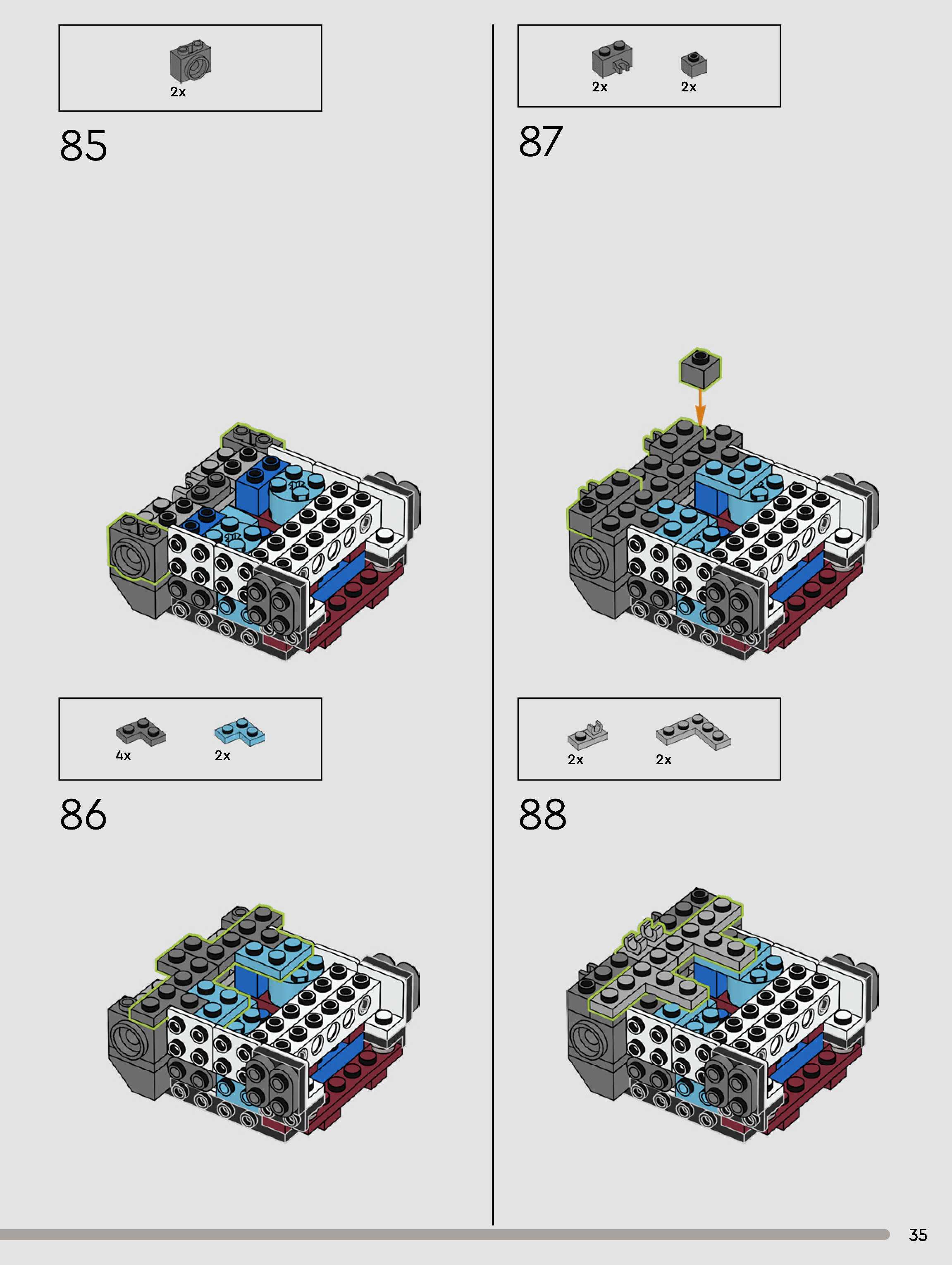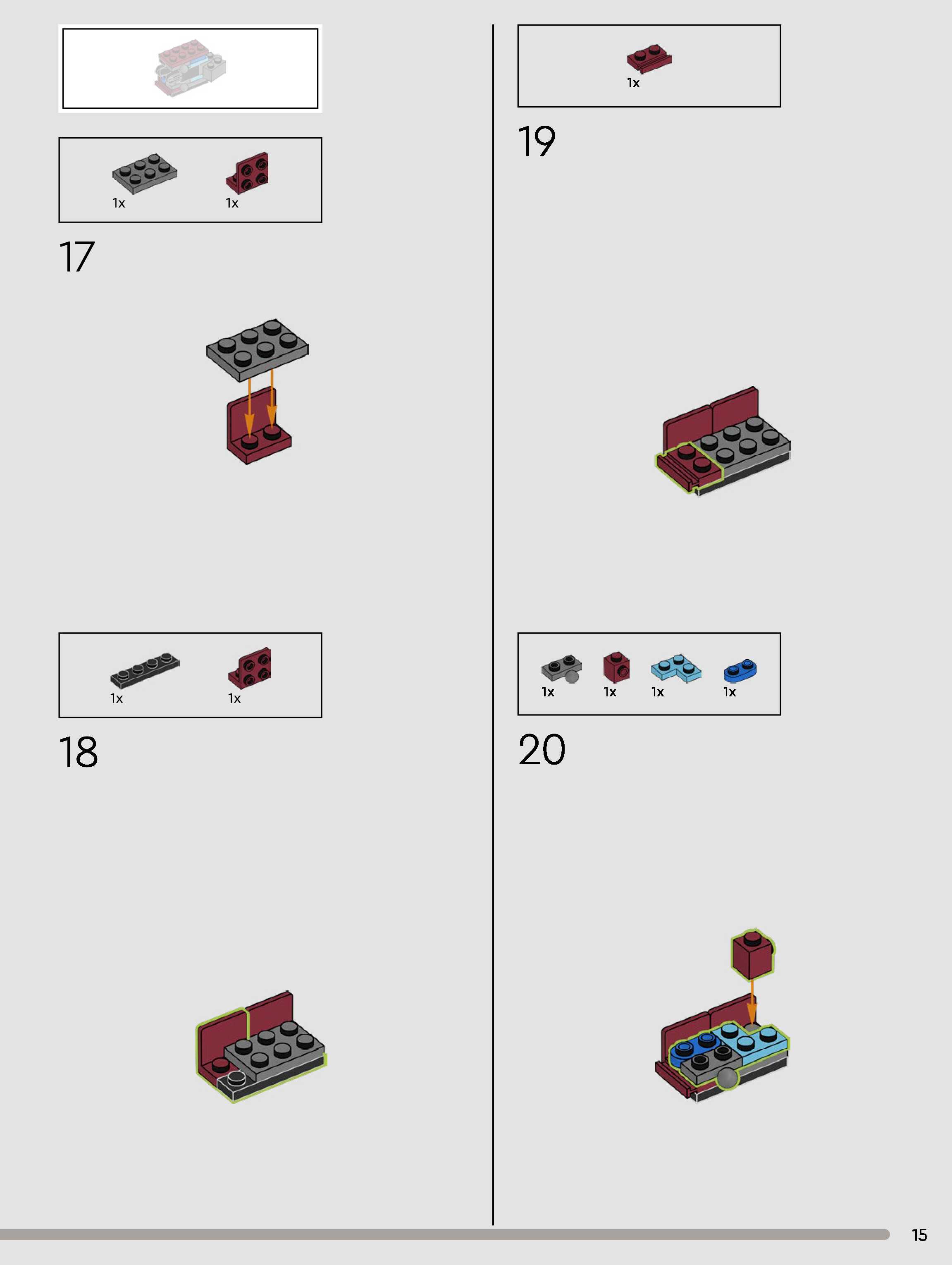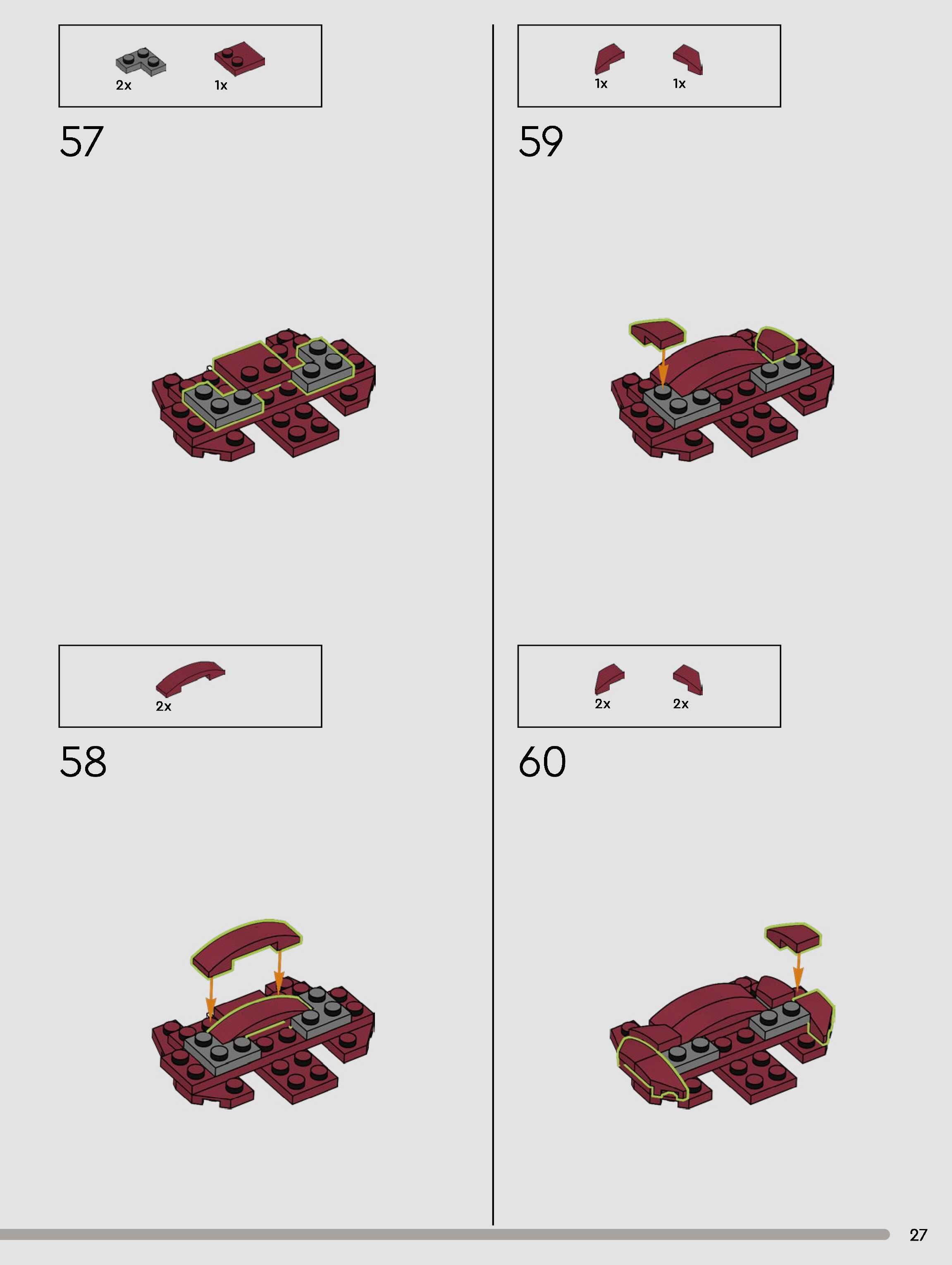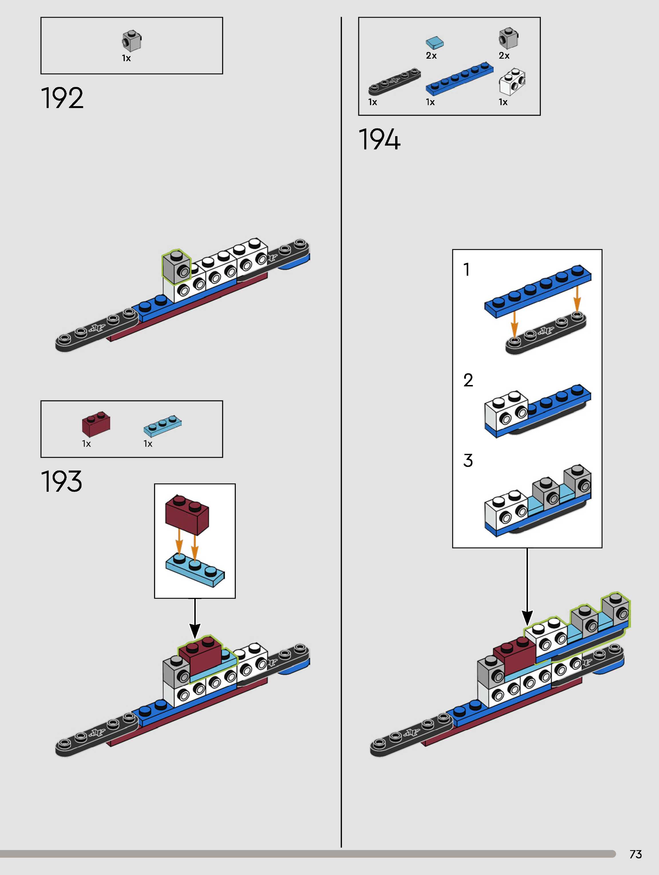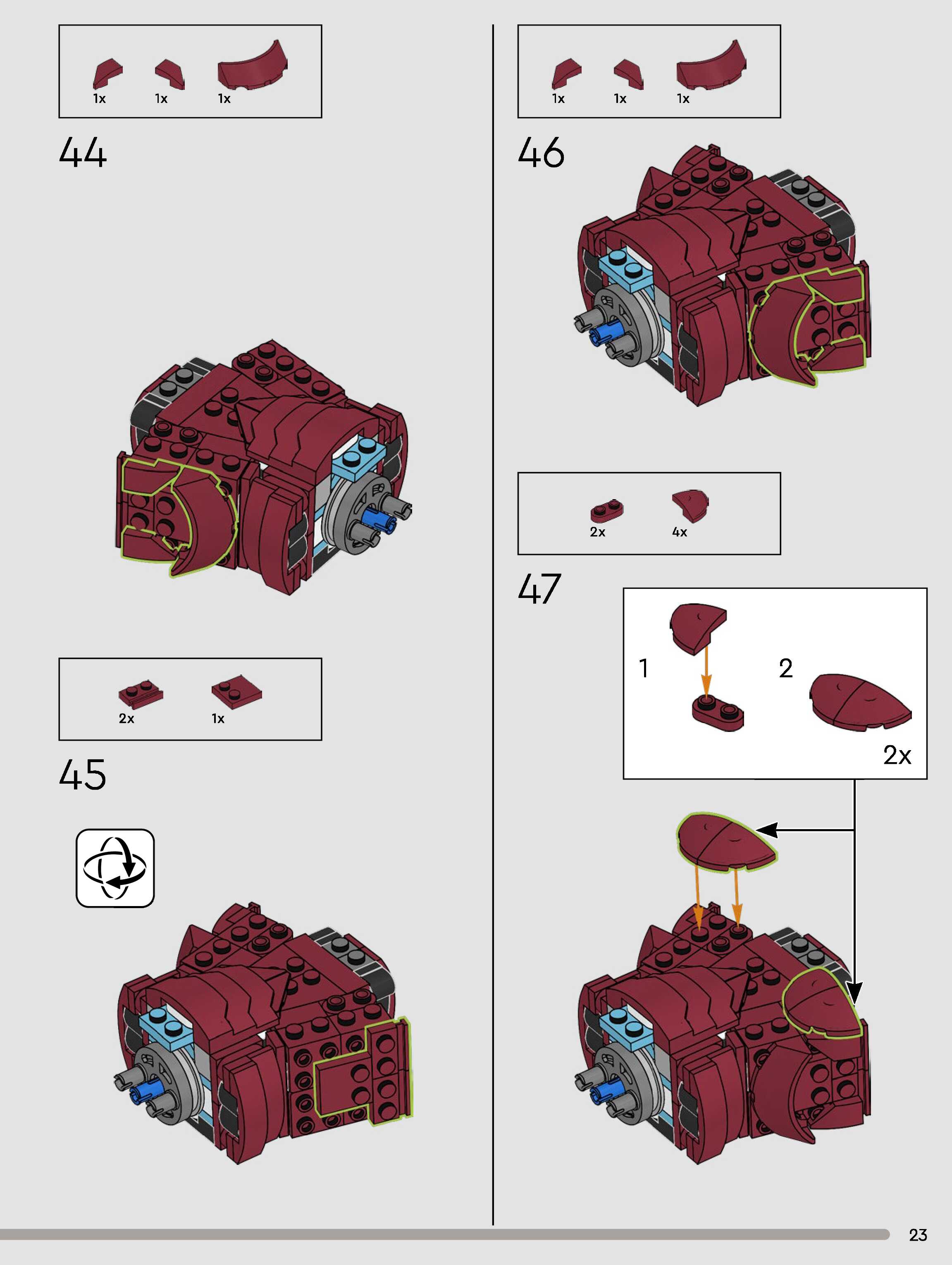 The assembly guide is prepared in a very understandable way for children and adult LEGO enthusiasts. A total of 180 picture galleries are shown, explaining the step-by-step construction stages for 1 different structures.