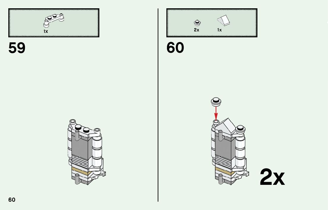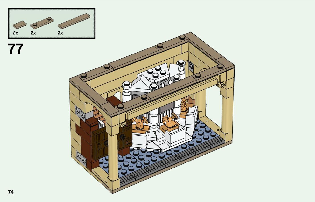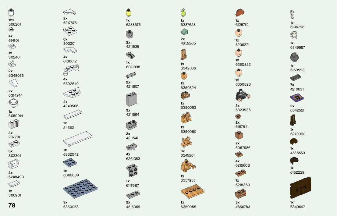 The assembly guide is prepared in a very understandable way for children and adult LEGO enthusiasts. A total of 80 picture galleries are shown, explaining the step-by-step construction stages for 1 different structures.