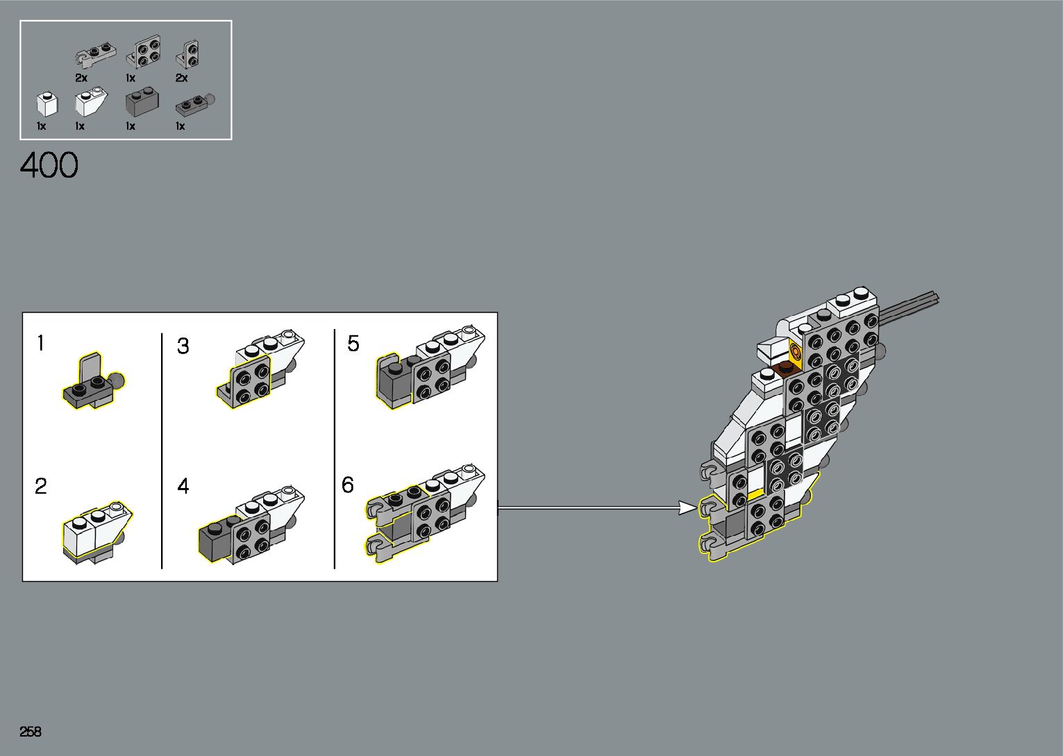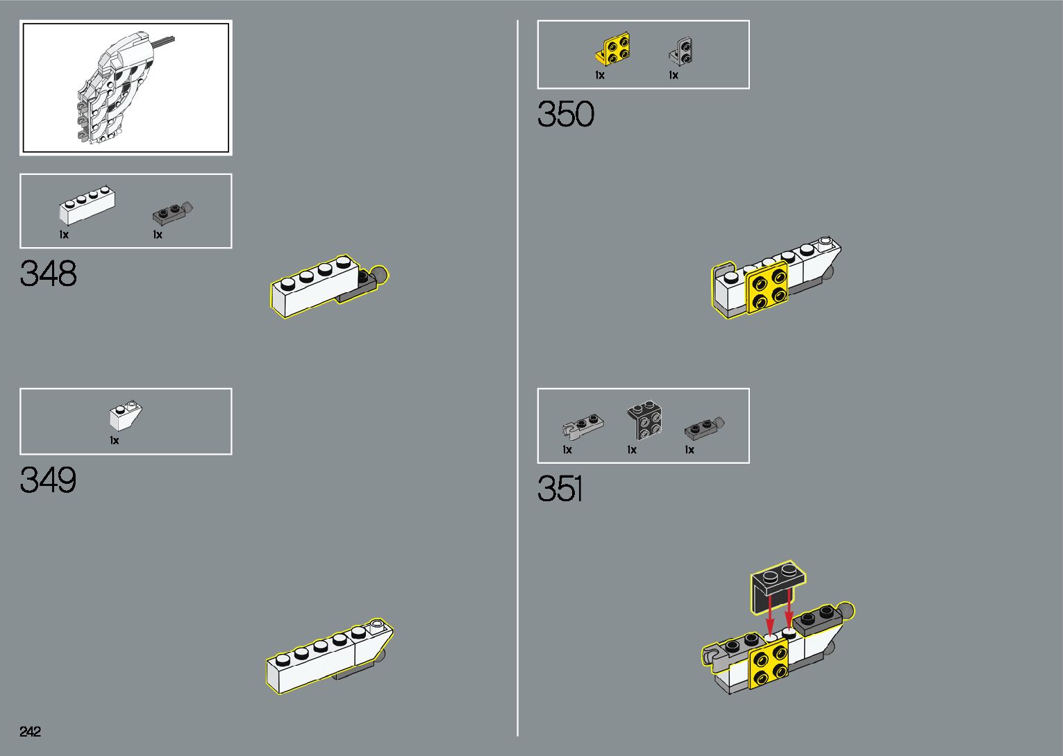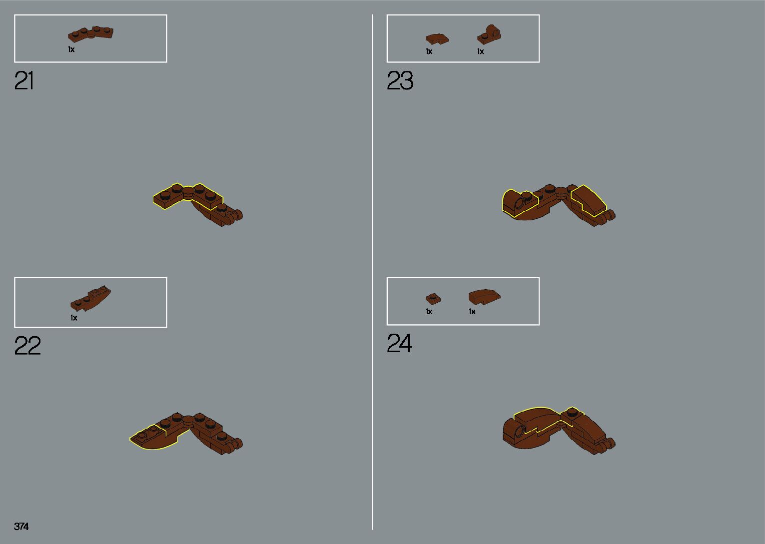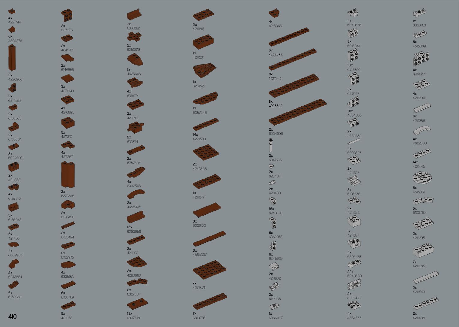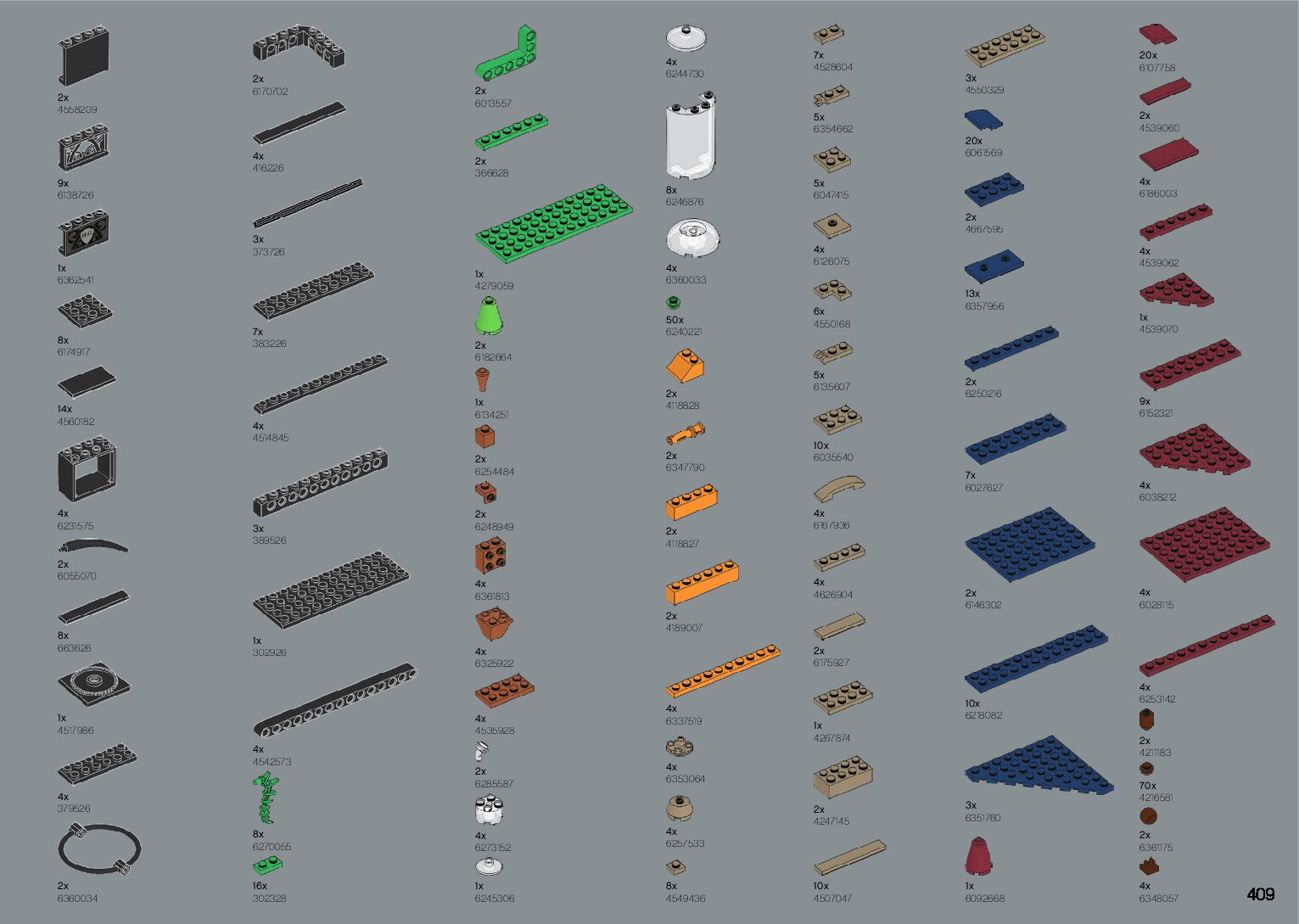 The assembly guide is prepared in a very understandable way for children and adult LEGO enthusiasts. A total of 412 picture galleries are shown, explaining the step-by-step construction stages for 1 different structures.