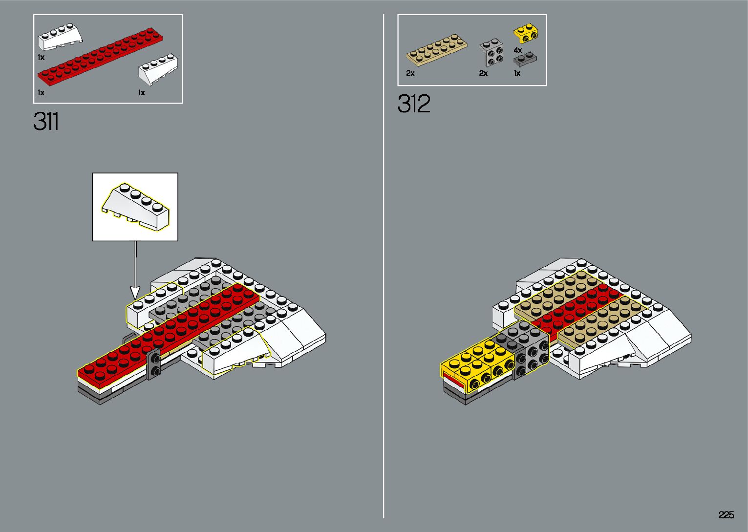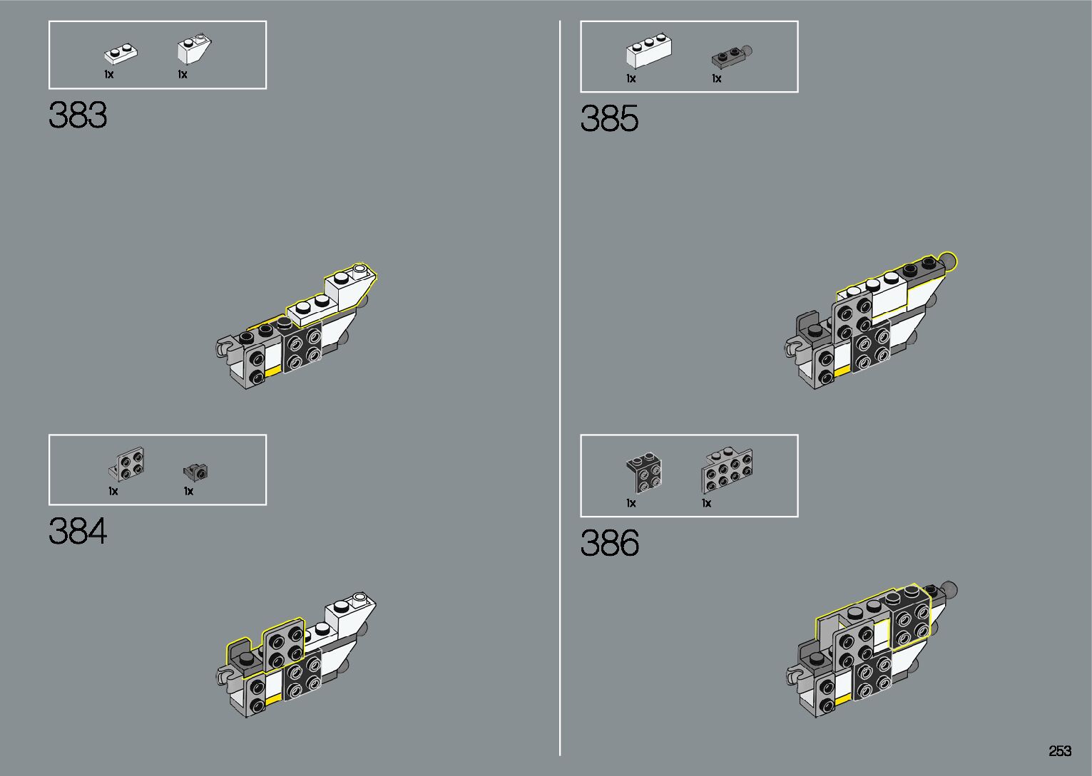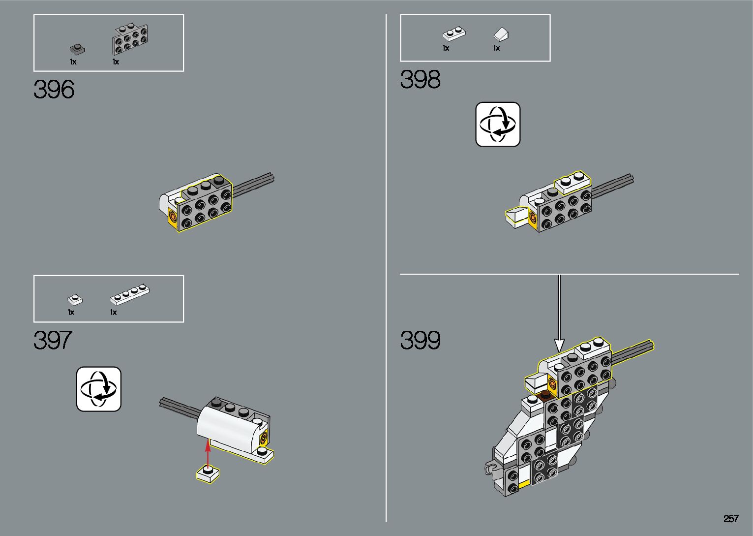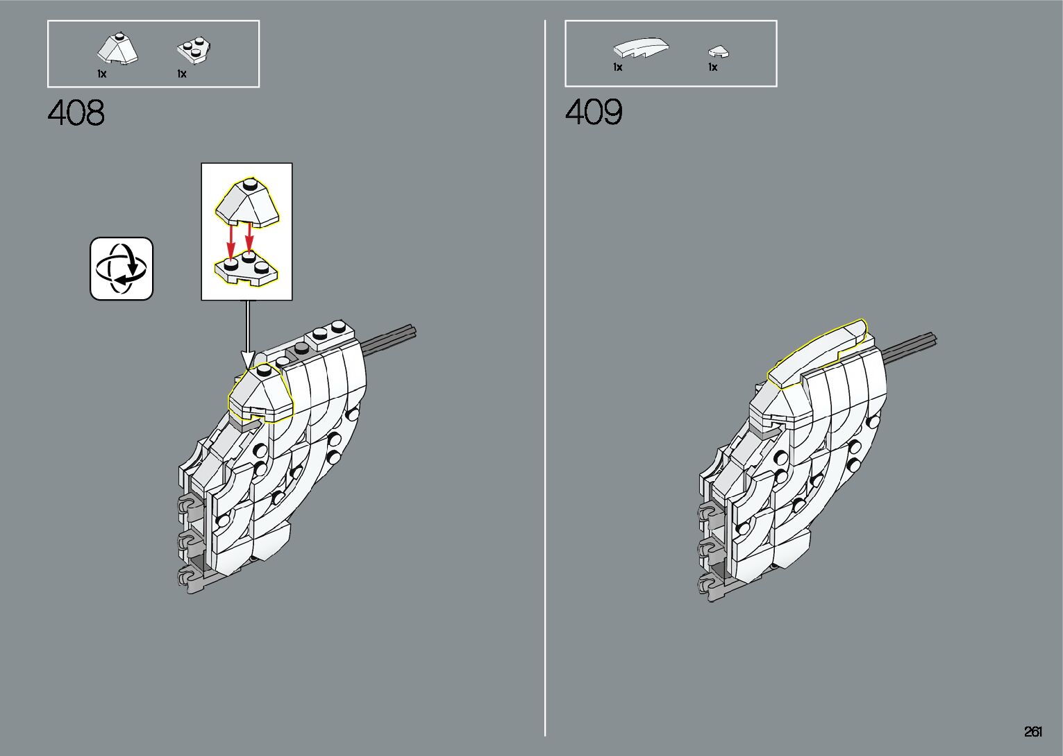 The assembly guide is prepared in a very understandable way for children and adult LEGO enthusiasts. A total of 412 picture galleries are shown, explaining the step-by-step construction stages for 1 different structures.