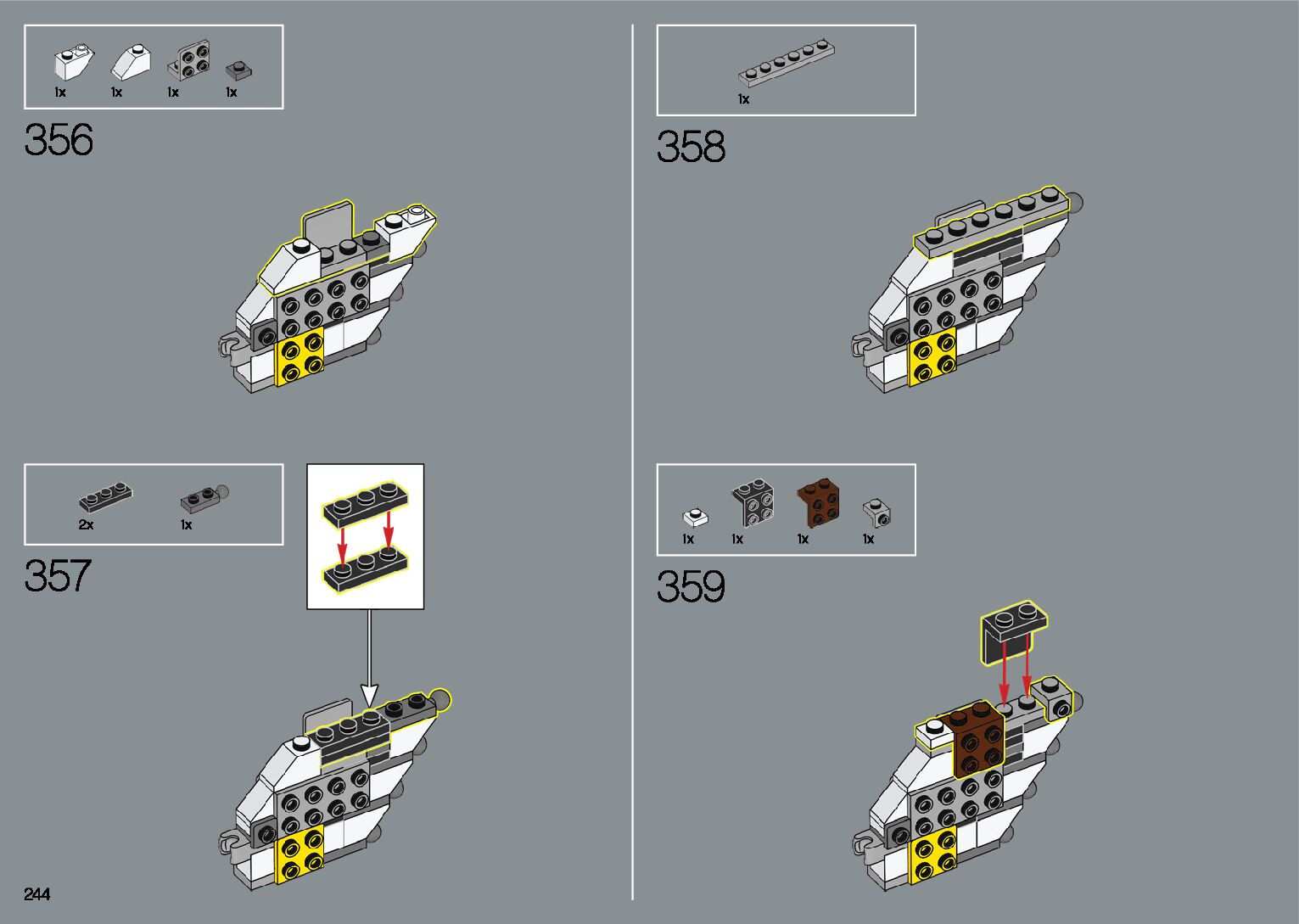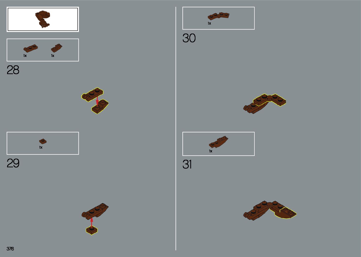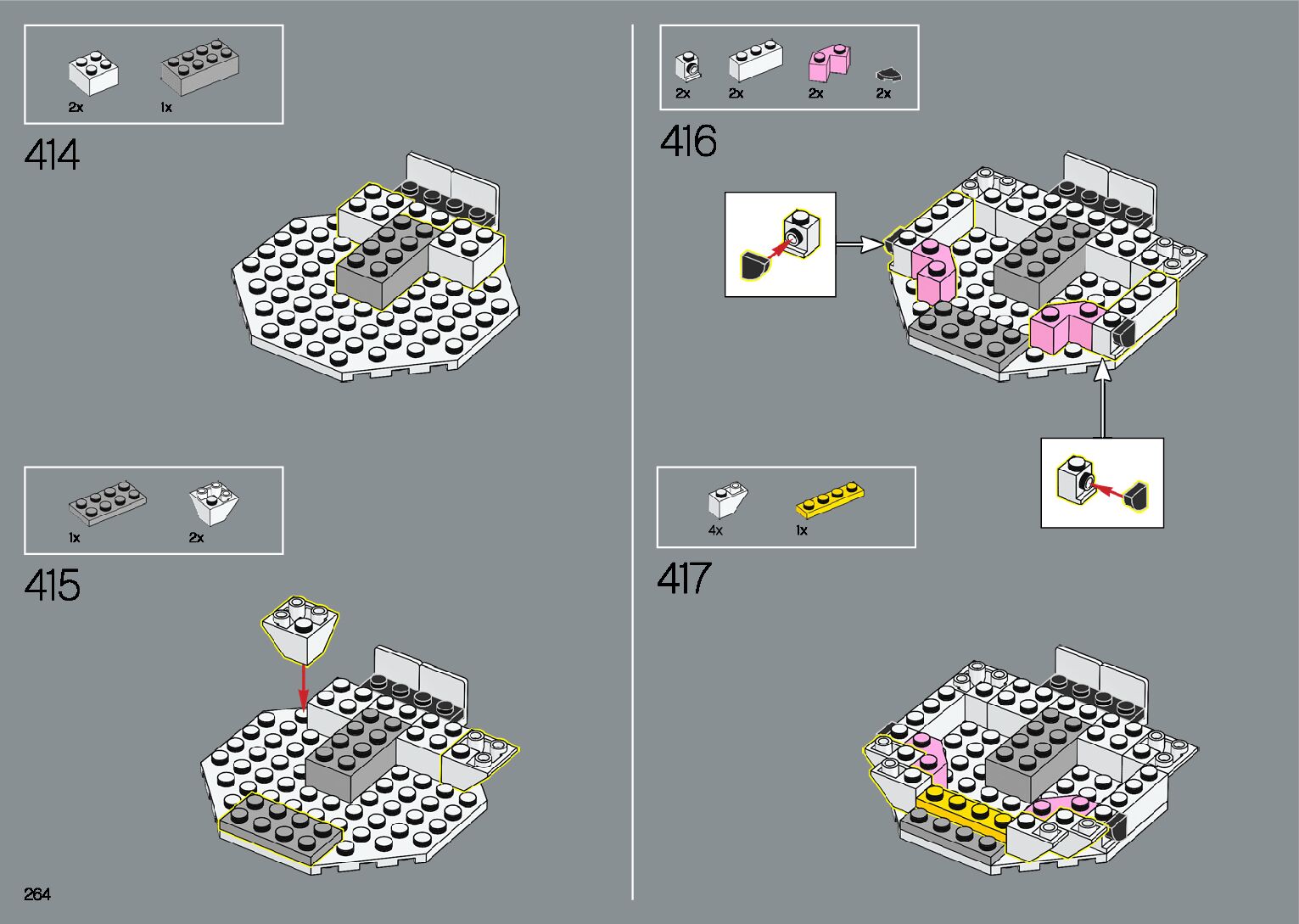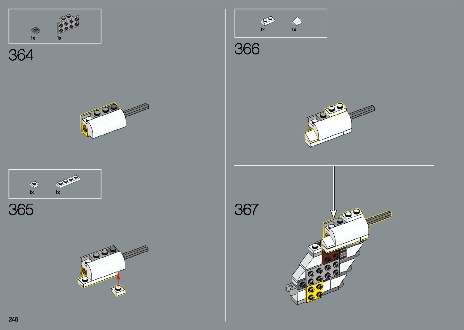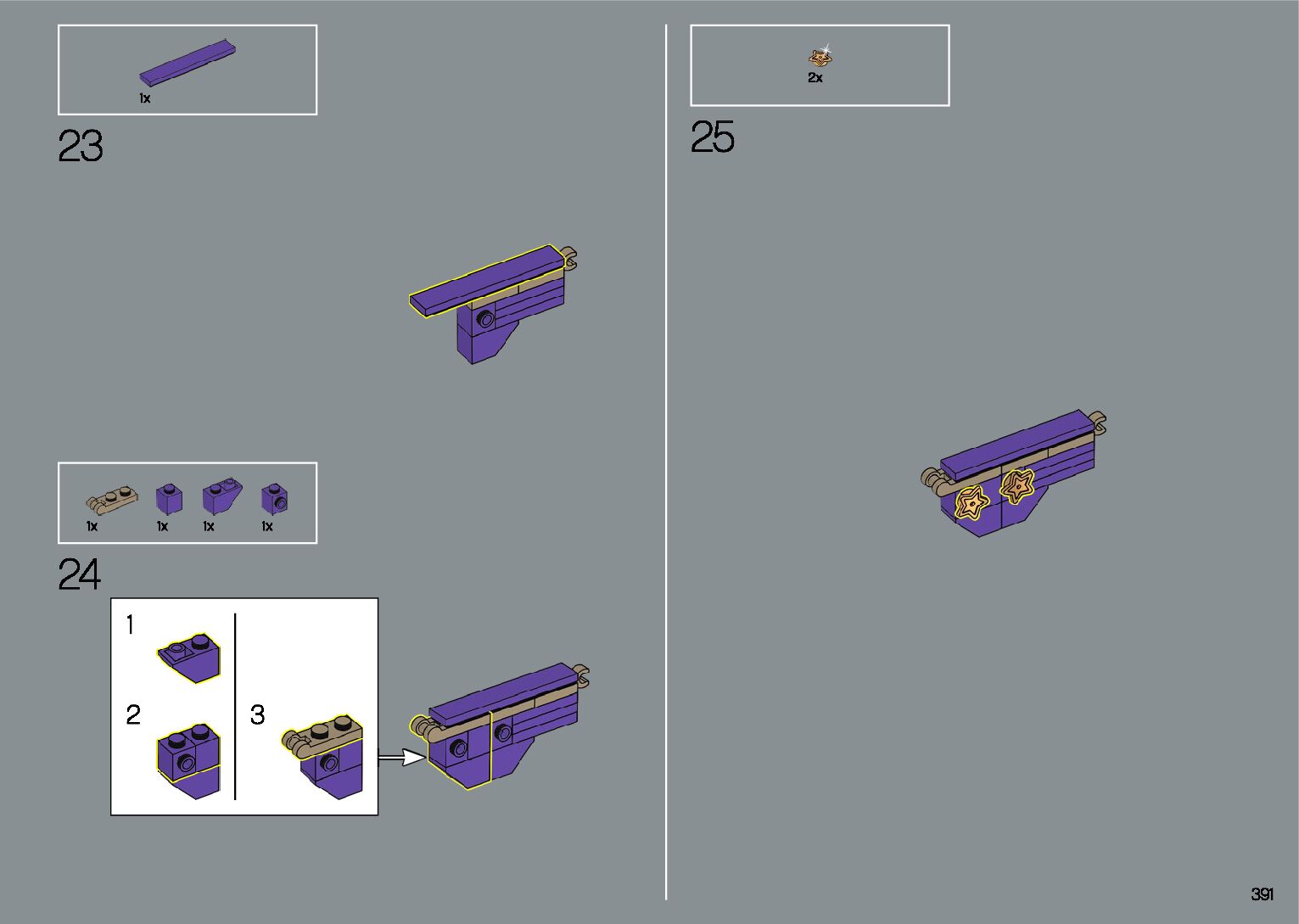 The assembly guide is prepared in a very understandable way for children and adult LEGO enthusiasts. A total of 412 picture galleries are shown, explaining the step-by-step construction stages for 1 different structures.