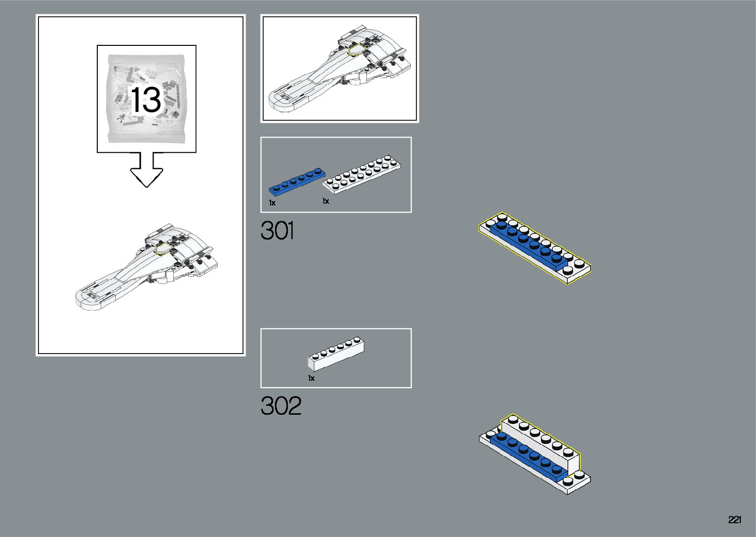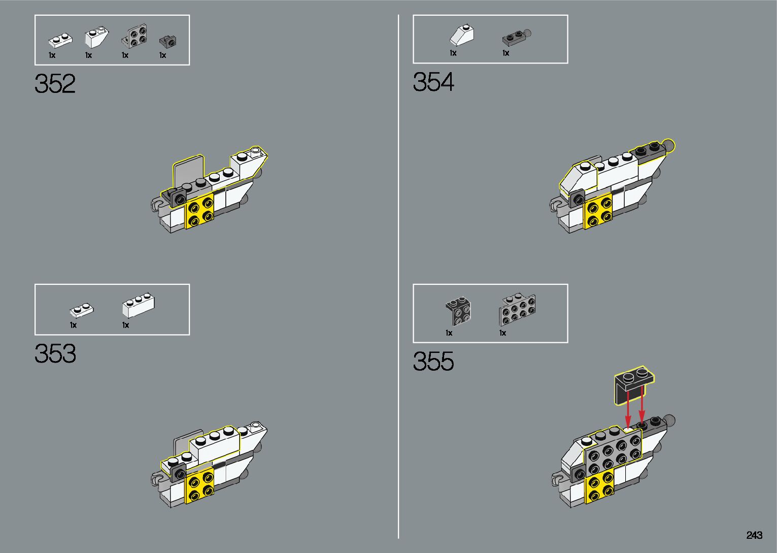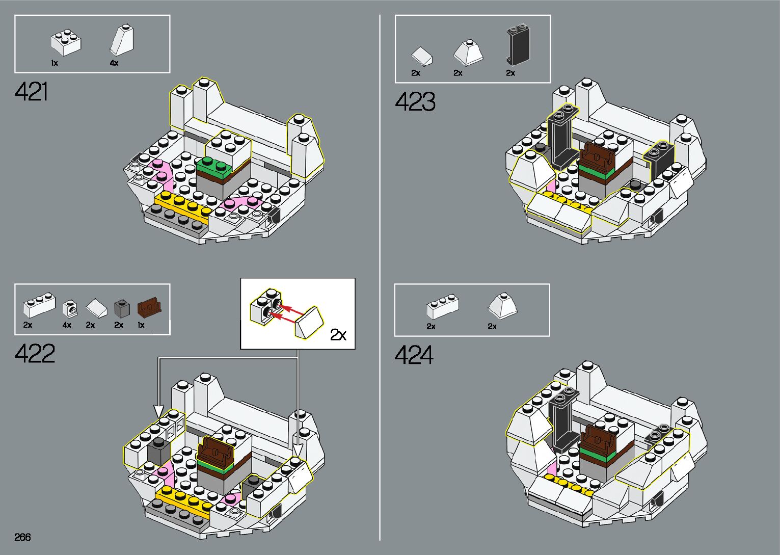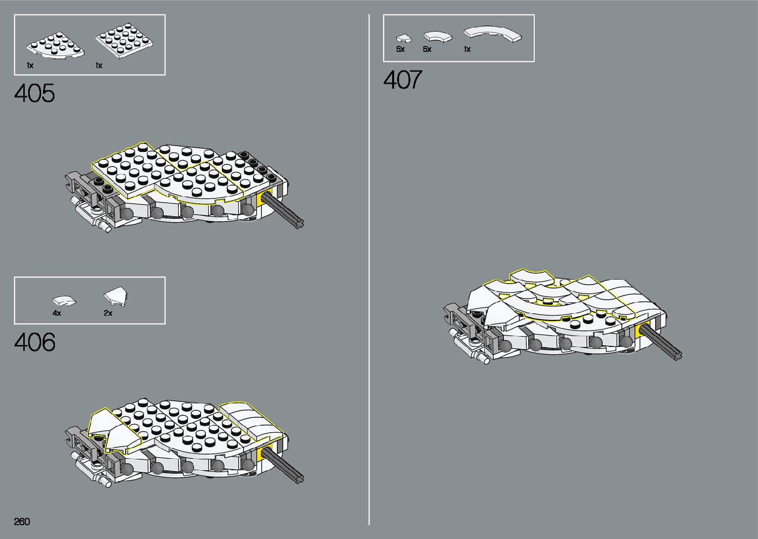 The assembly guide is prepared in a very understandable way for children and adult LEGO enthusiasts. A total of 412 picture galleries are shown, explaining the step-by-step construction stages for 1 different structures.