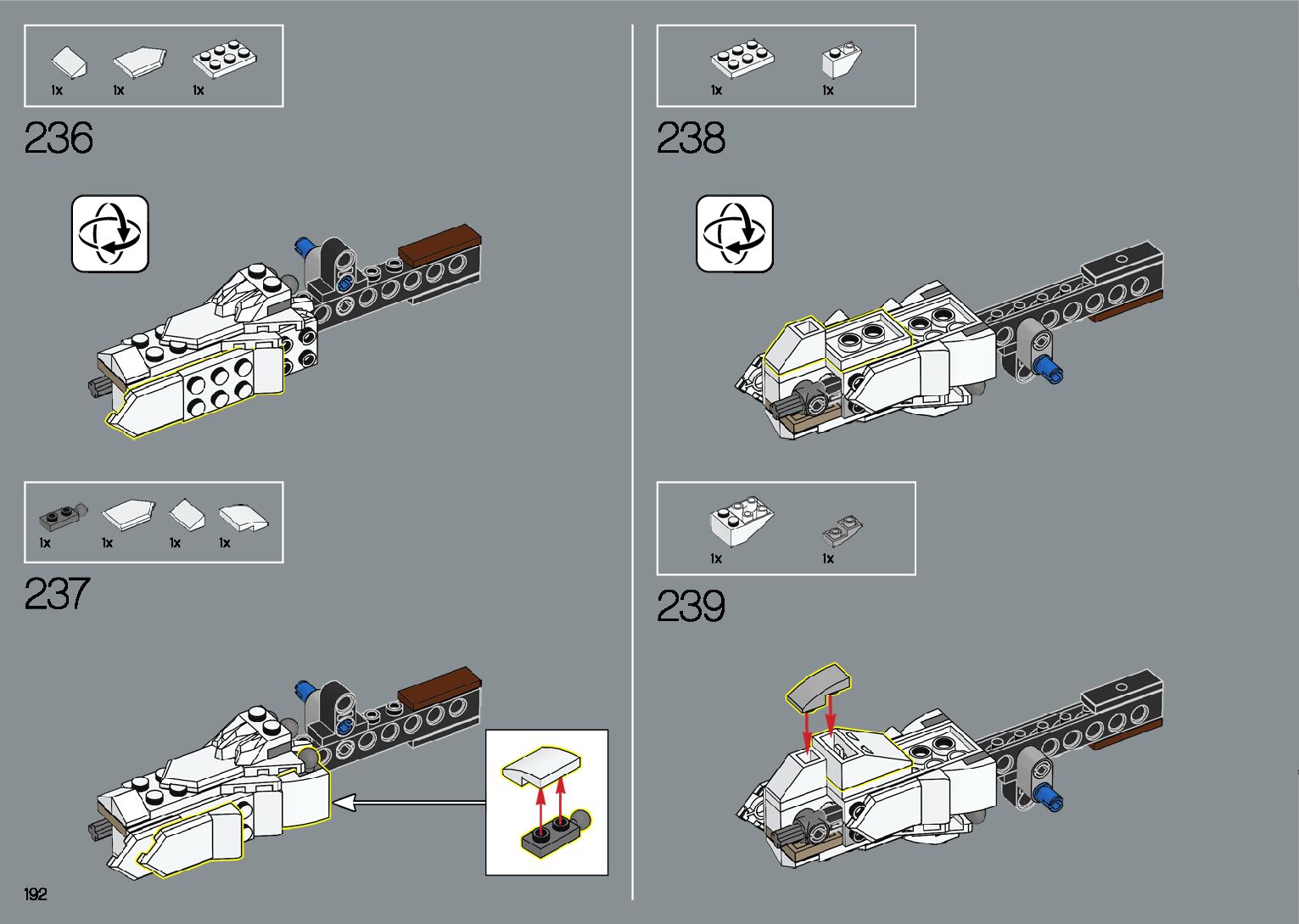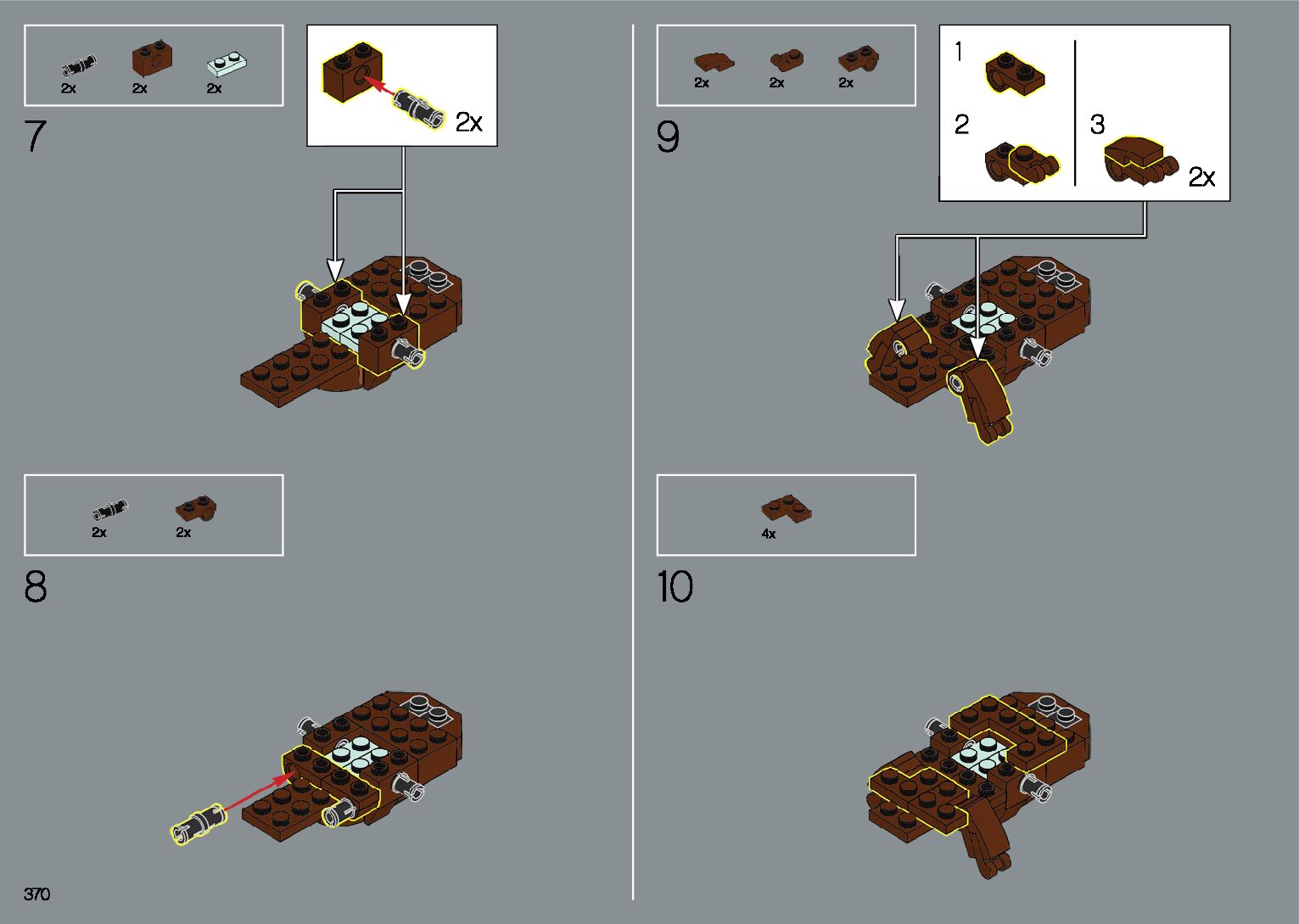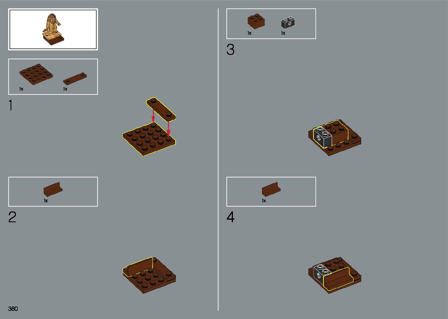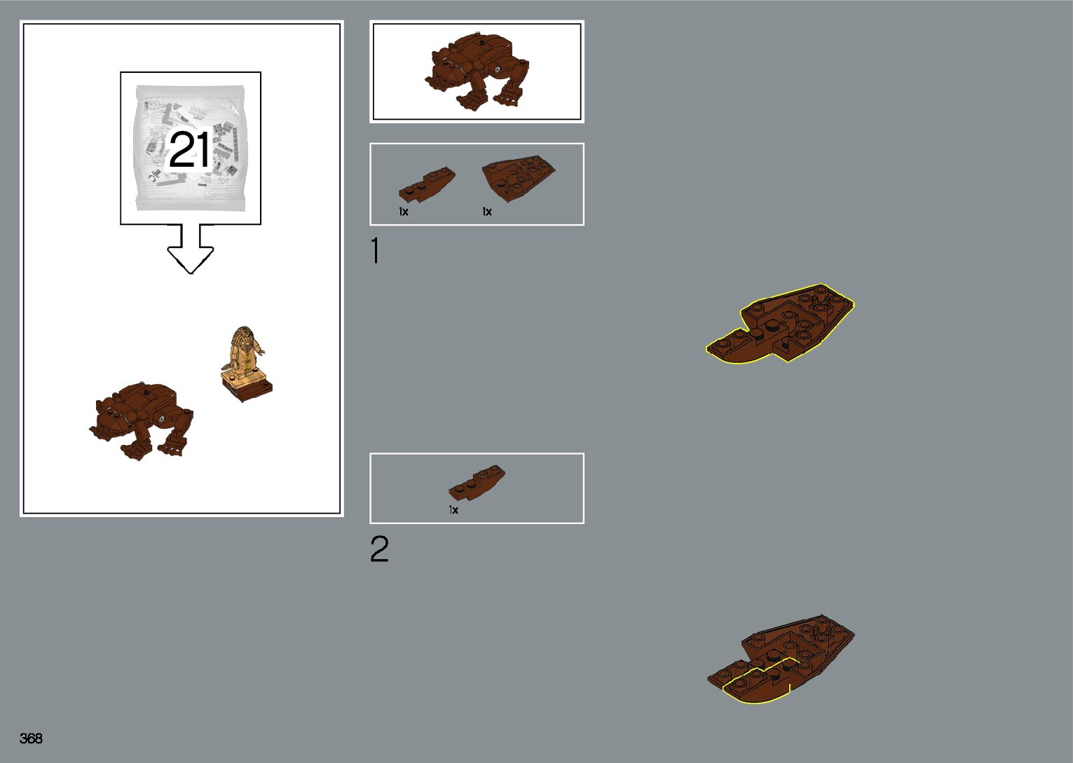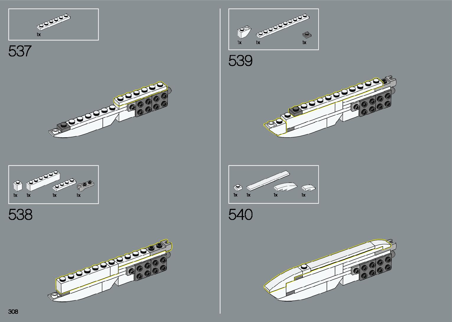 The assembly guide is prepared in a very understandable way for children and adult LEGO enthusiasts. A total of 412 picture galleries are shown, explaining the step-by-step construction stages for 1 different structures.