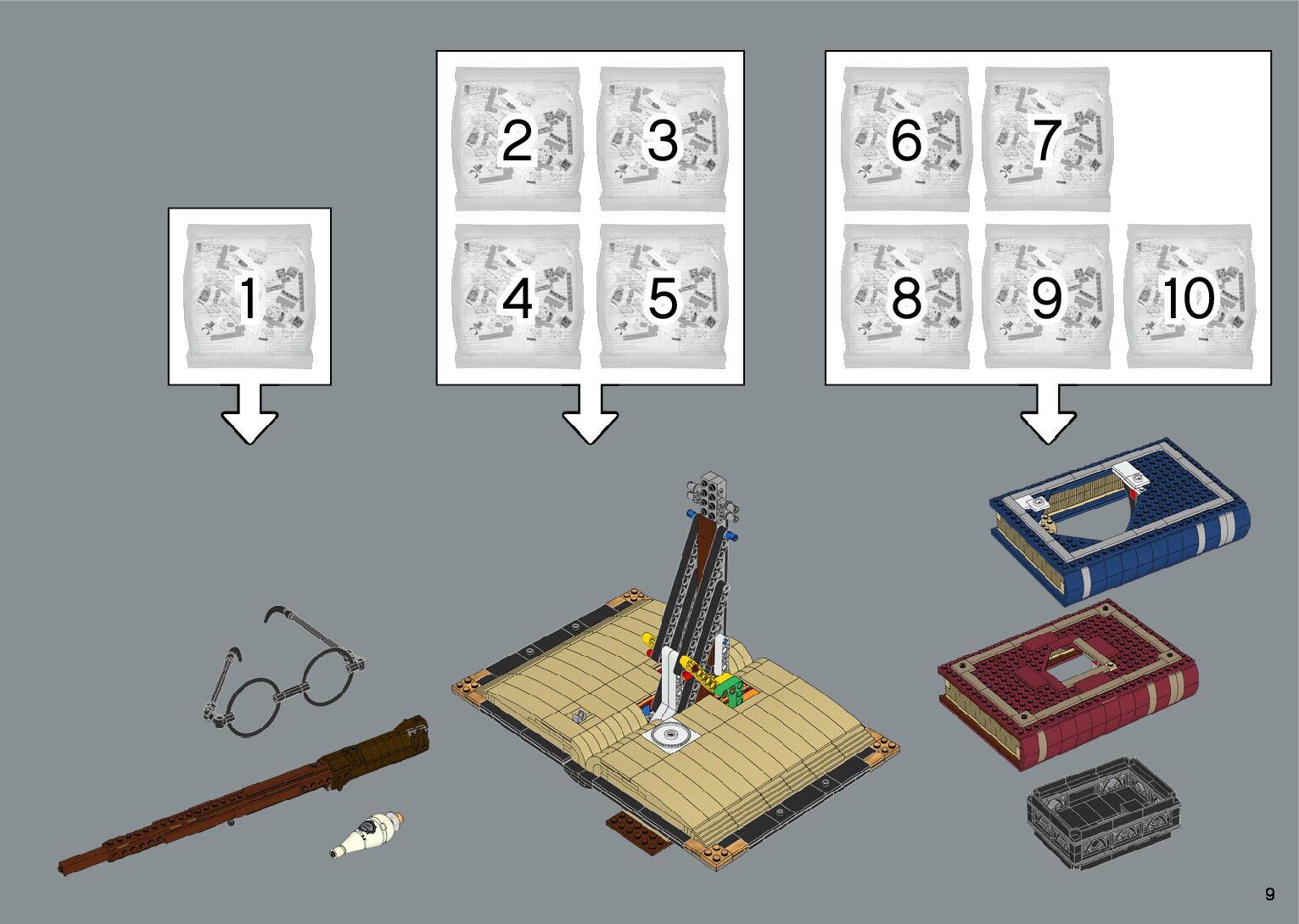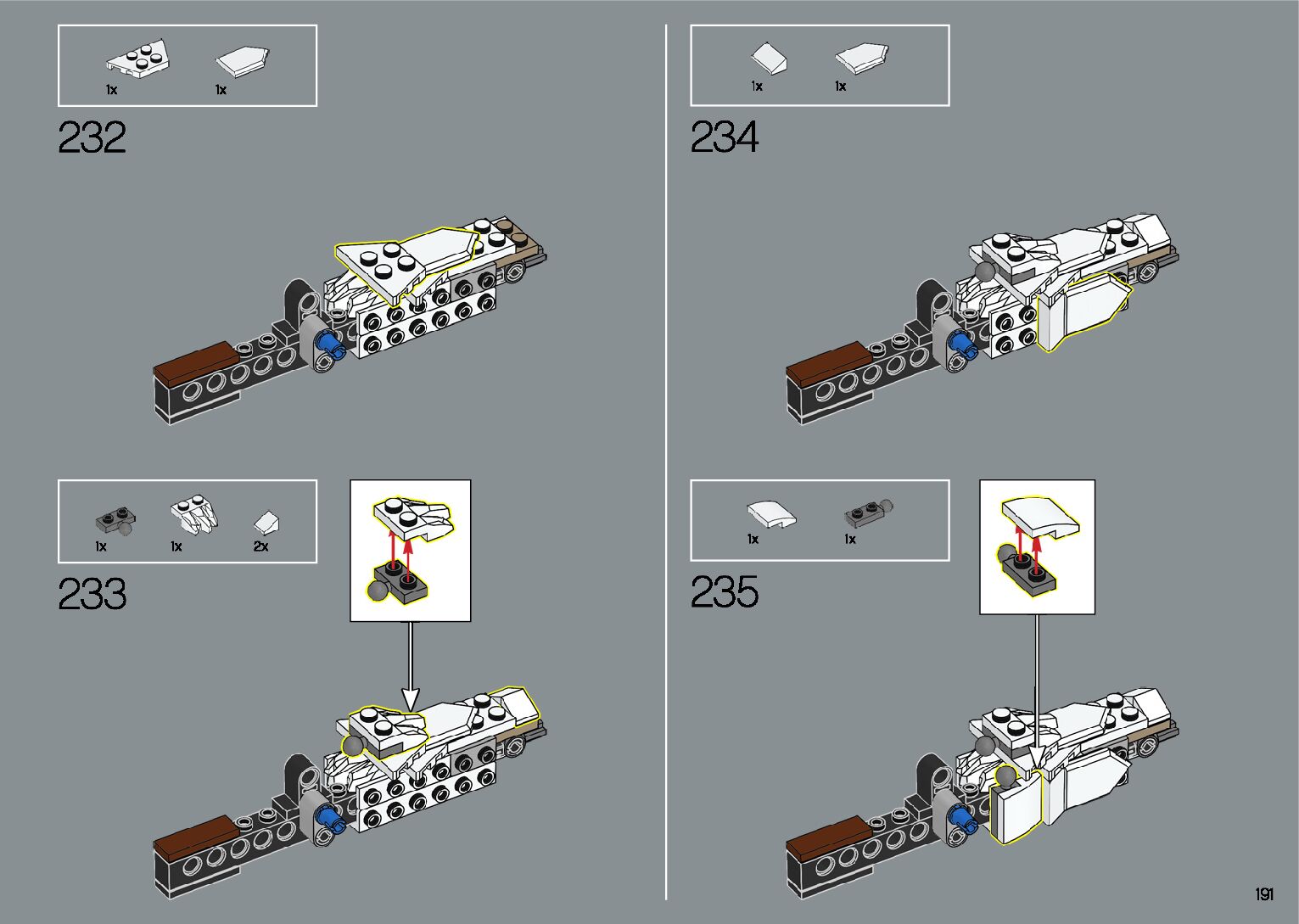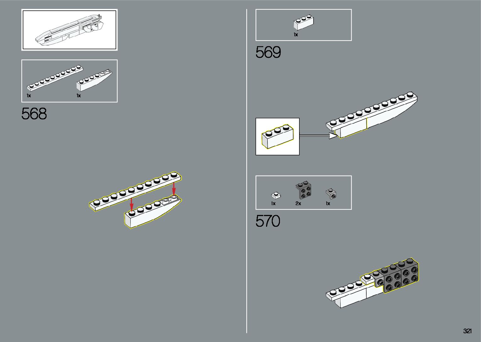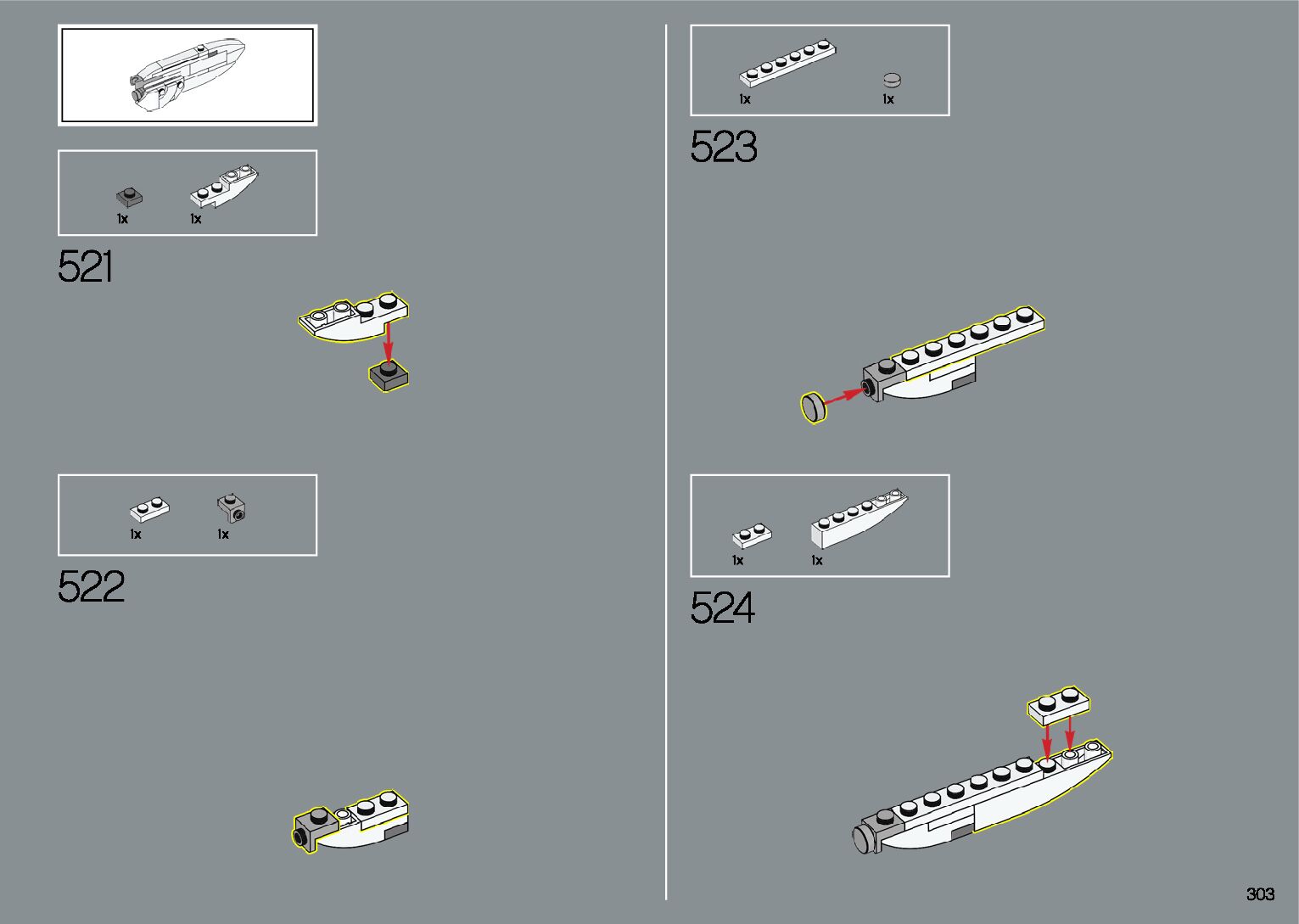 The assembly guide is prepared in a very understandable way for children and adult LEGO enthusiasts. A total of 412 picture galleries are shown, explaining the step-by-step construction stages for 1 different structures.