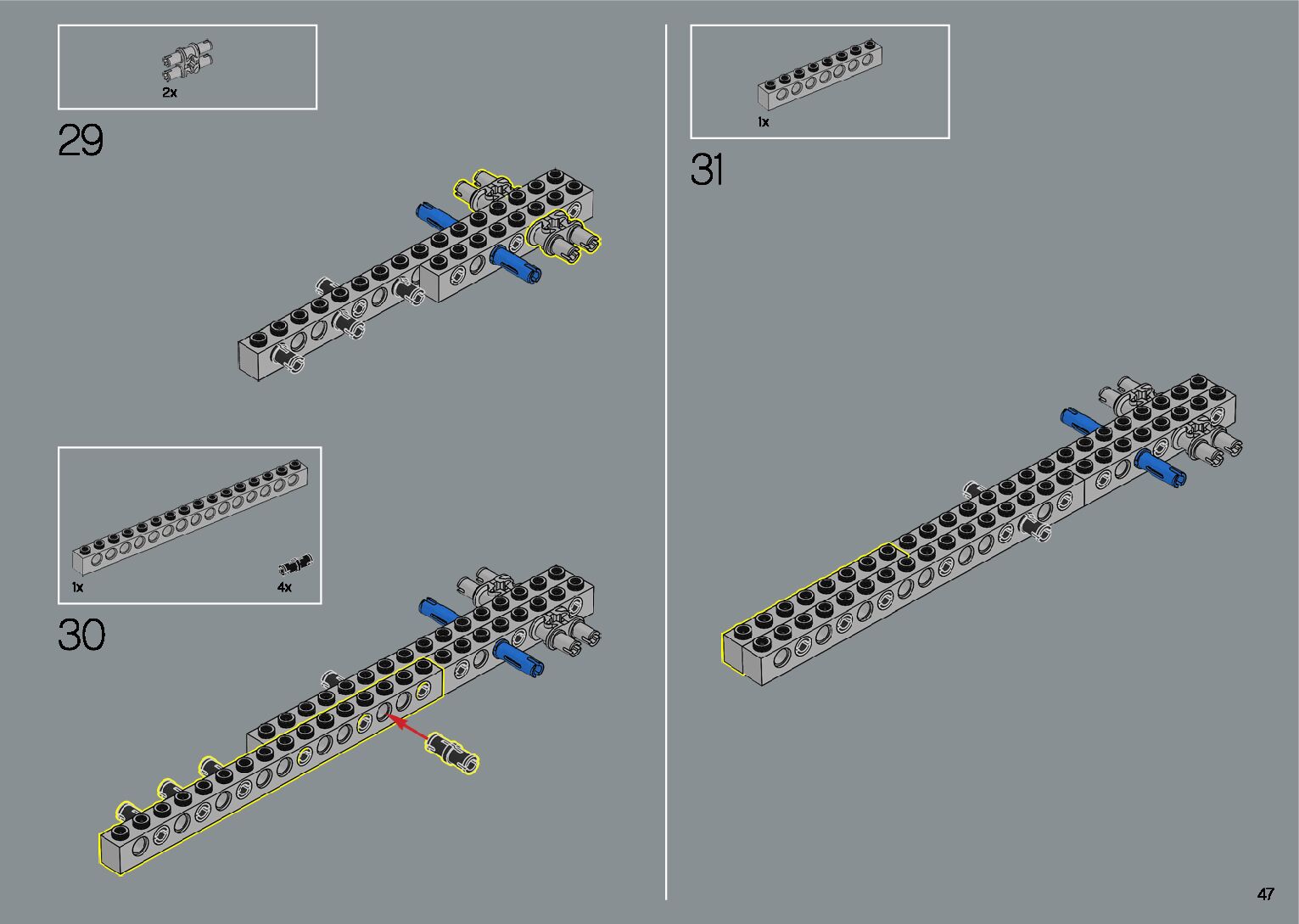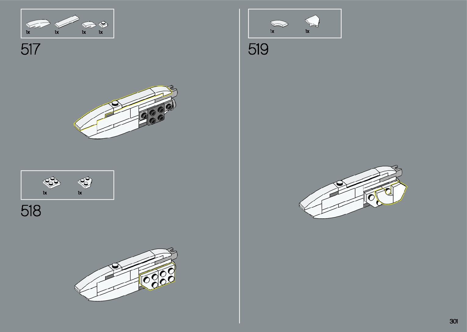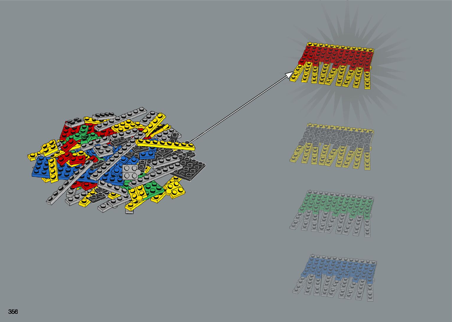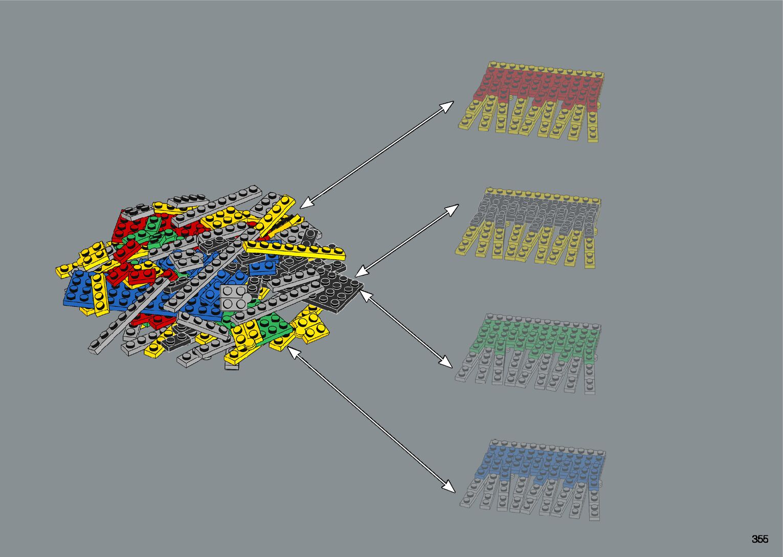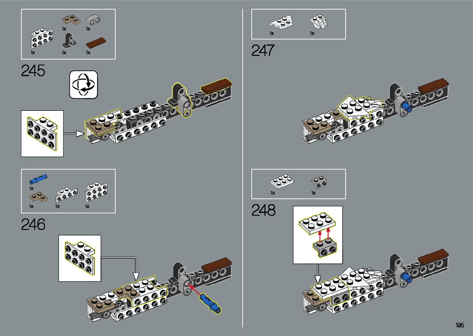 The assembly guide is prepared in a very understandable way for children and adult LEGO enthusiasts. A total of 412 picture galleries are shown, explaining the step-by-step construction stages for 1 different structures.
