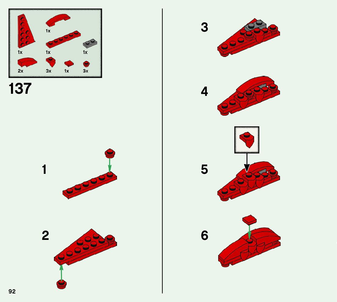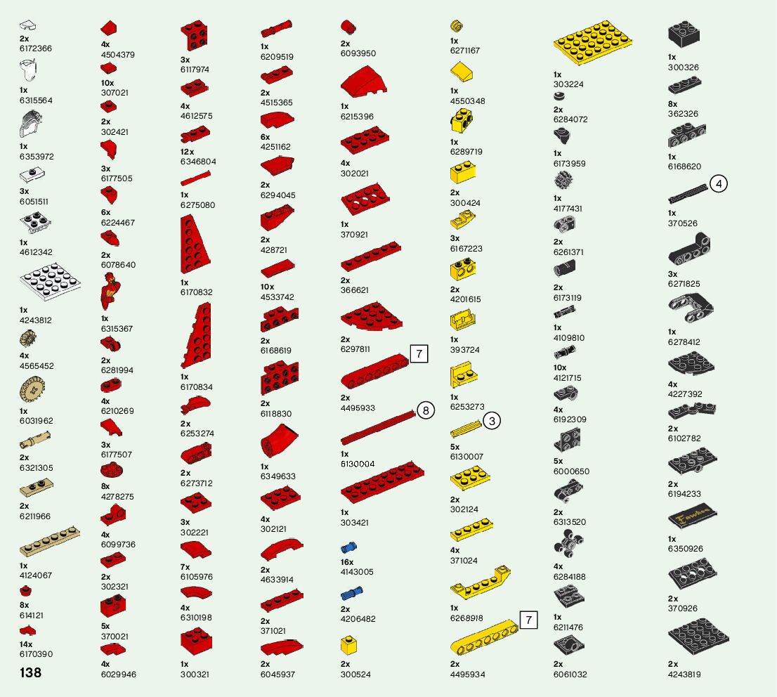 The assembly guide is prepared in a very understandable way for children and adult LEGO enthusiasts. A total of 140 picture galleries are shown, explaining the step-by-step construction stages for 1 different structures.