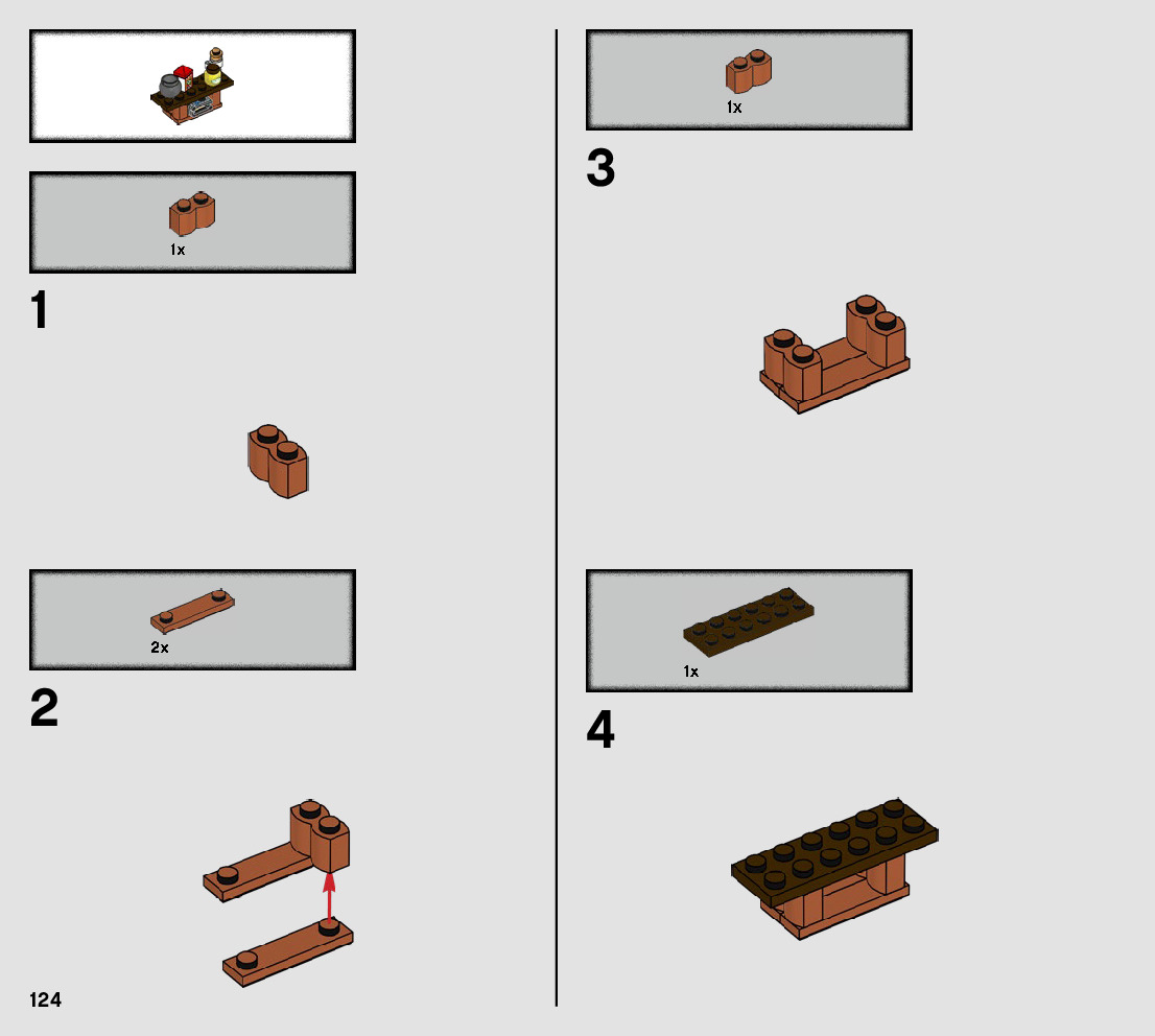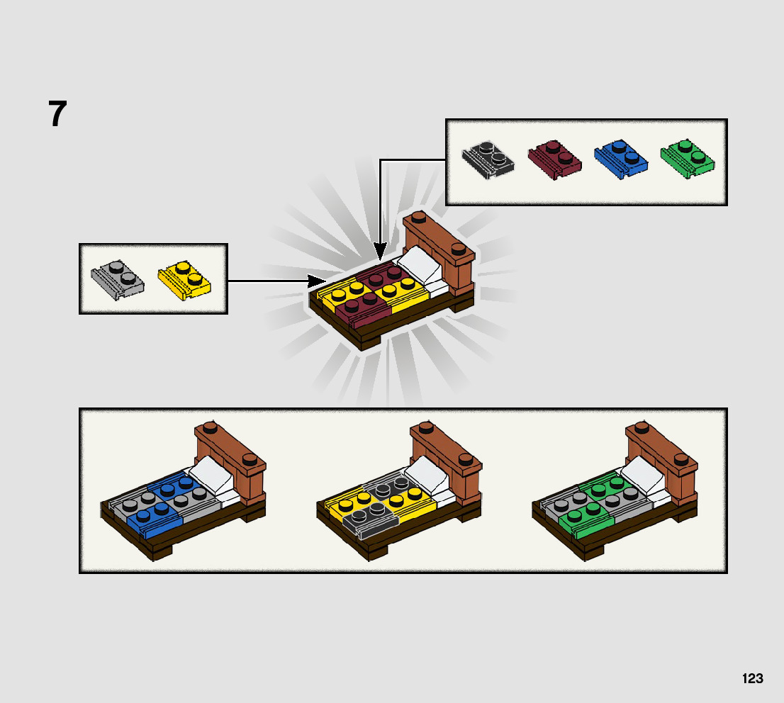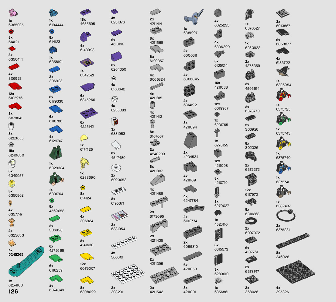 The assembly guide is prepared in a very understandable way for children and adult LEGO enthusiasts. A total of 128 picture galleries are shown, explaining the step-by-step construction stages for 1 different structures.