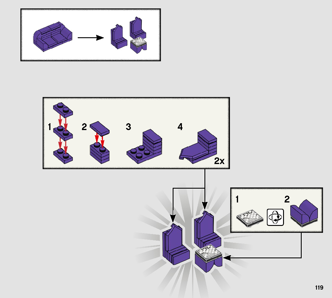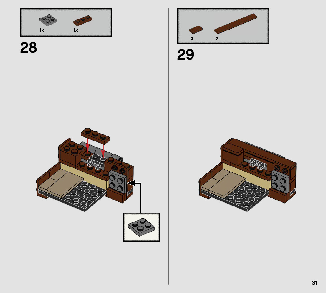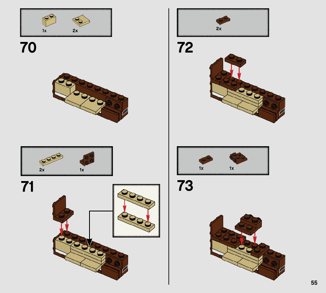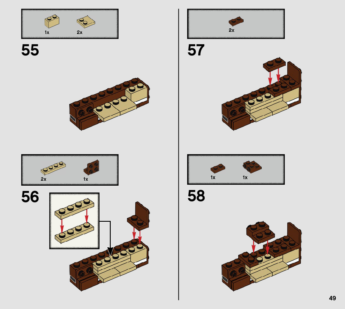 The assembly guide is prepared in a very understandable way for children and adult LEGO enthusiasts. A total of 128 picture galleries are shown, explaining the step-by-step construction stages for 1 different structures.