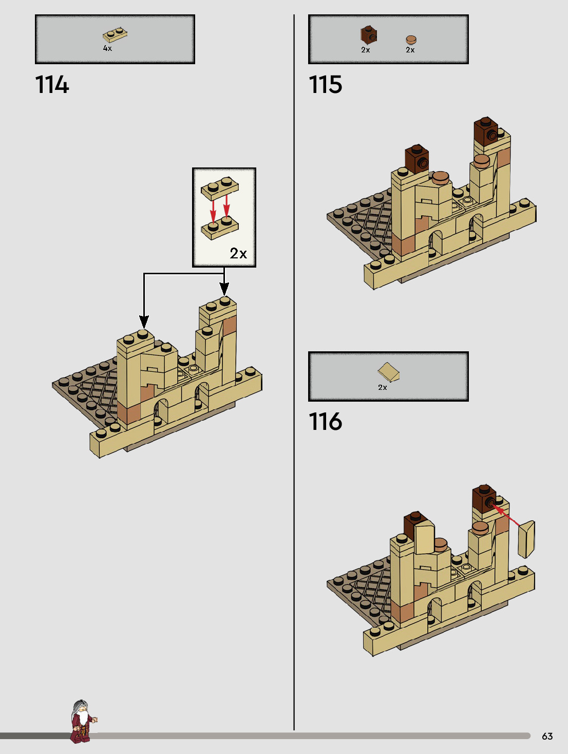 The assembly guide is prepared in a very understandable way for children and adult LEGO enthusiasts. A total of 116 picture galleries are shown, explaining the step-by-step construction stages for 1 different structures.