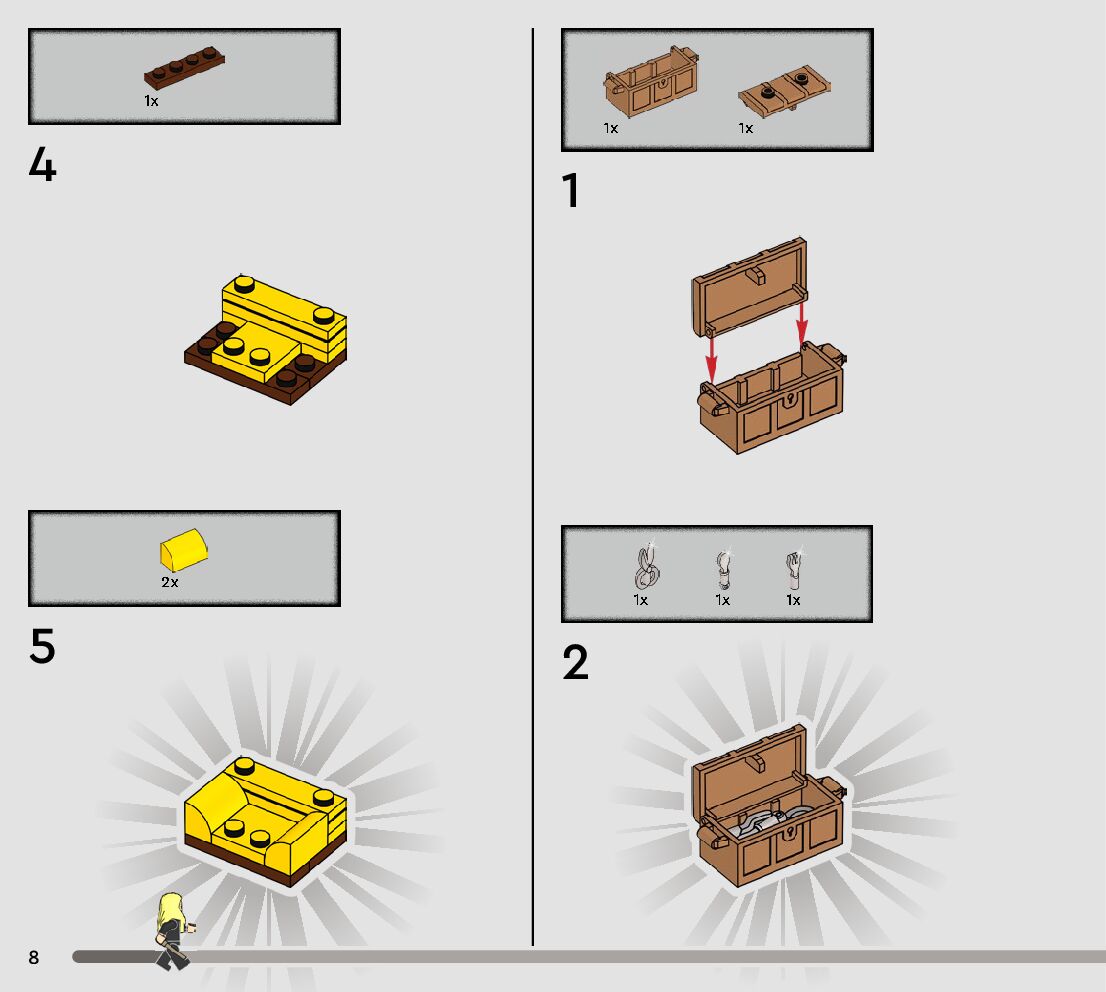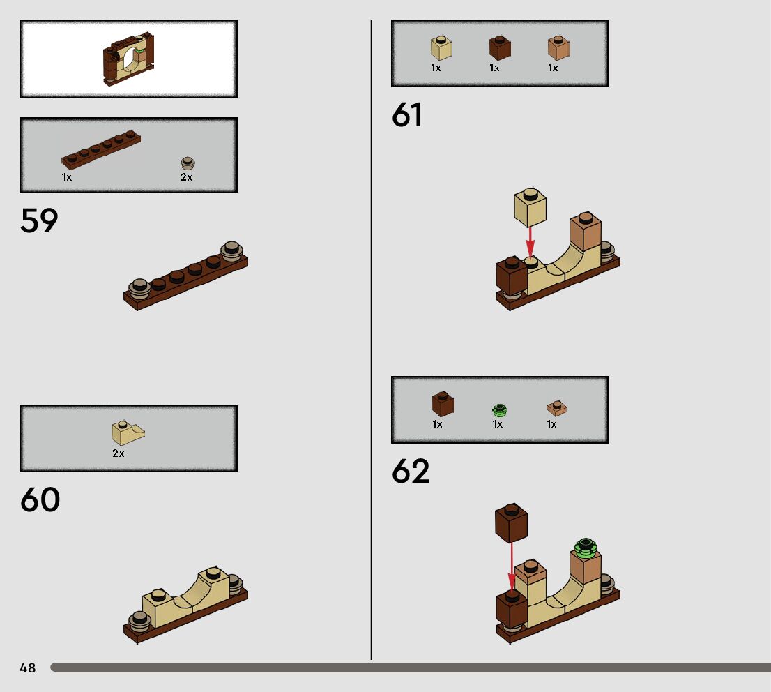 The assembly guide is prepared in a very understandable way for children and adult LEGO enthusiasts. A total of 88 picture galleries are shown, explaining the step-by-step construction stages for 1 different structures.